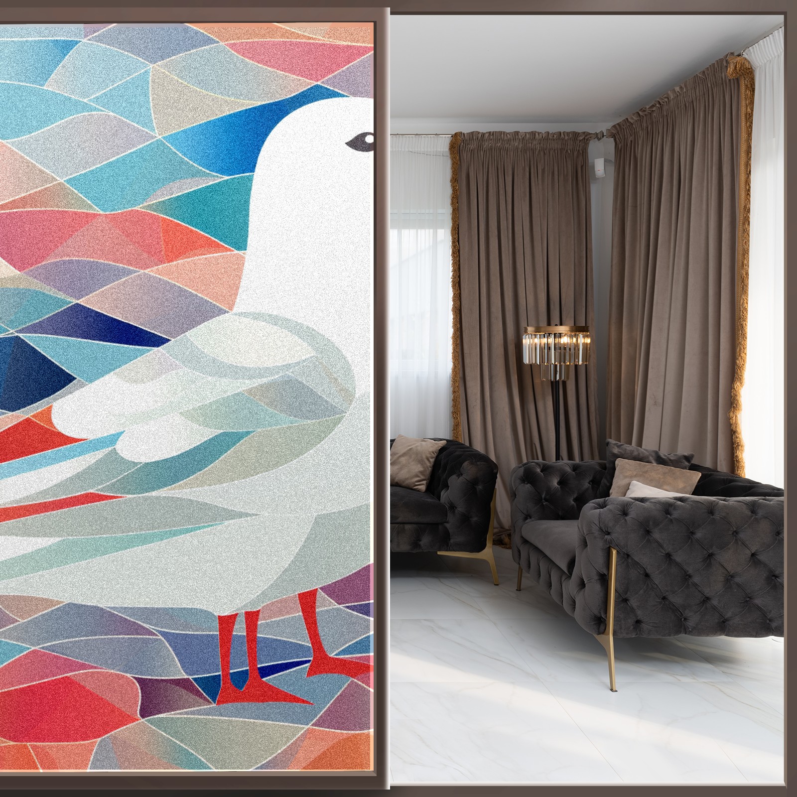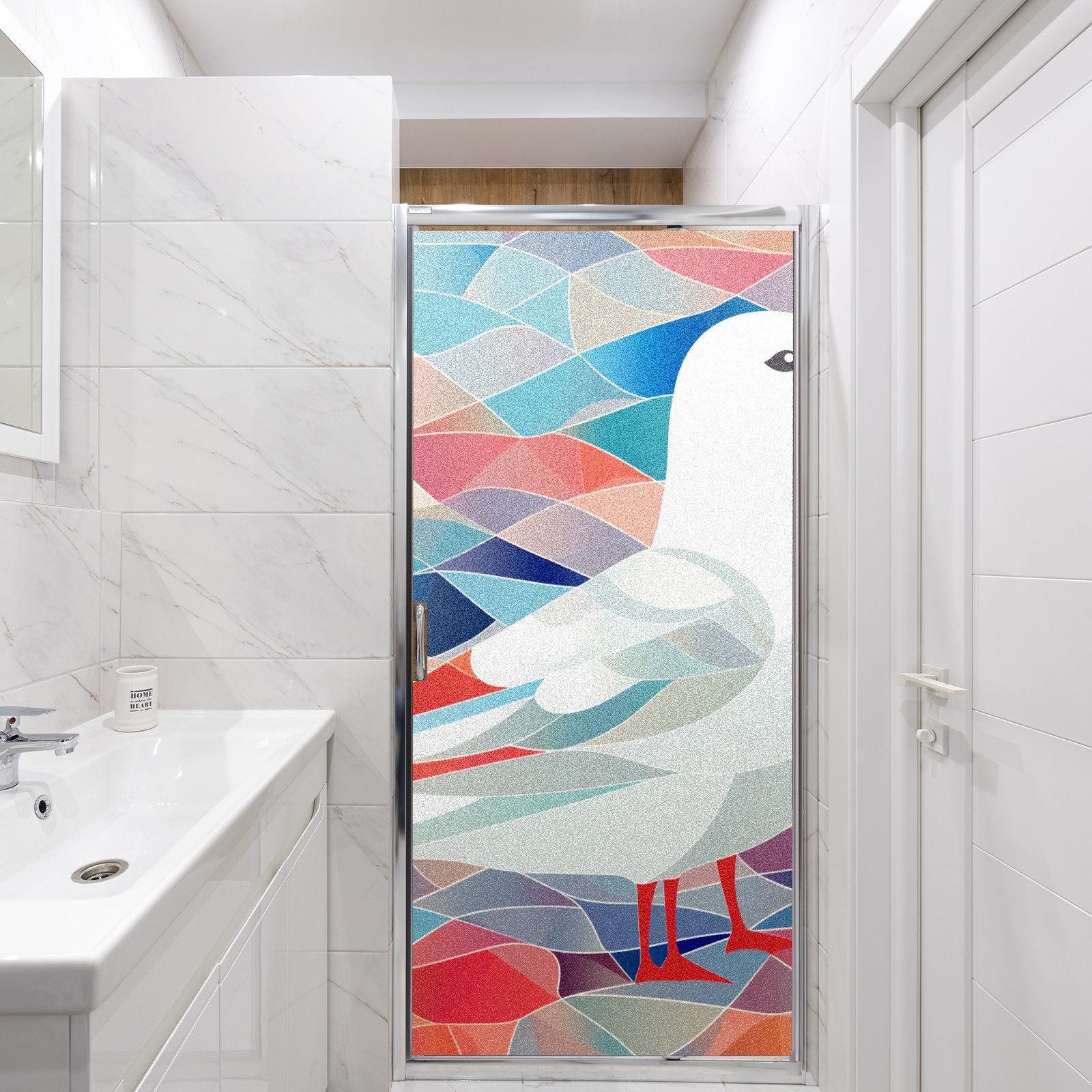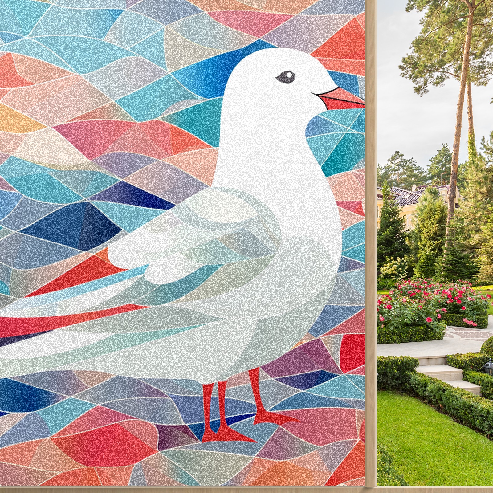 Static Cling Decorative Window Film Frosted Privacy Film Window Clings for Glass Windows No Glue Window Sticker for Bathroom Bedroom Office Stained Glass Seagull (2)