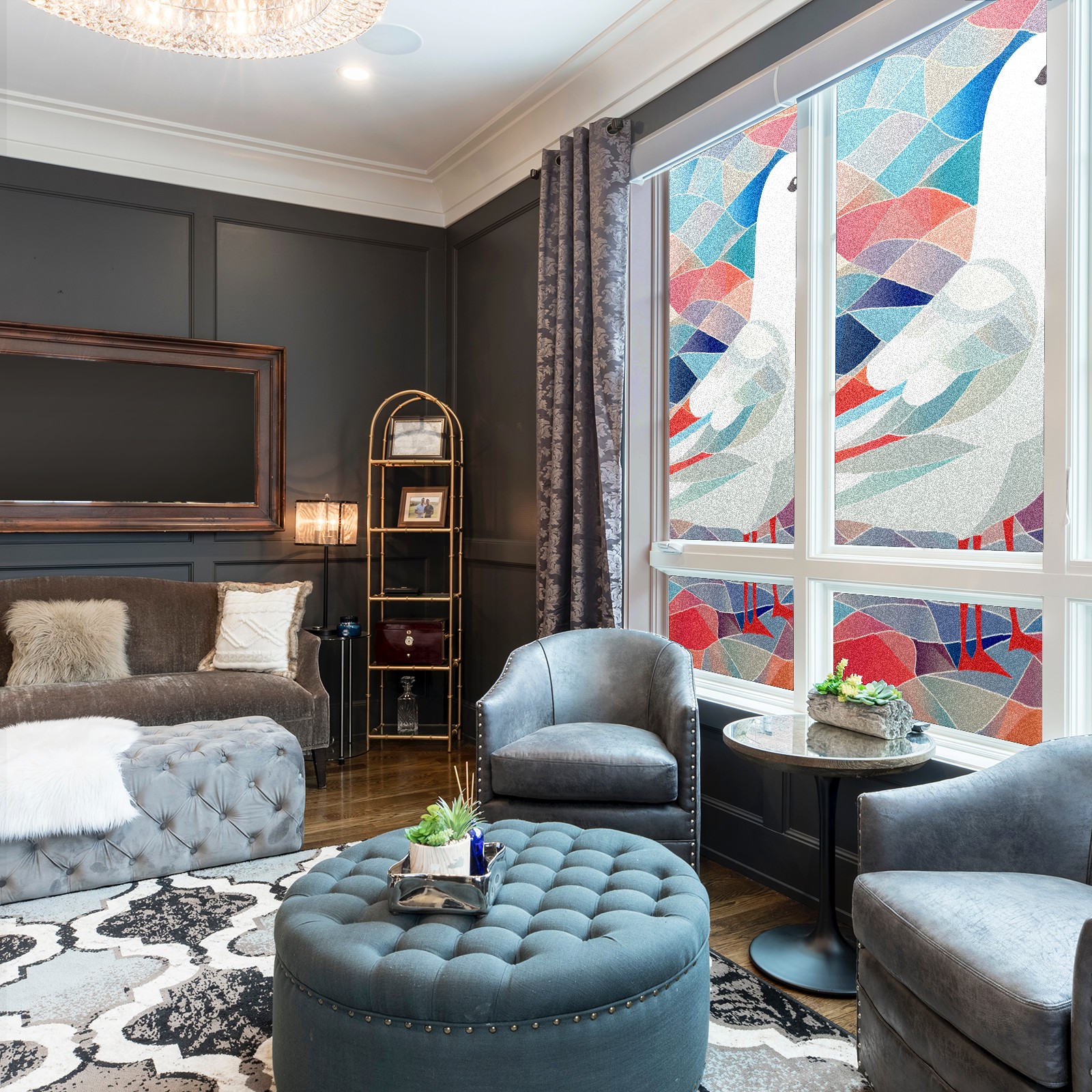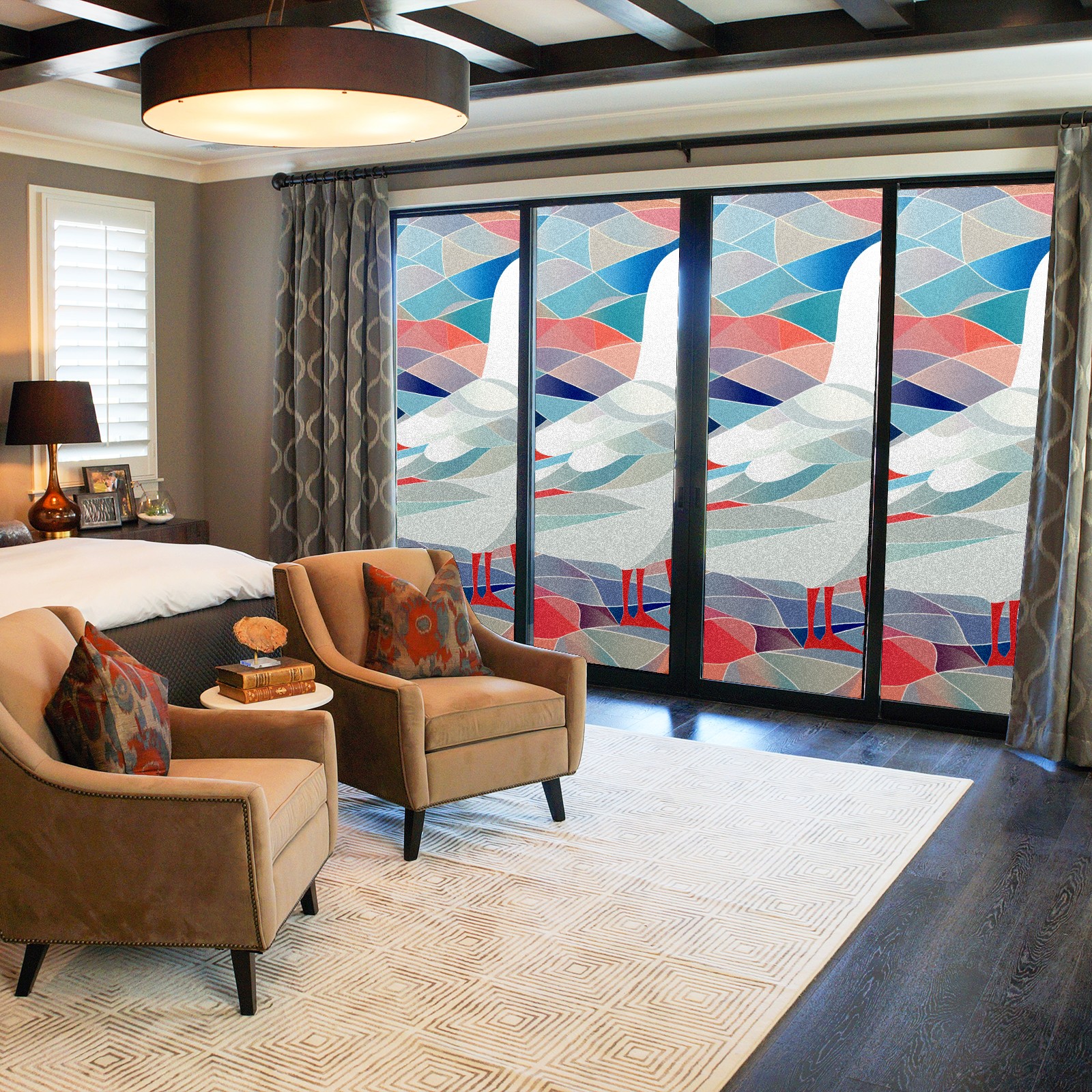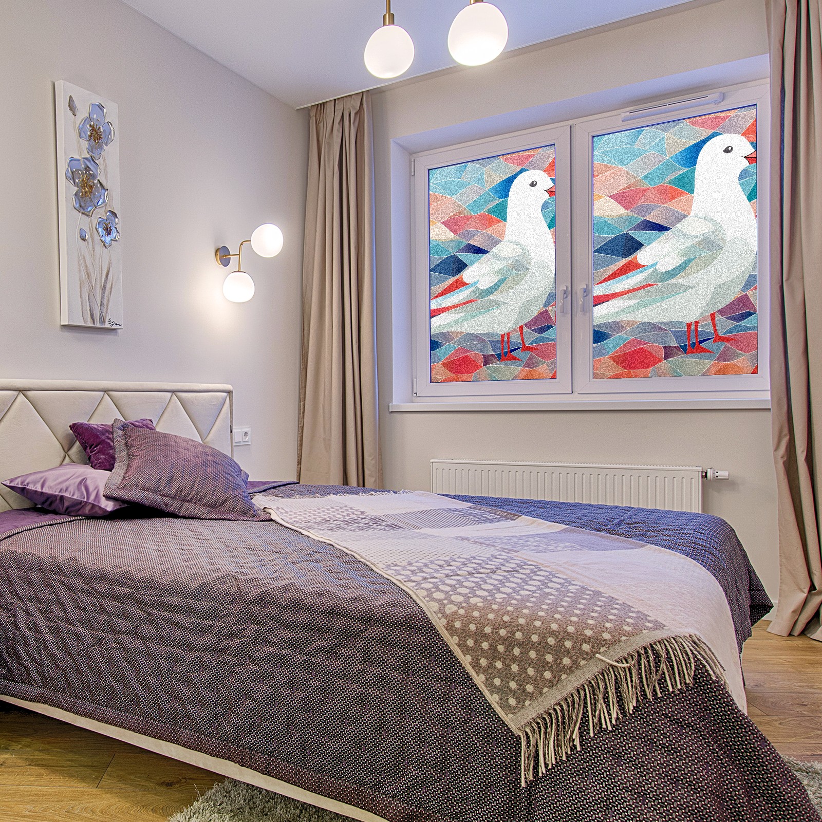 Static Cling Decorative Window Film Frosted Privacy Film Window Clings for Glass Windows No Glue Window Sticker for Bathroom Bedroom Office Stained Glass Seagull (2)