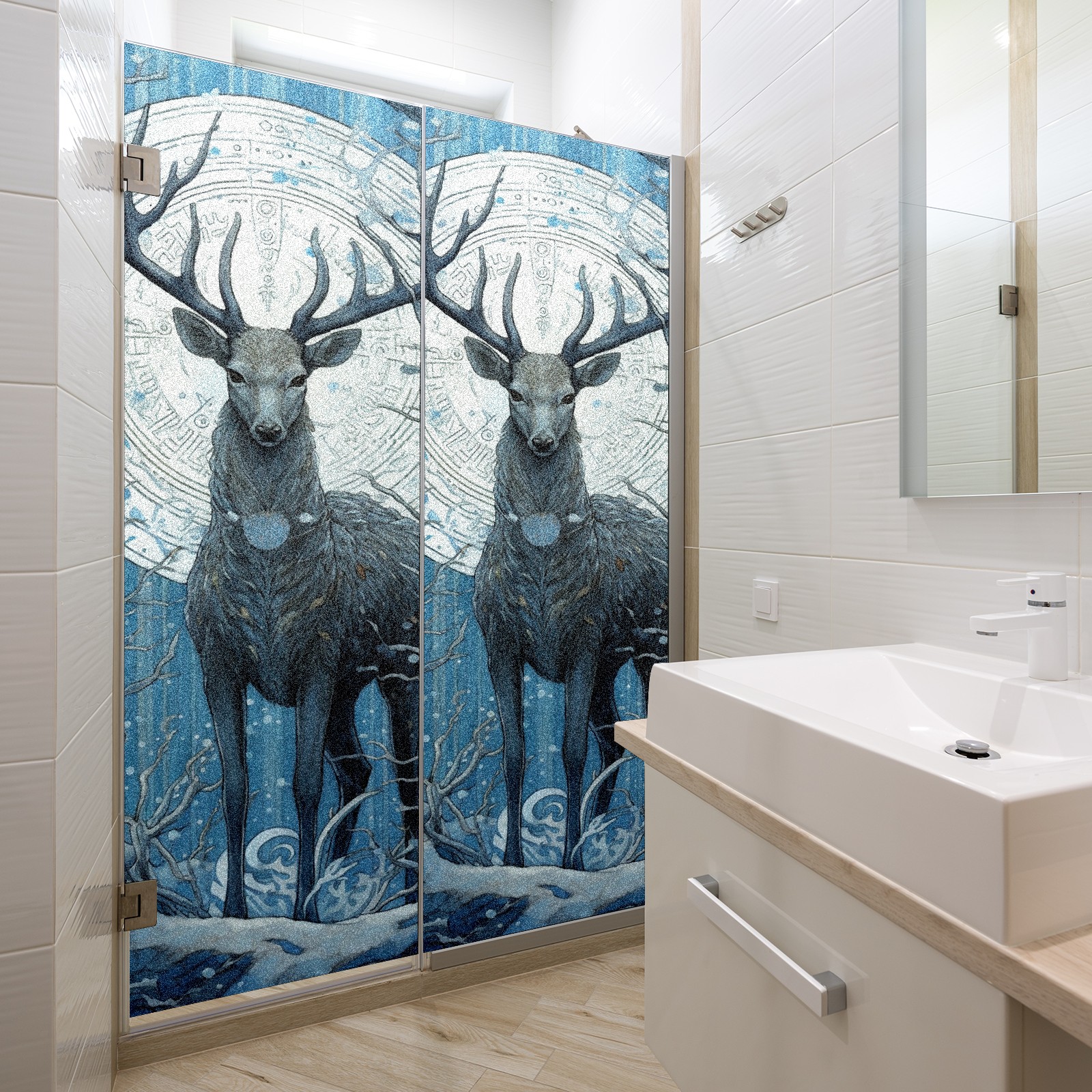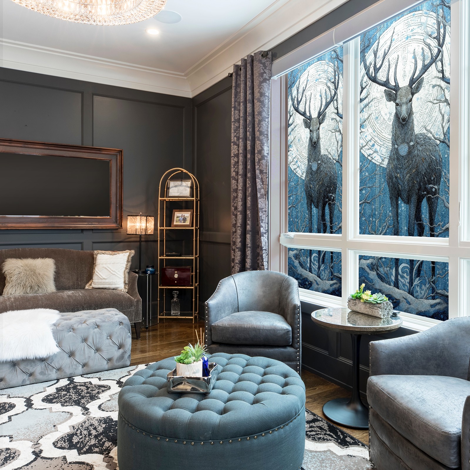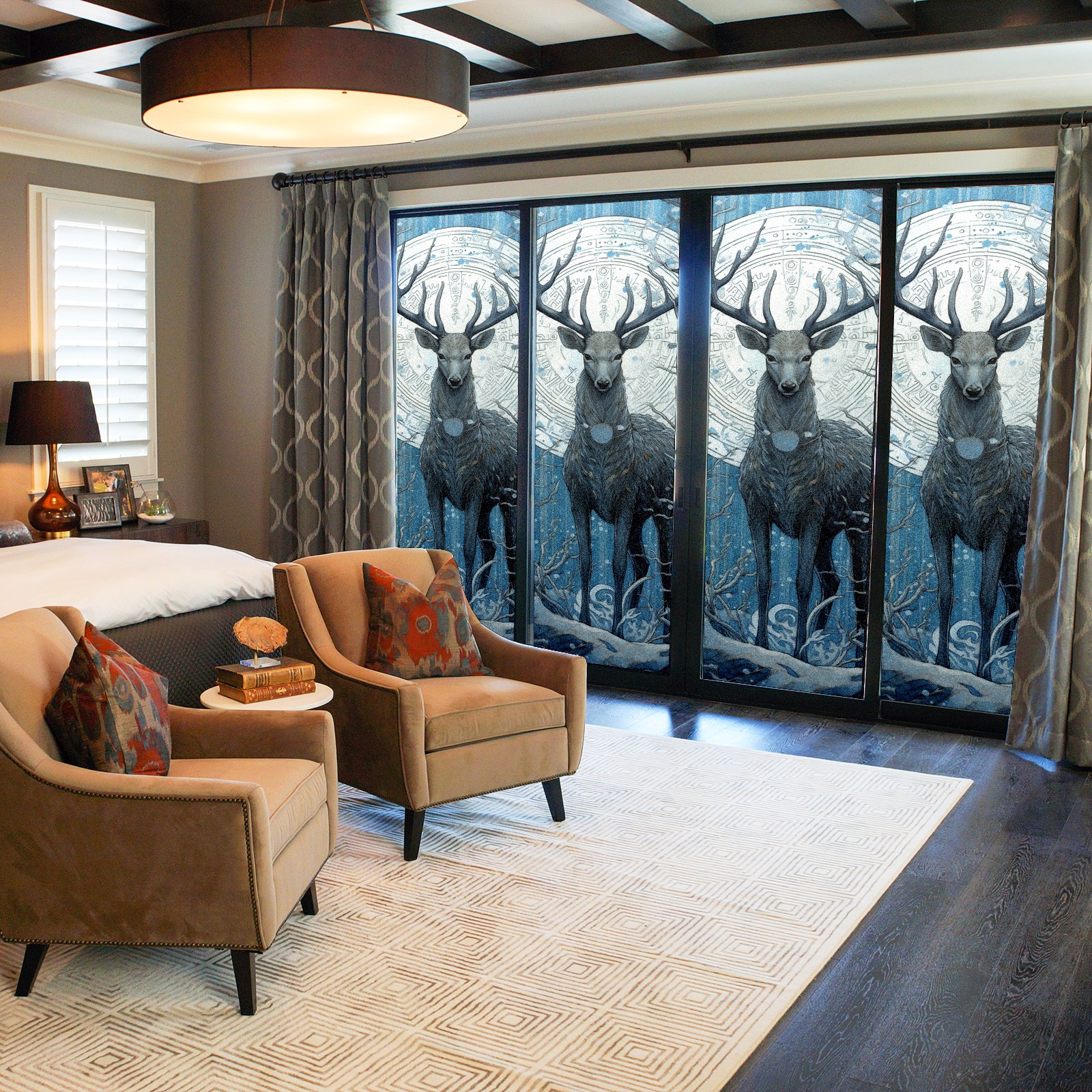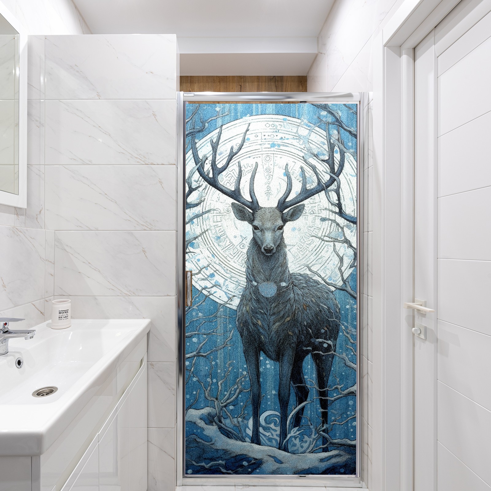Static Cling Decorative Window Film Frosted Privacy Film Window Clings for Glass Windows No Glue Window Sticker for Bathroom Bedroom Office Animal Moon Deer