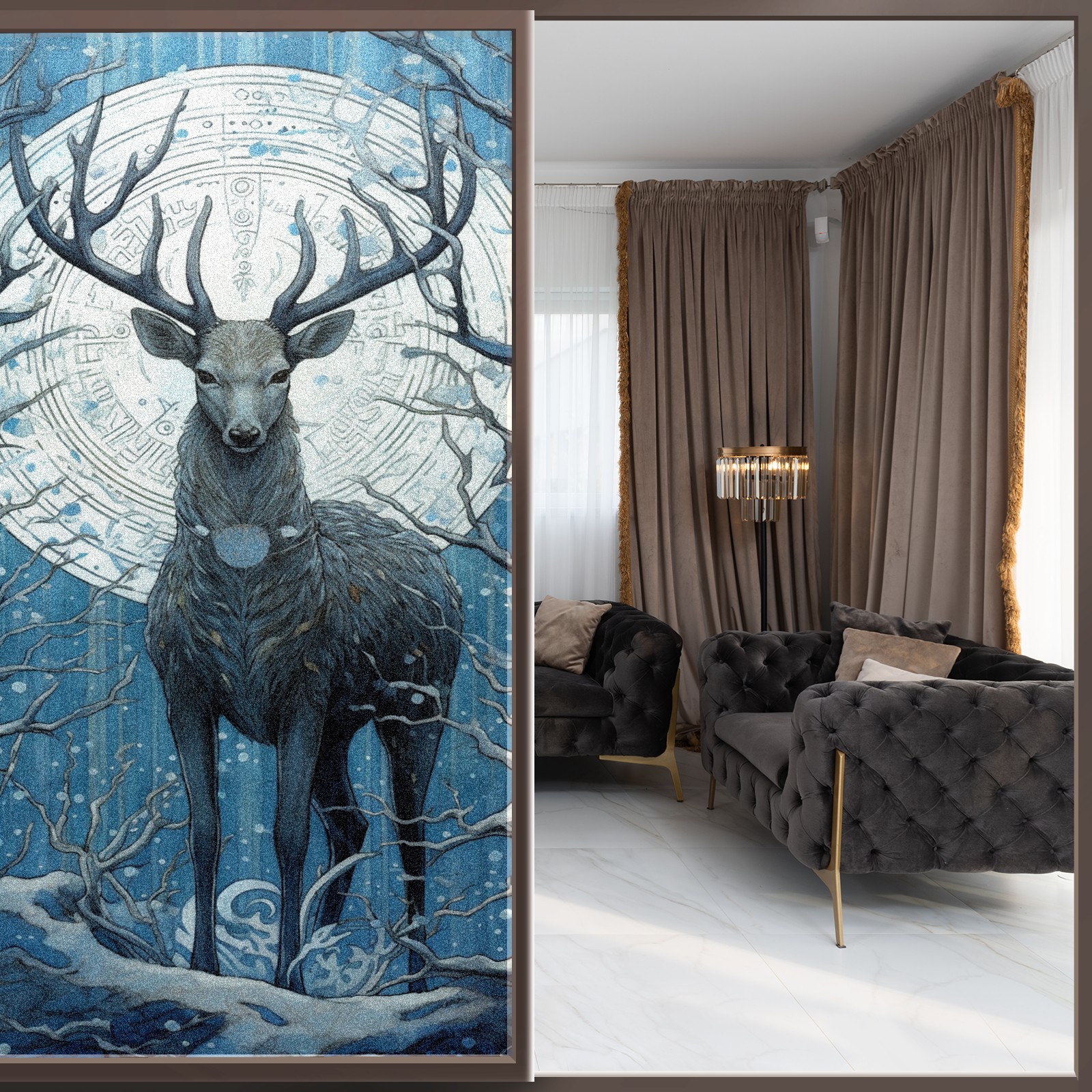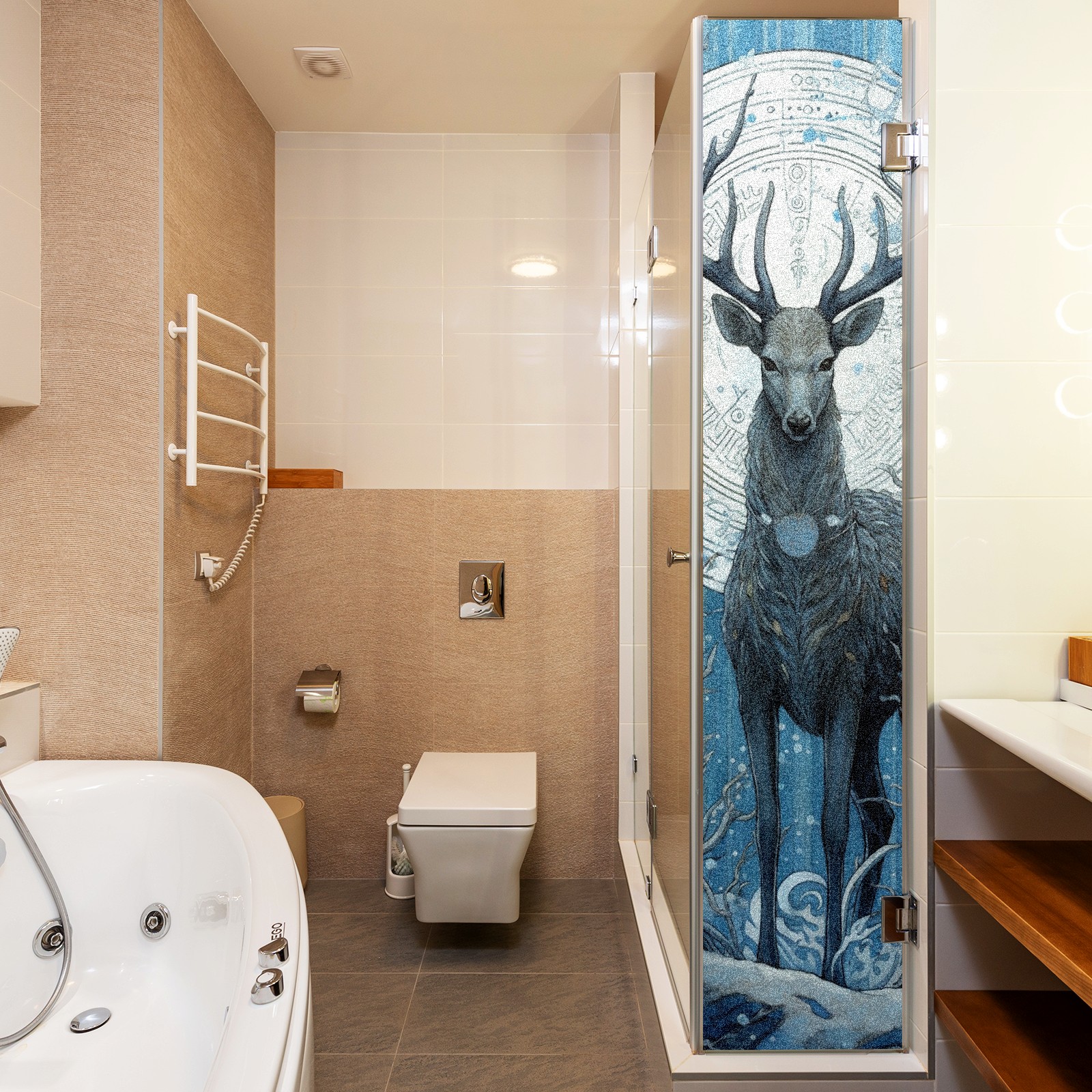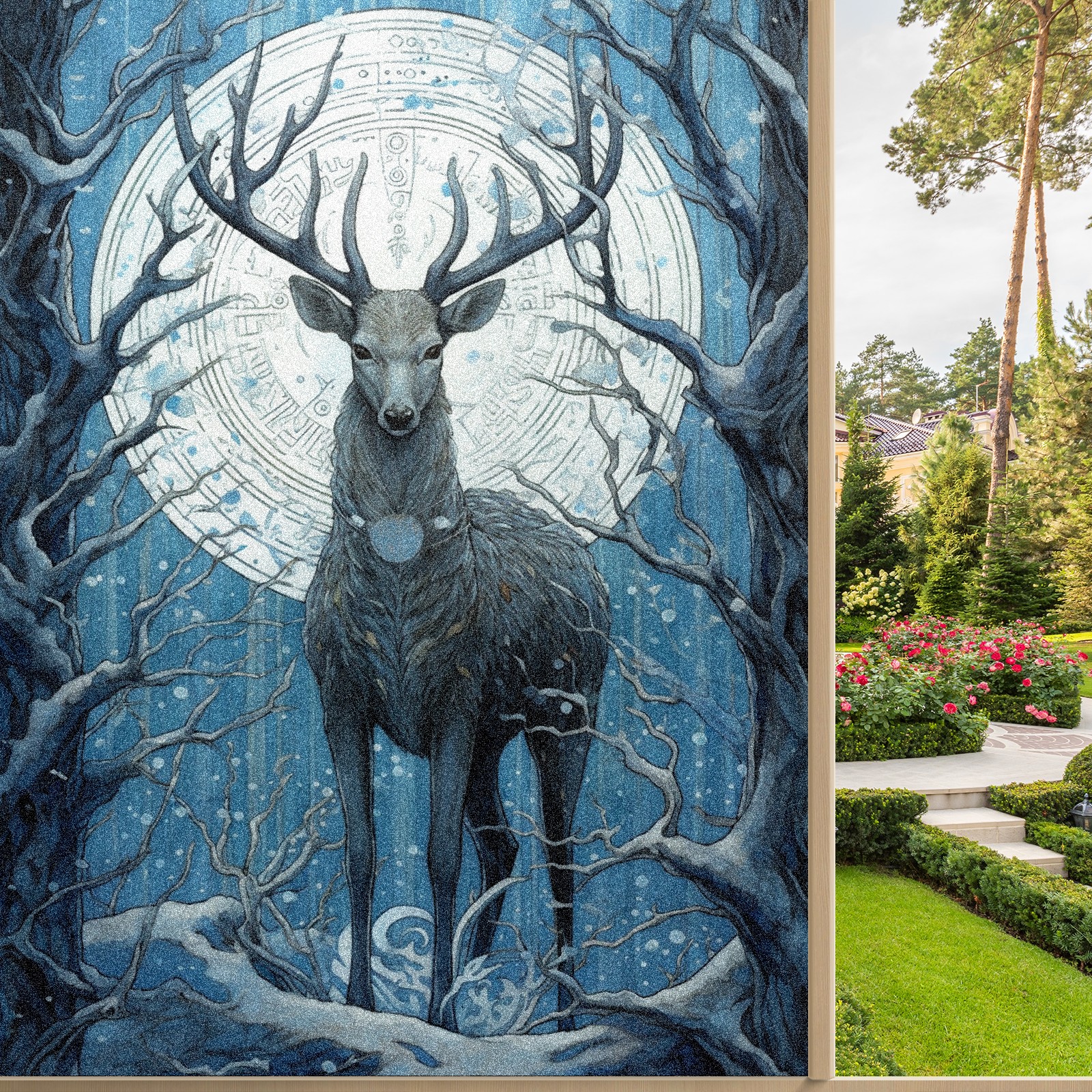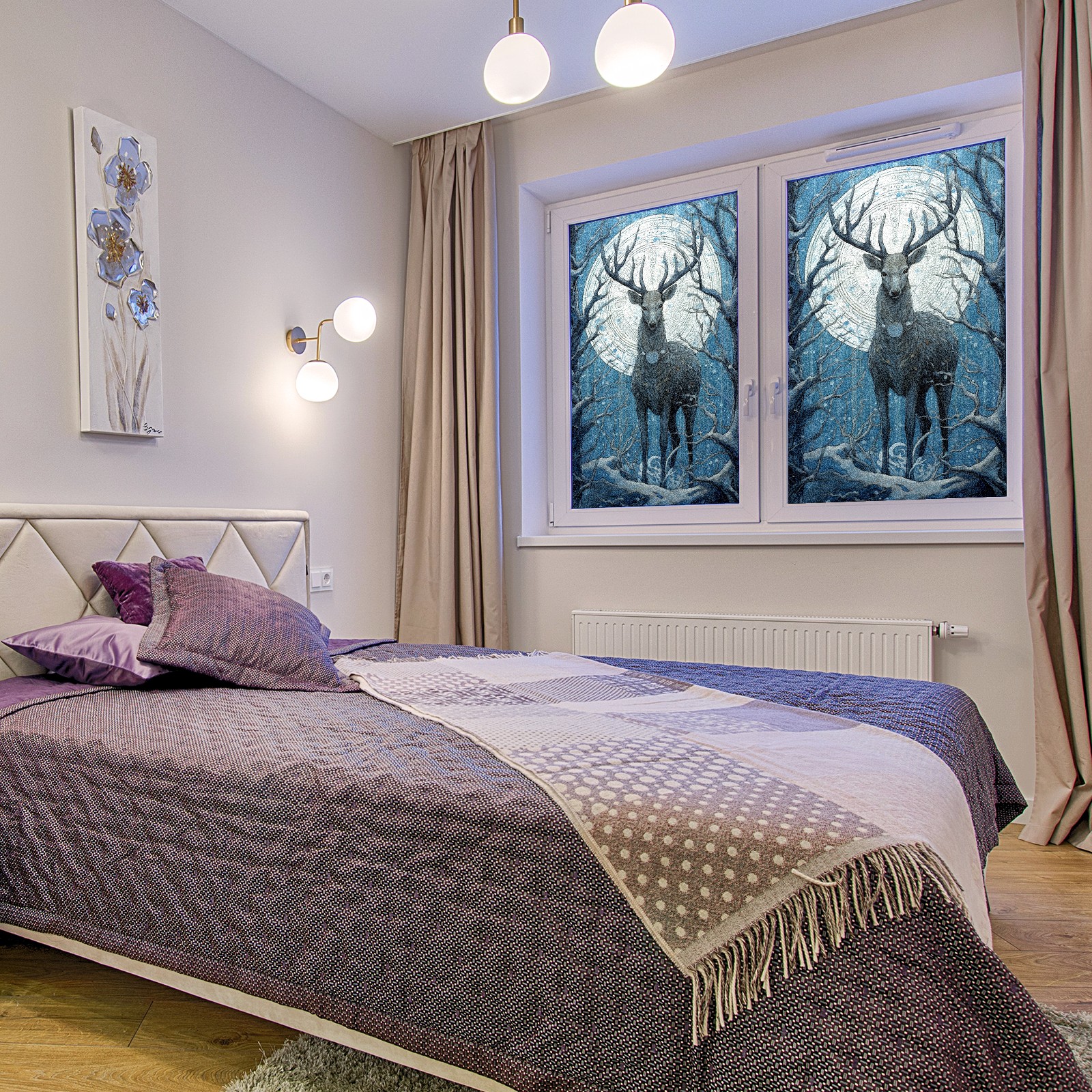 Static Cling Decorative Window Film Frosted Privacy Film Window Clings for Glass Windows No Glue Window Sticker for Bathroom Bedroom Office Animal Moon Deer