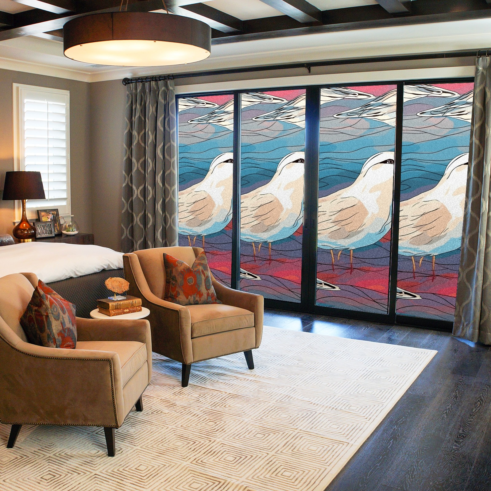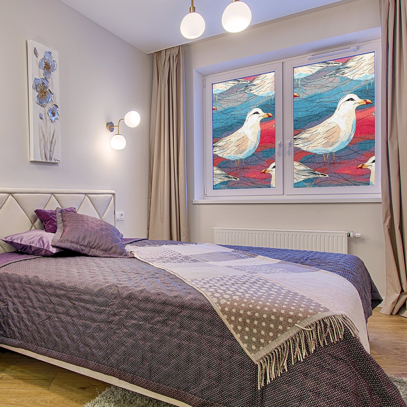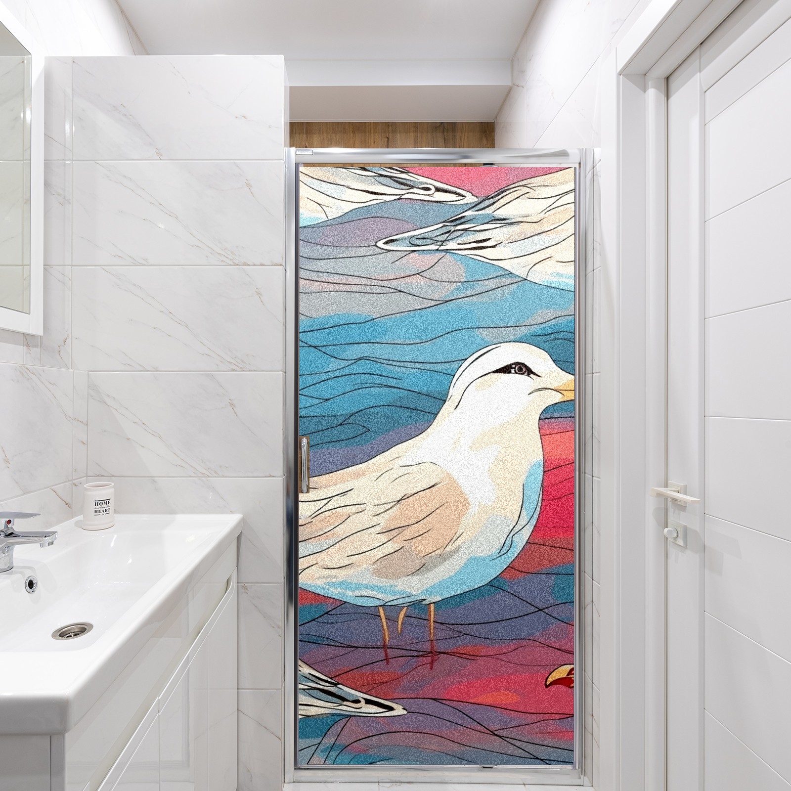 Static Cling Decorative Window Film Frosted Privacy Film Window Clings for Glass Windows No Glue Window Sticker for Bathroom Bedroom Office Stained Glass Seagull (1)