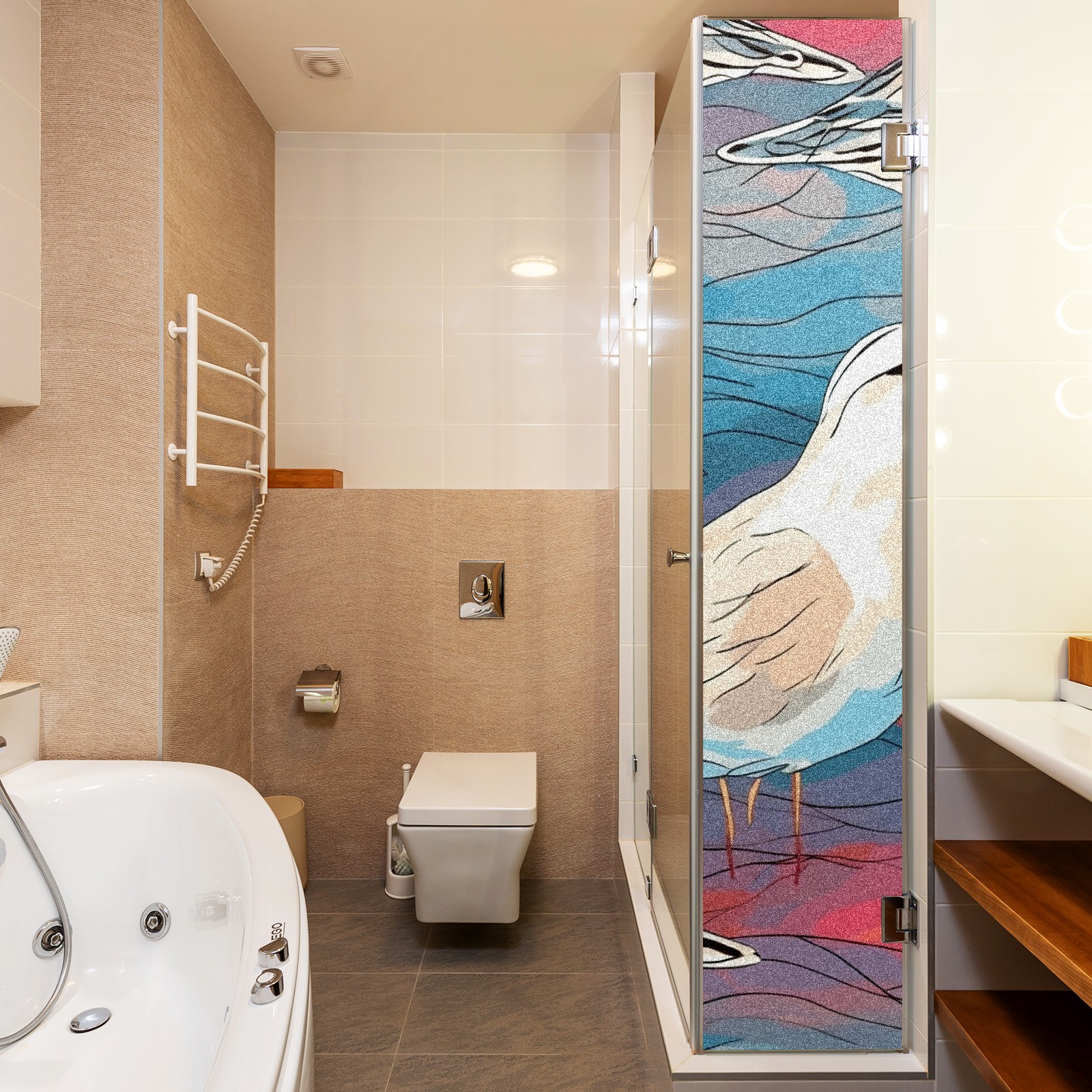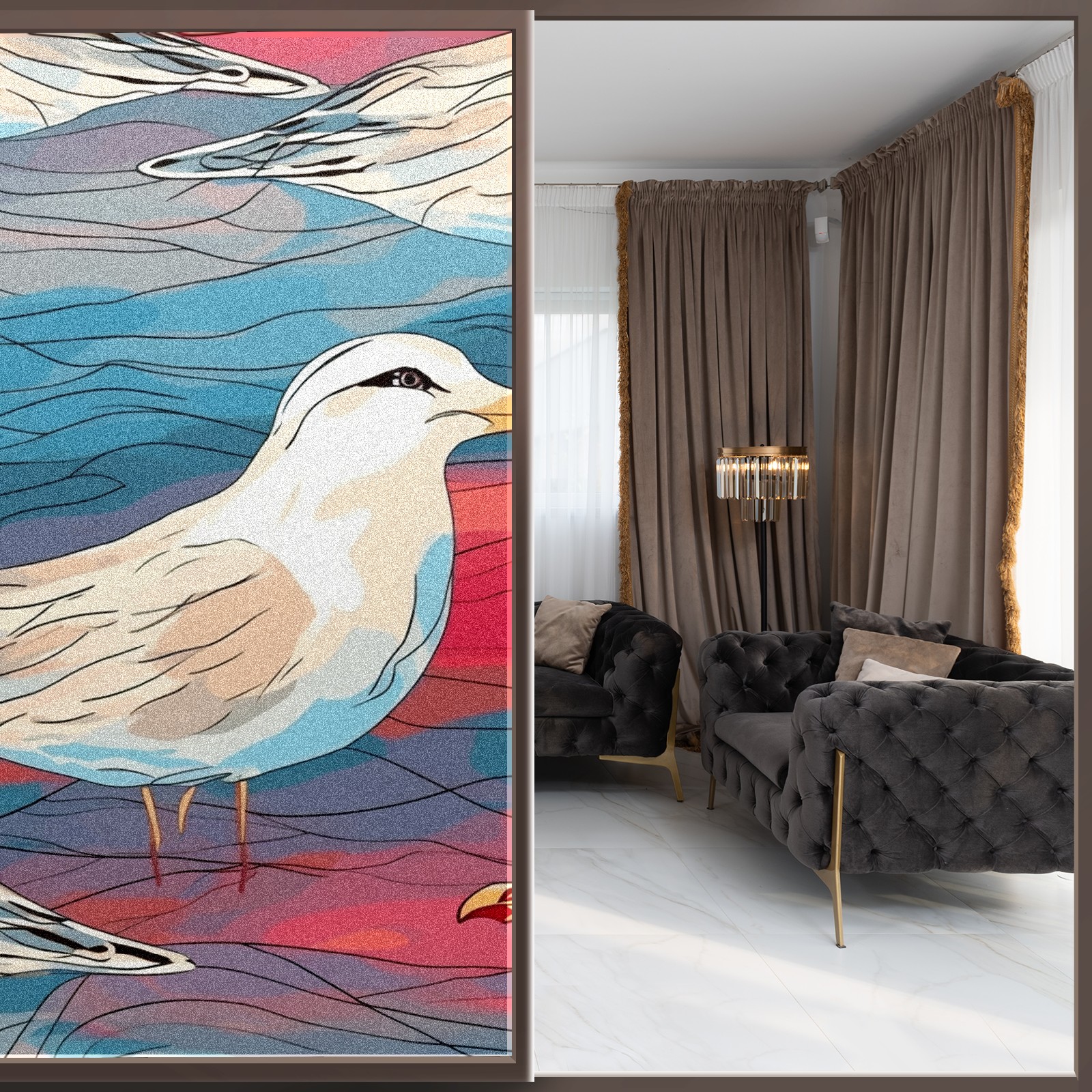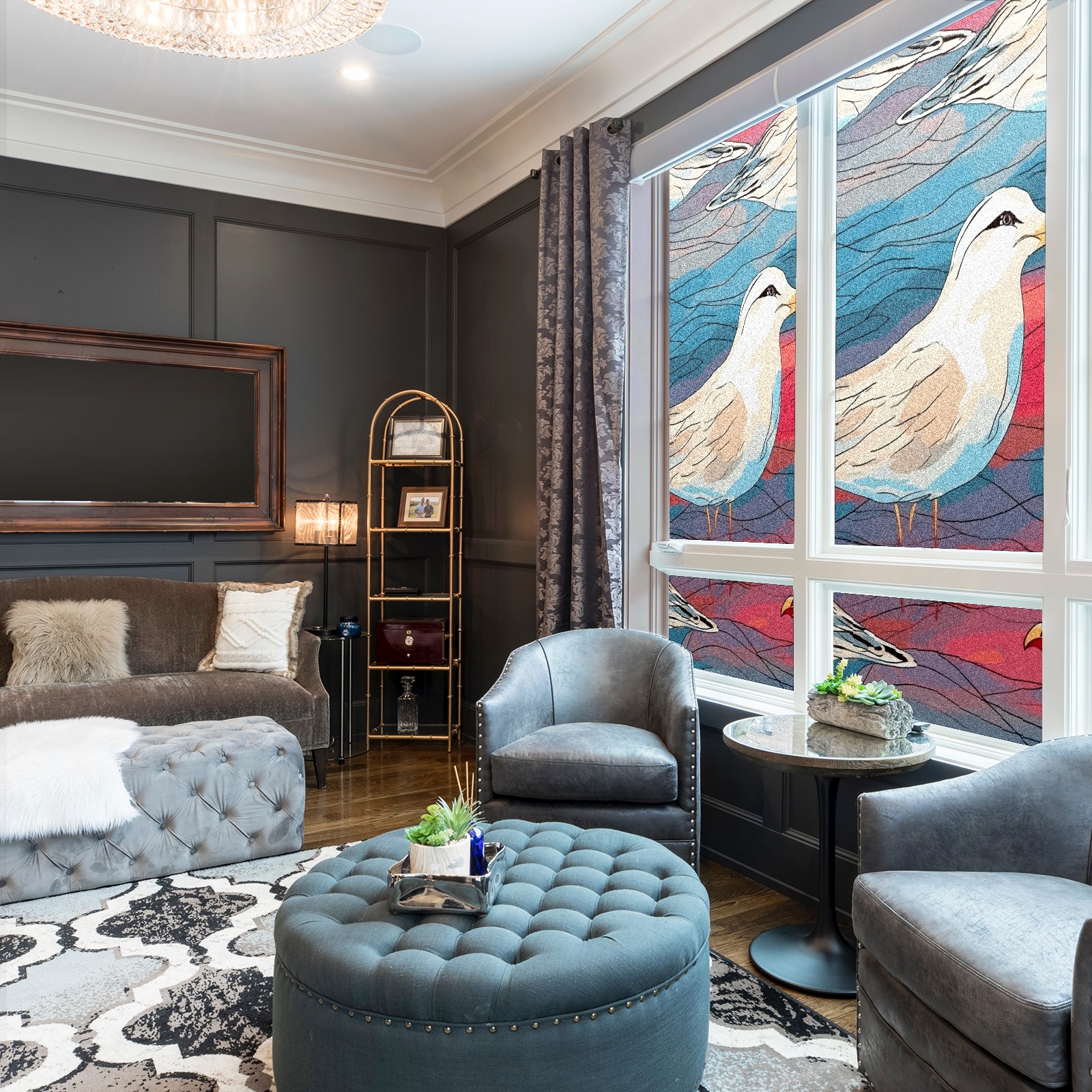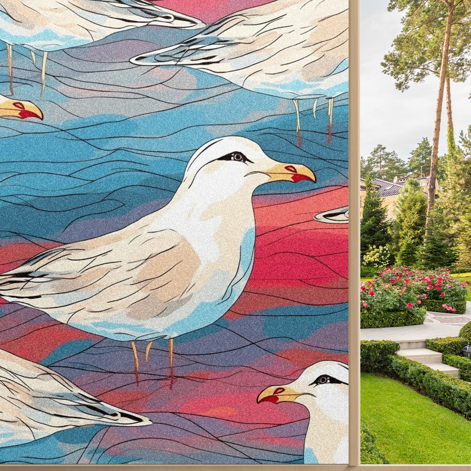 Static Cling Decorative Window Film Frosted Privacy Film Window Clings for Glass Windows No Glue Window Sticker for Bathroom Bedroom Office Stained Glass Seagull (1)