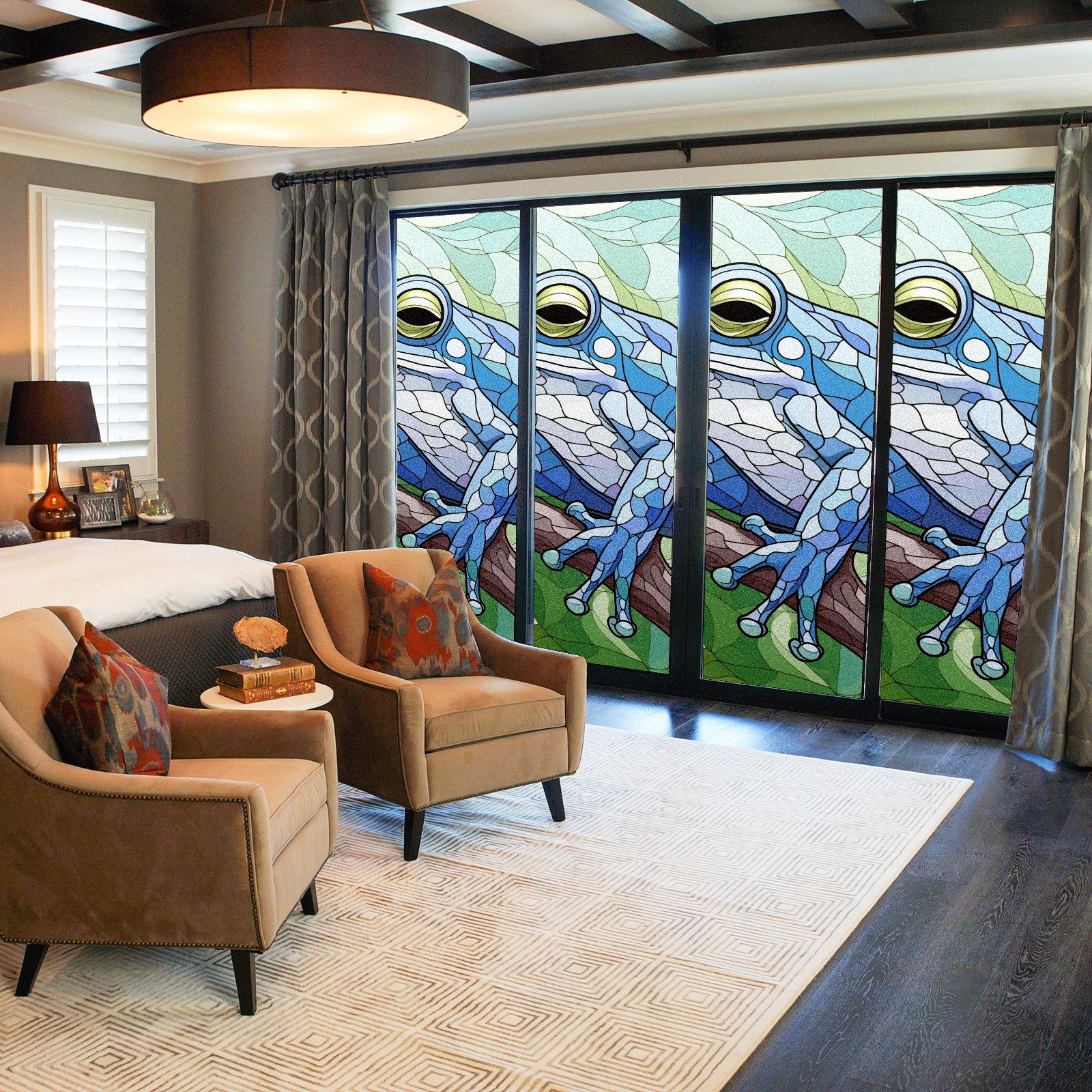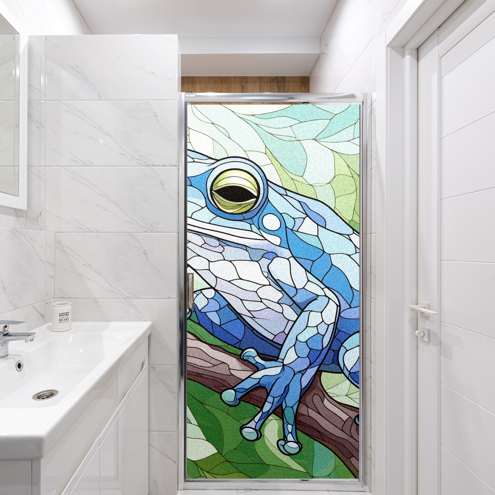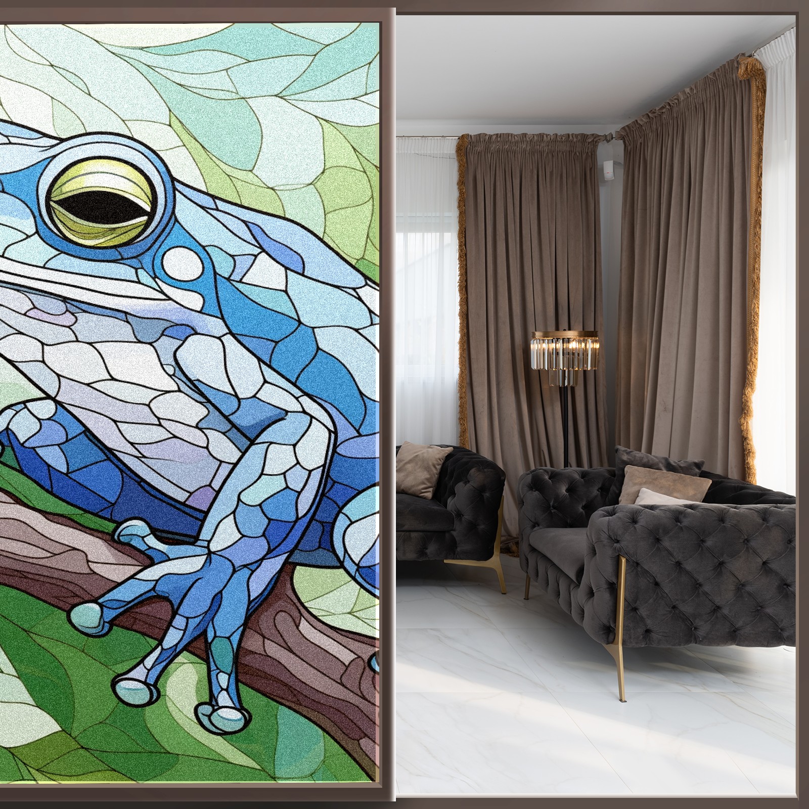 Static Cling Decorative Window Film Frosted Privacy Film Window Clings for Glass Windows No Glue Window Sticker for Bathroom Bedroom Office Stained Glass Frog (3)