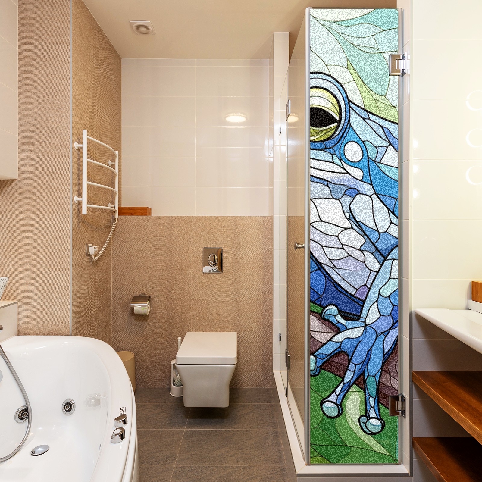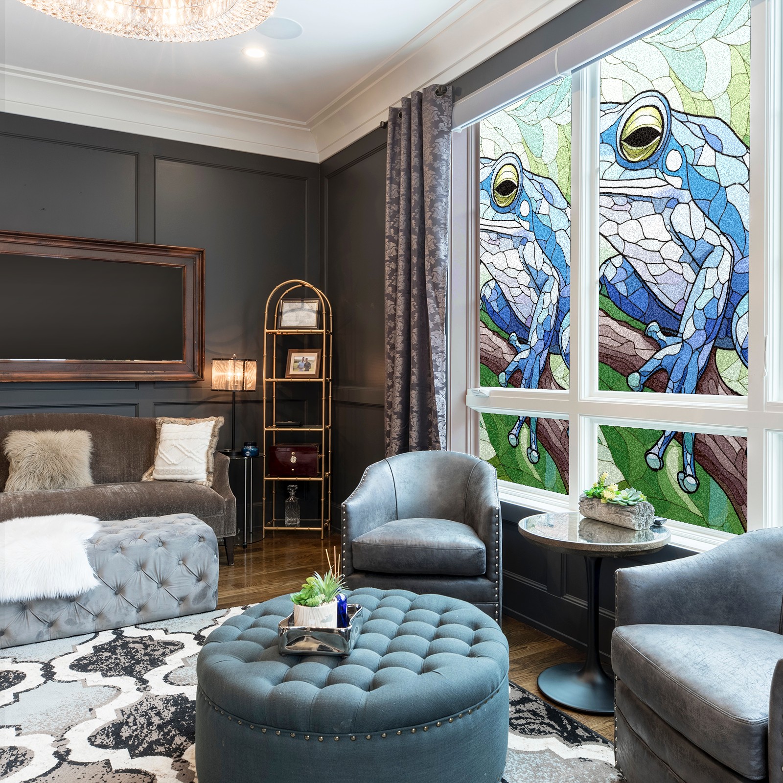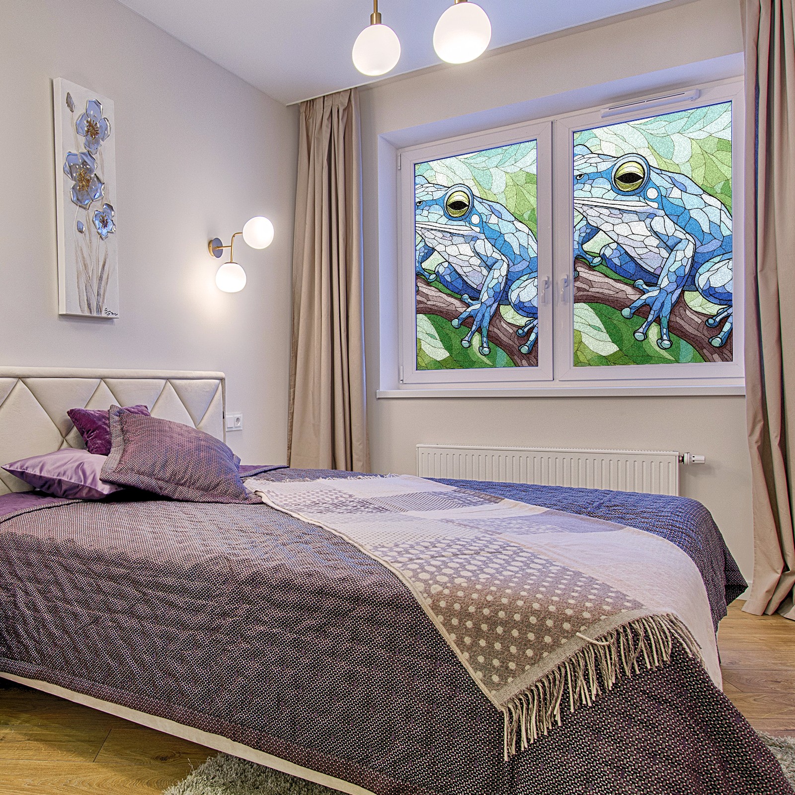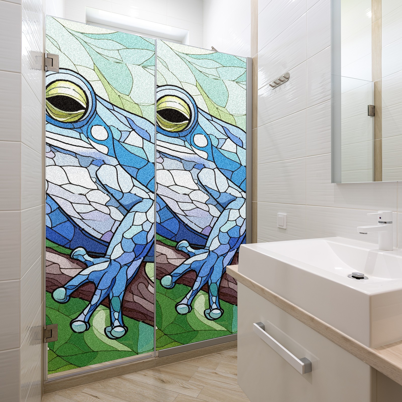 Static Cling Decorative Window Film Frosted Privacy Film Window Clings for Glass Windows No Glue Window Sticker for Bathroom Bedroom Office Stained Glass Frog (3)