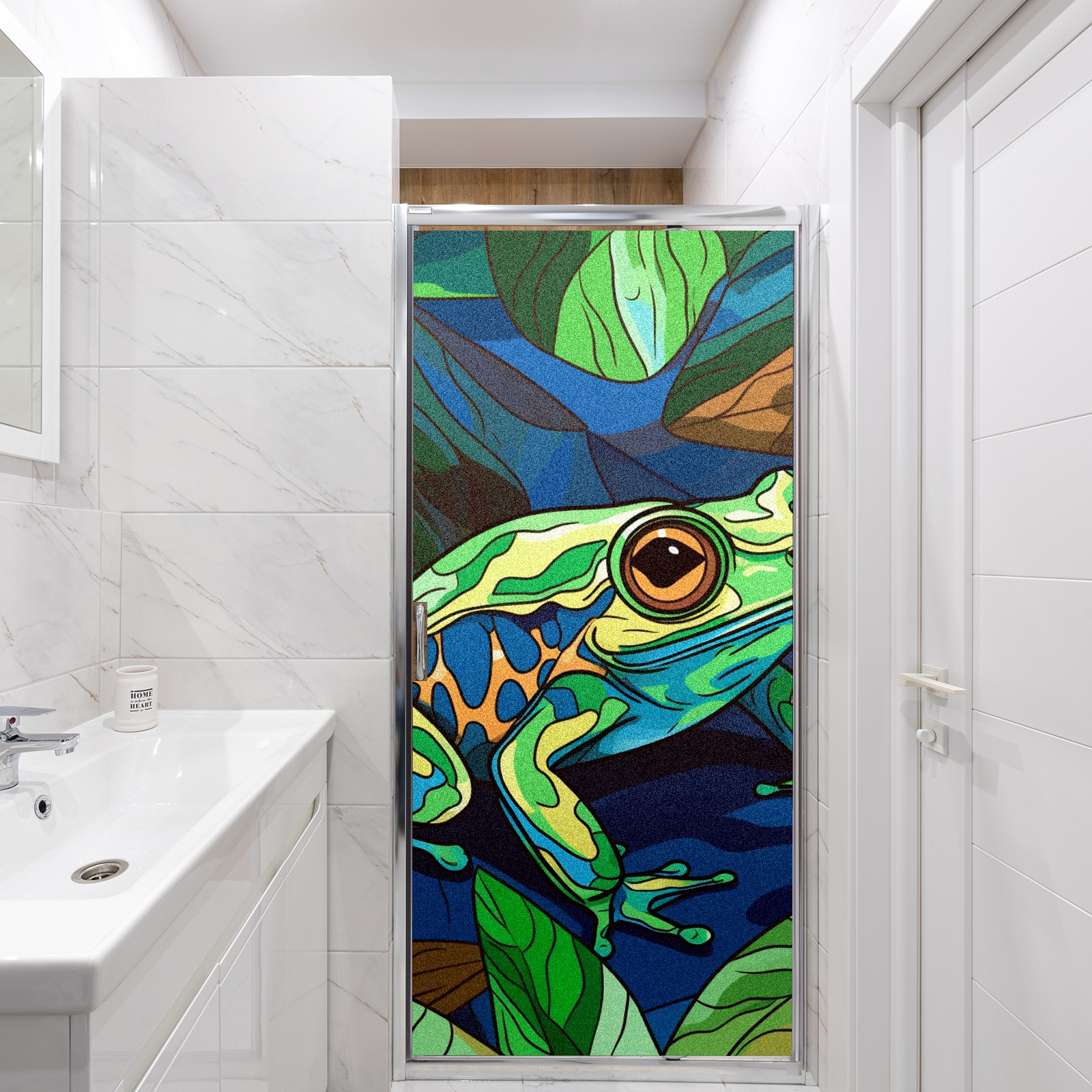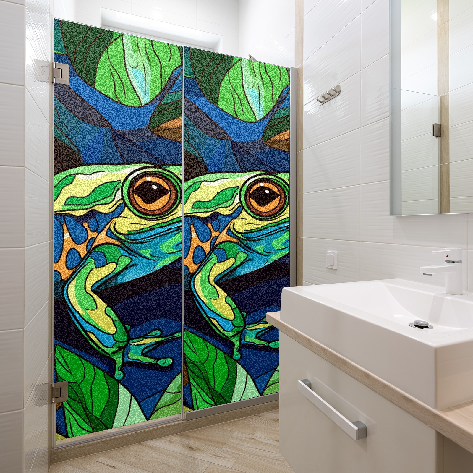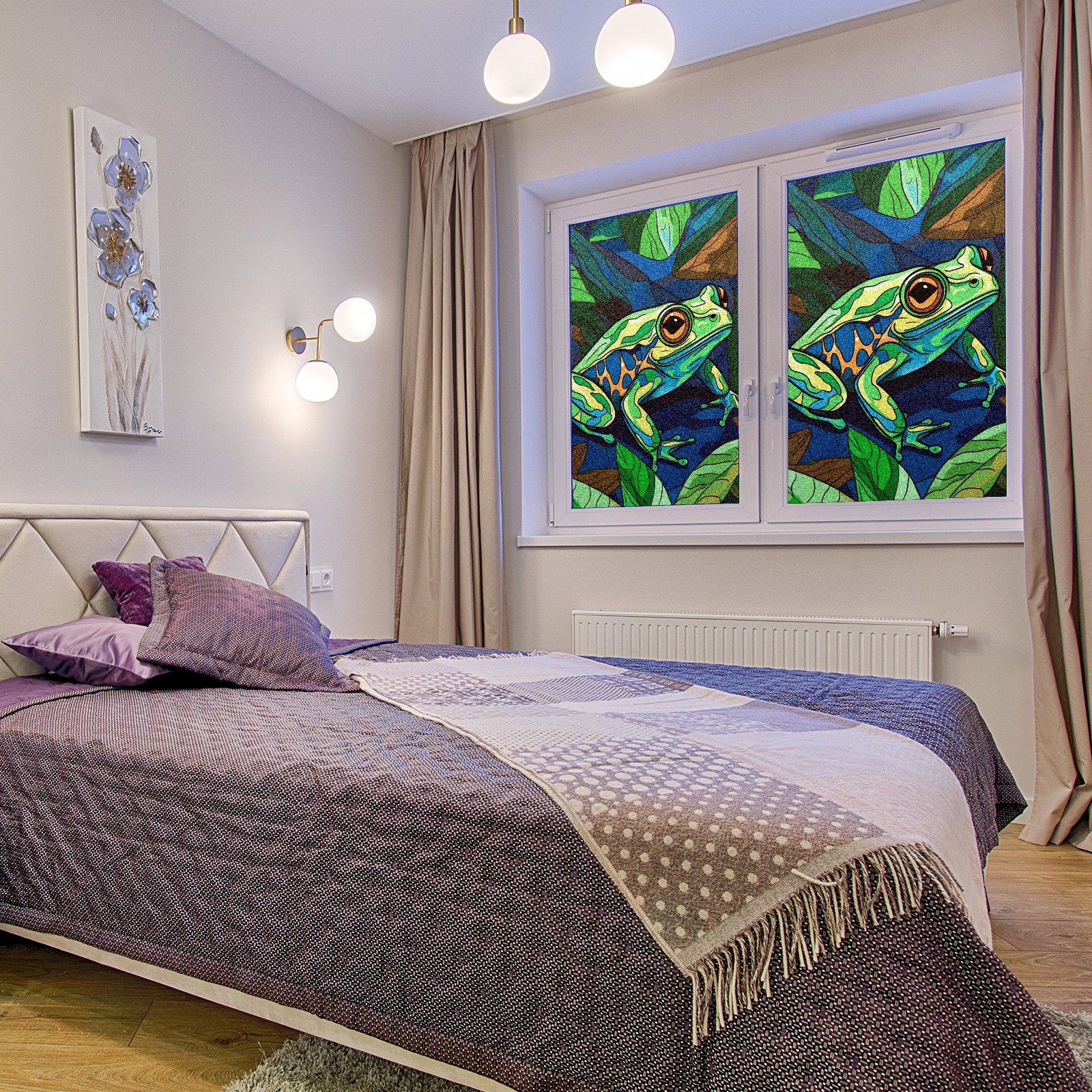 Static Cling Decorative Window Film Frosted Privacy Film Window Clings for Glass Windows No Glue Window Sticker for Bathroom Bedroom Office Stained Glass Frog (2)