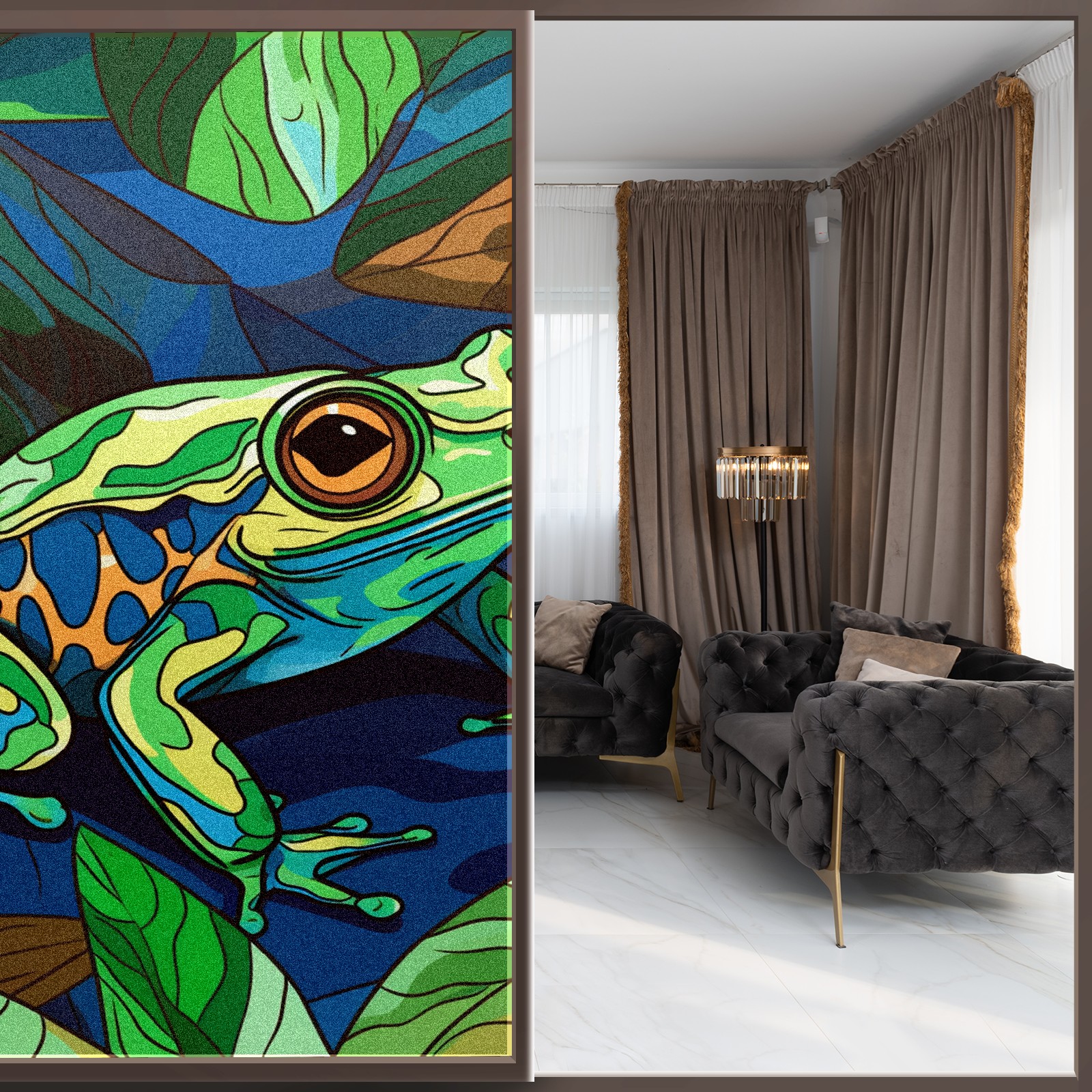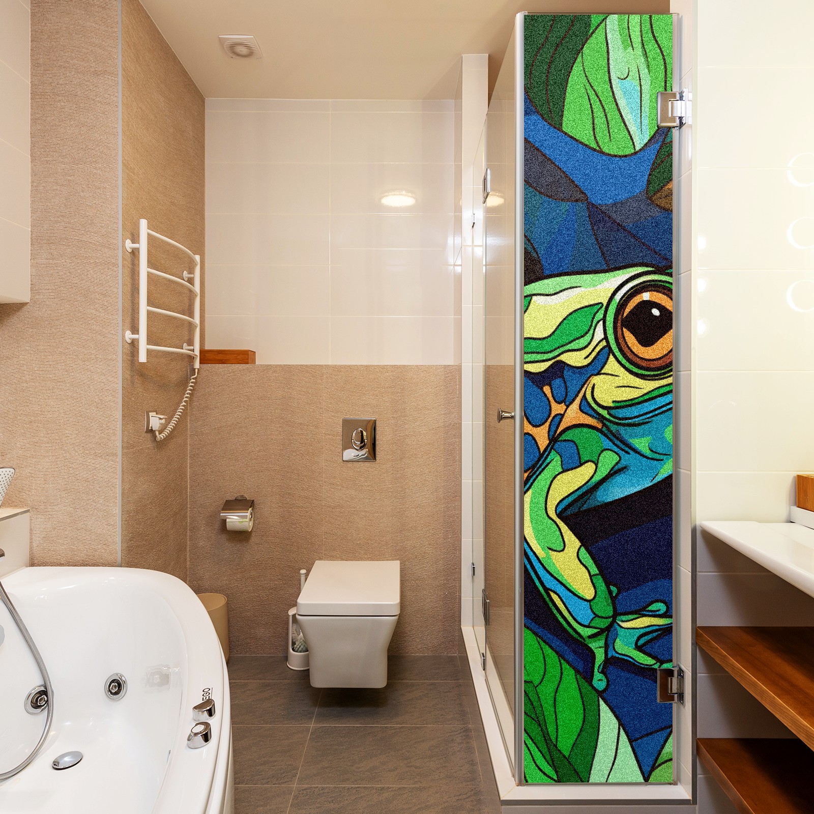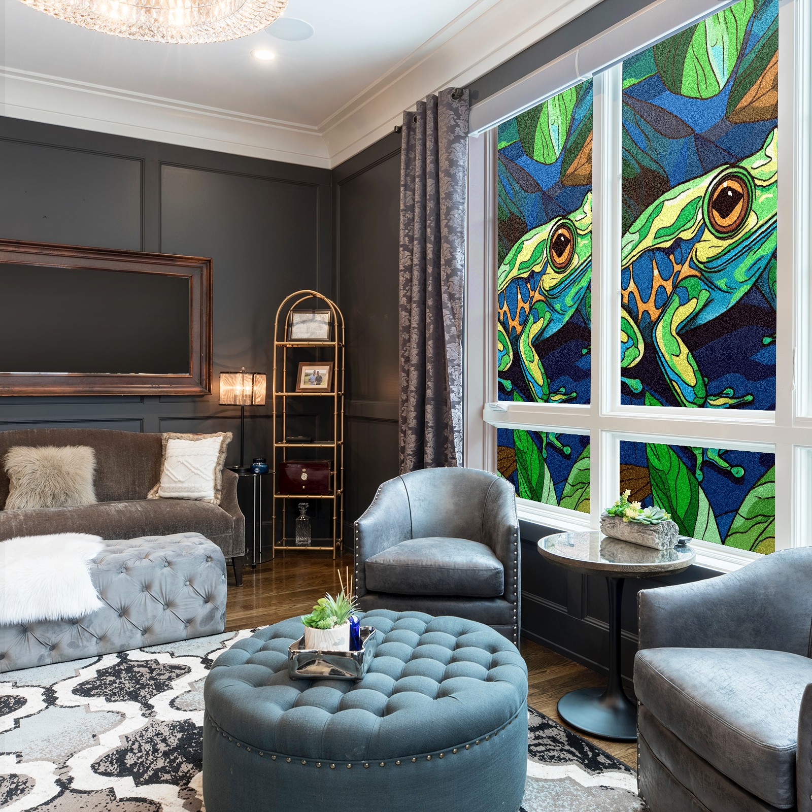 Static Cling Decorative Window Film Frosted Privacy Film Window Clings for Glass Windows No Glue Window Sticker for Bathroom Bedroom Office Stained Glass Frog (2)