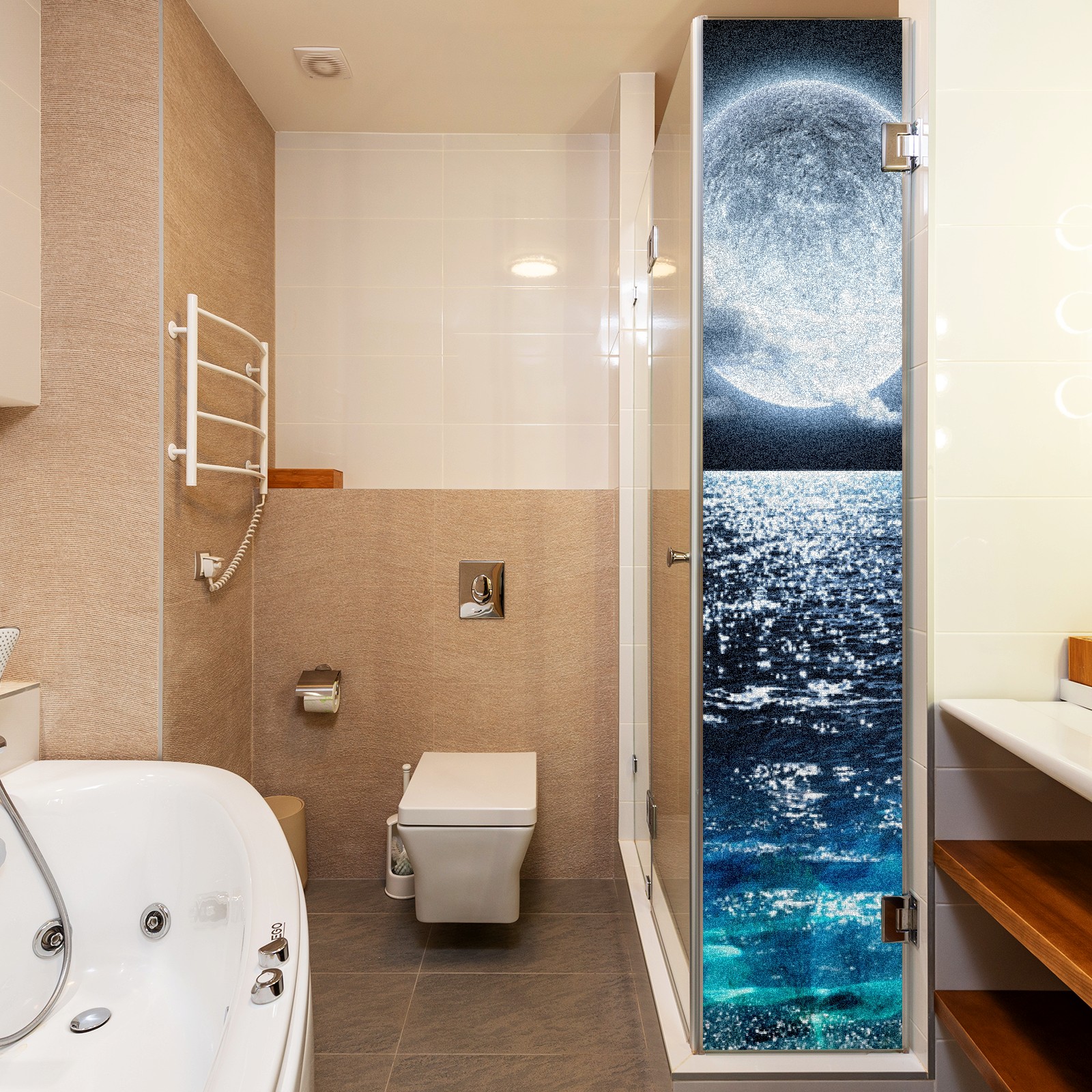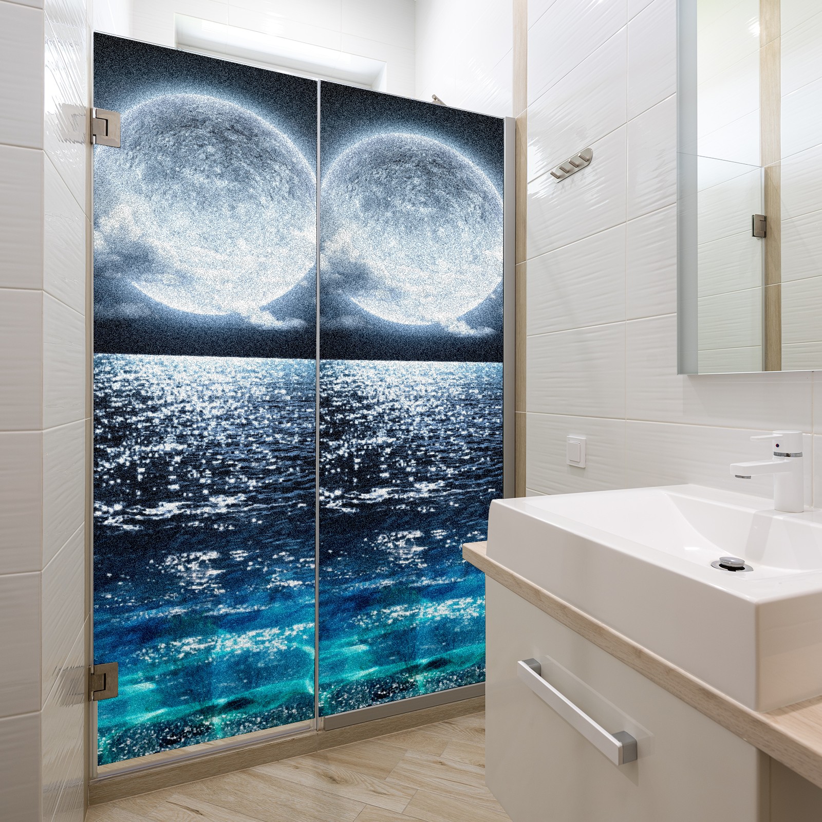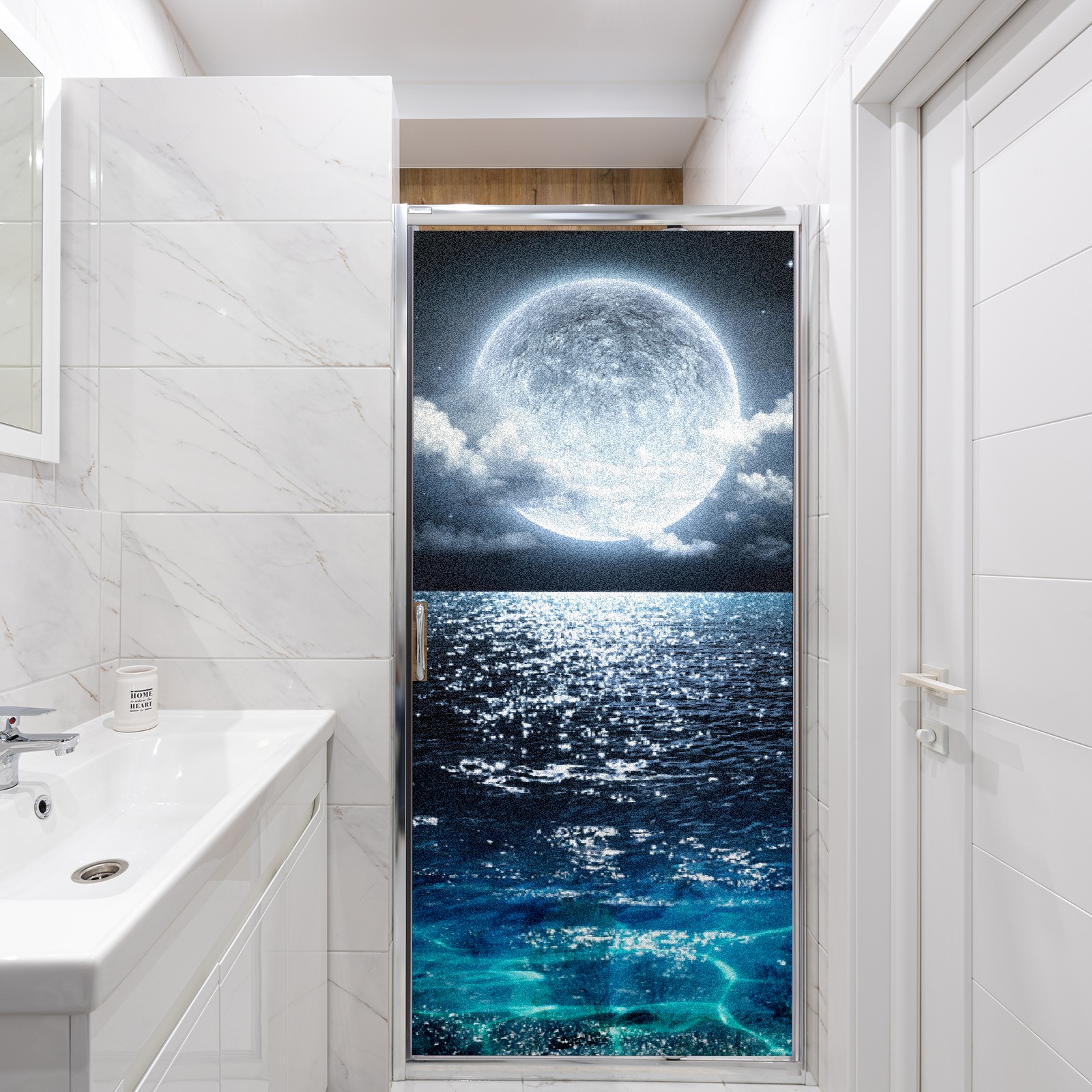 Static Cling Decorative Window Film Frosted Privacy Film Window Clings for Glass Windows No Glue Window Sticker for Bathroom Bedroom Office Moon At Sea