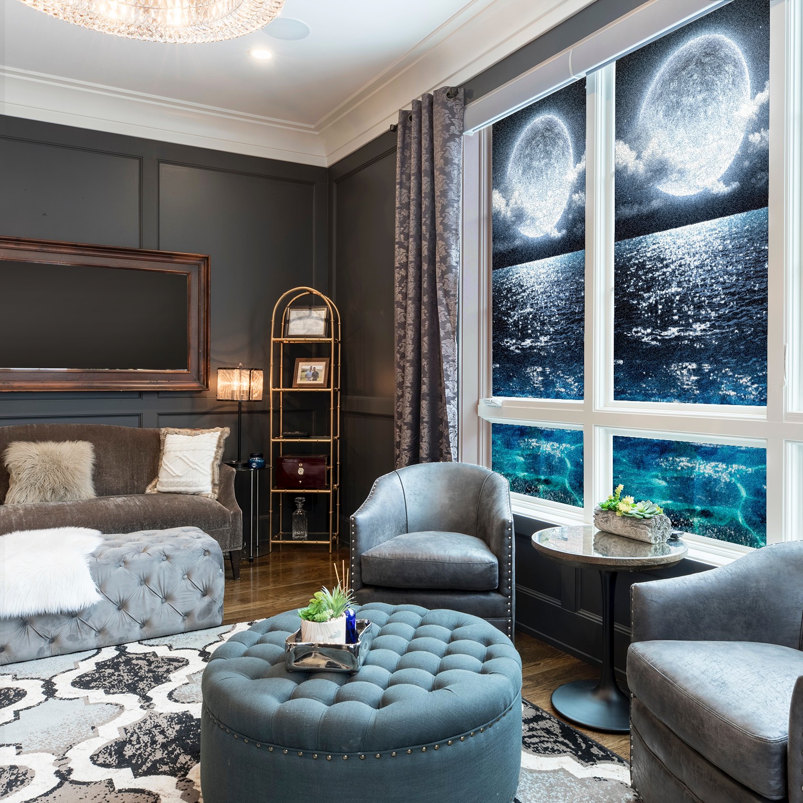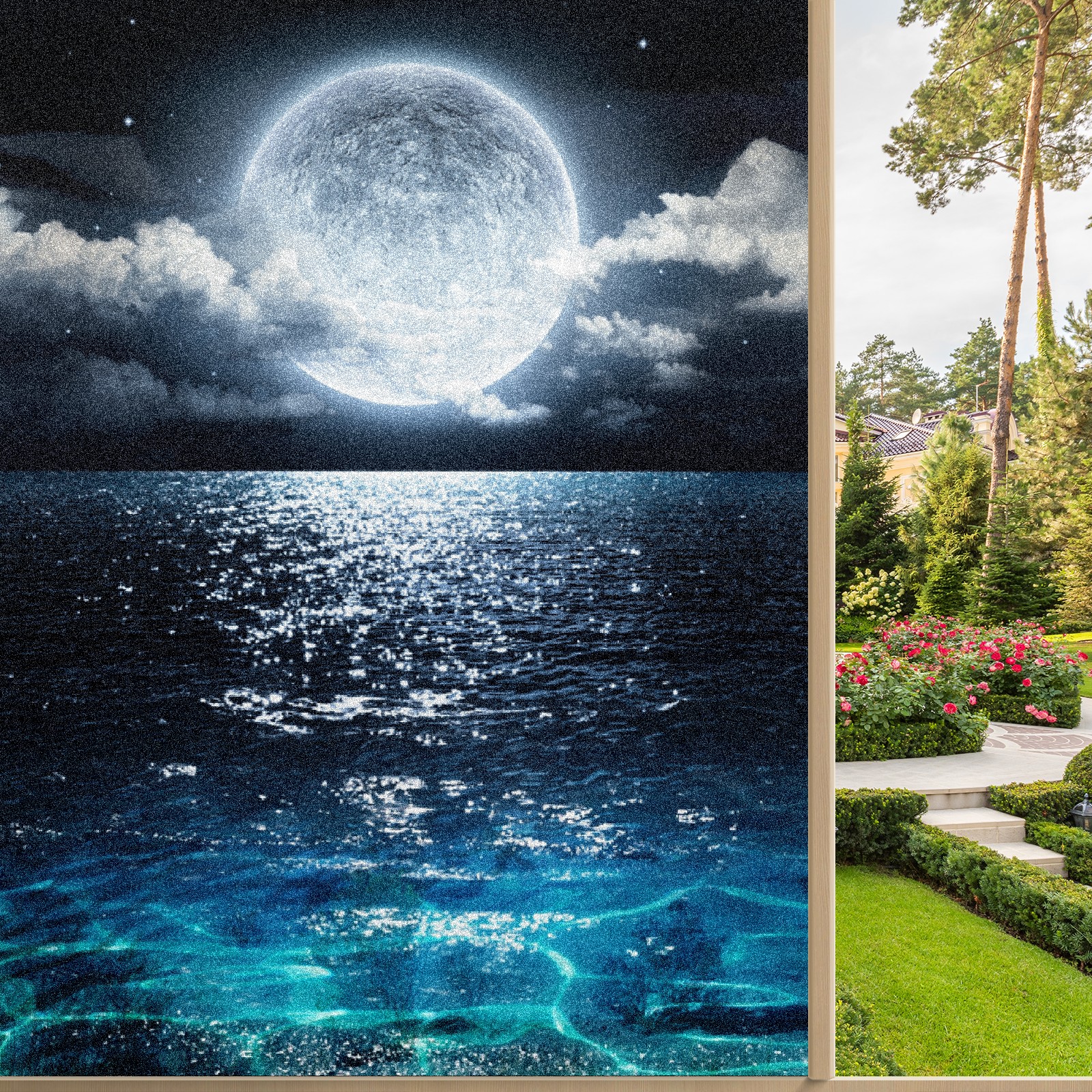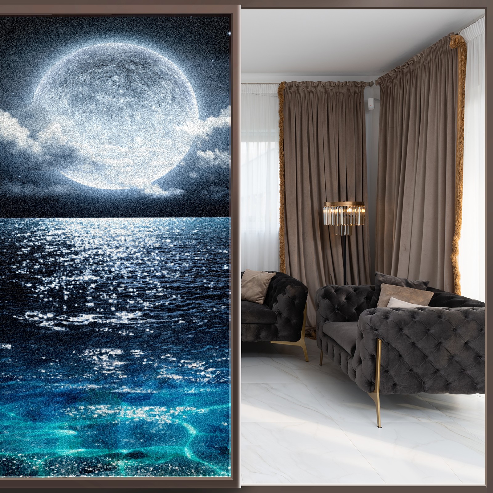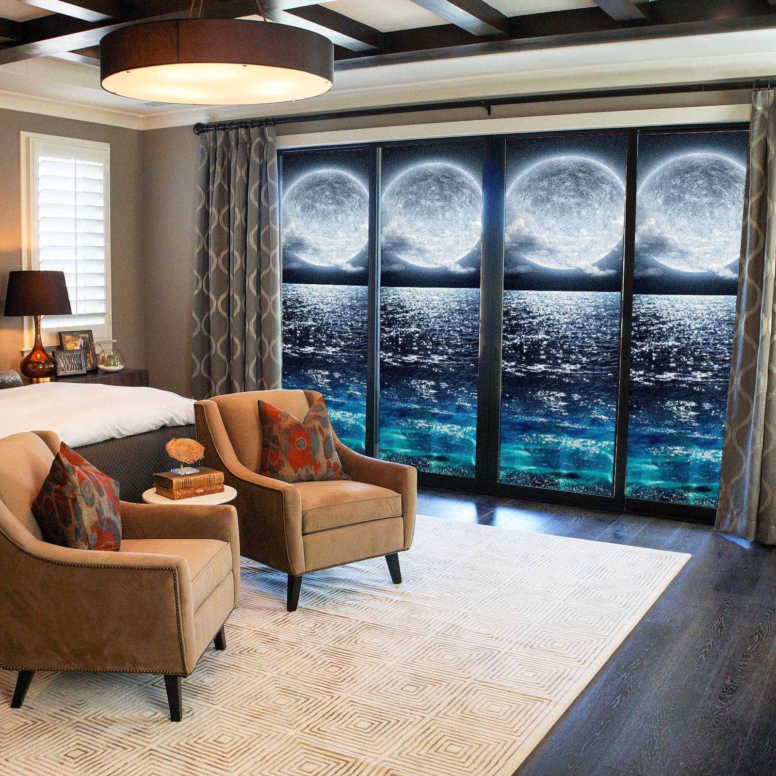 Static Cling Decorative Window Film Frosted Privacy Film Window Clings for Glass Windows No Glue Window Sticker for Bathroom Bedroom Office Moon At Sea