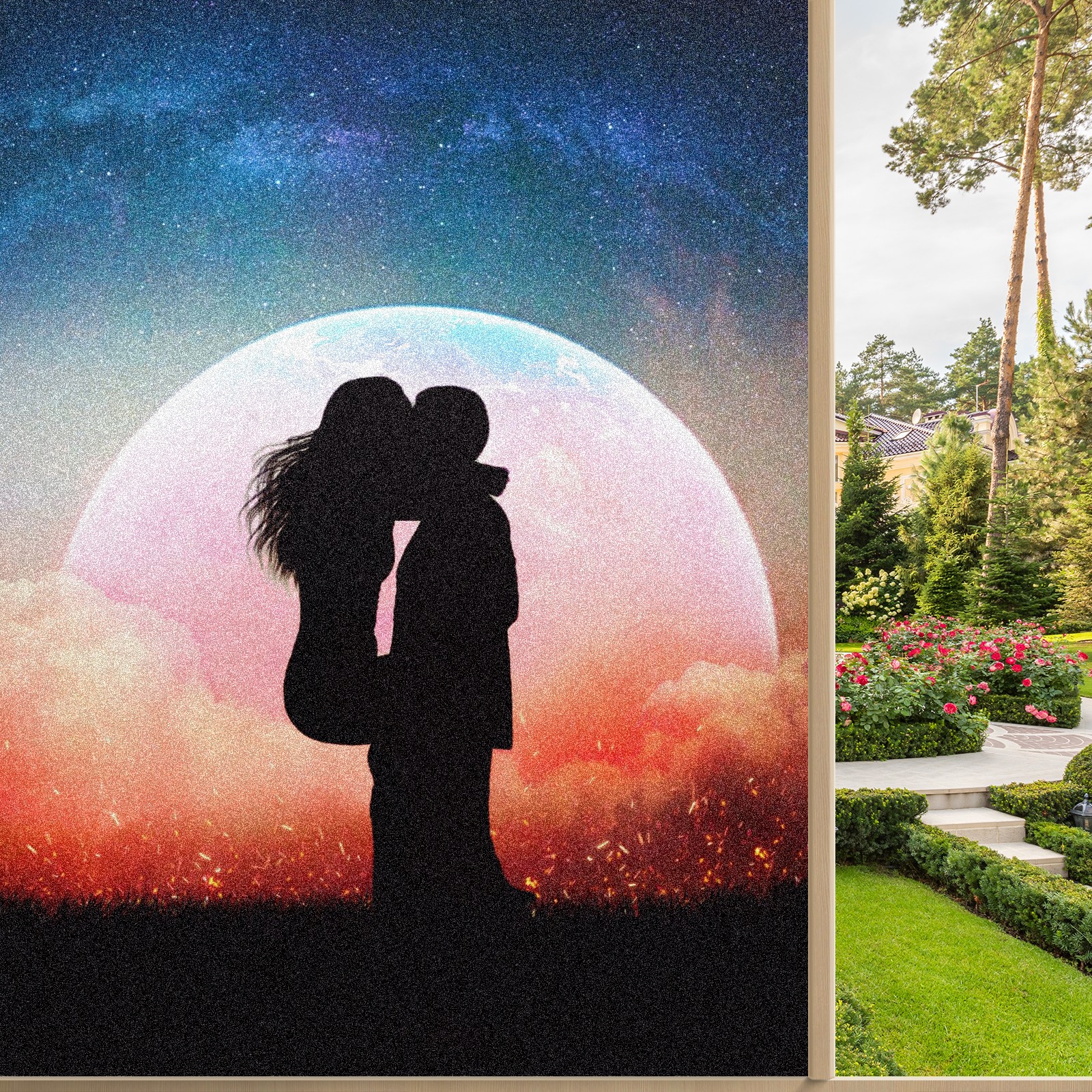 Static Cling Decorative Window Film Frosted Privacy Film Window Clings for Glass Windows No Glue Window Sticker for Bathroom Bedroom Office Couple Lovers