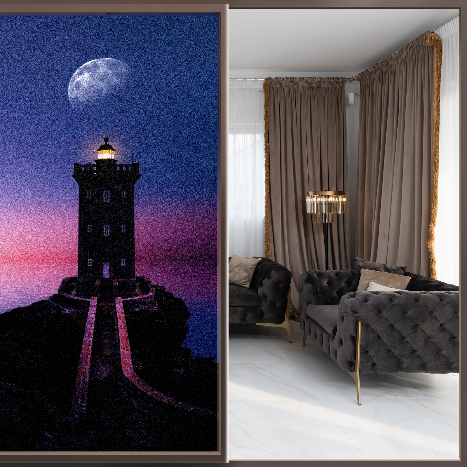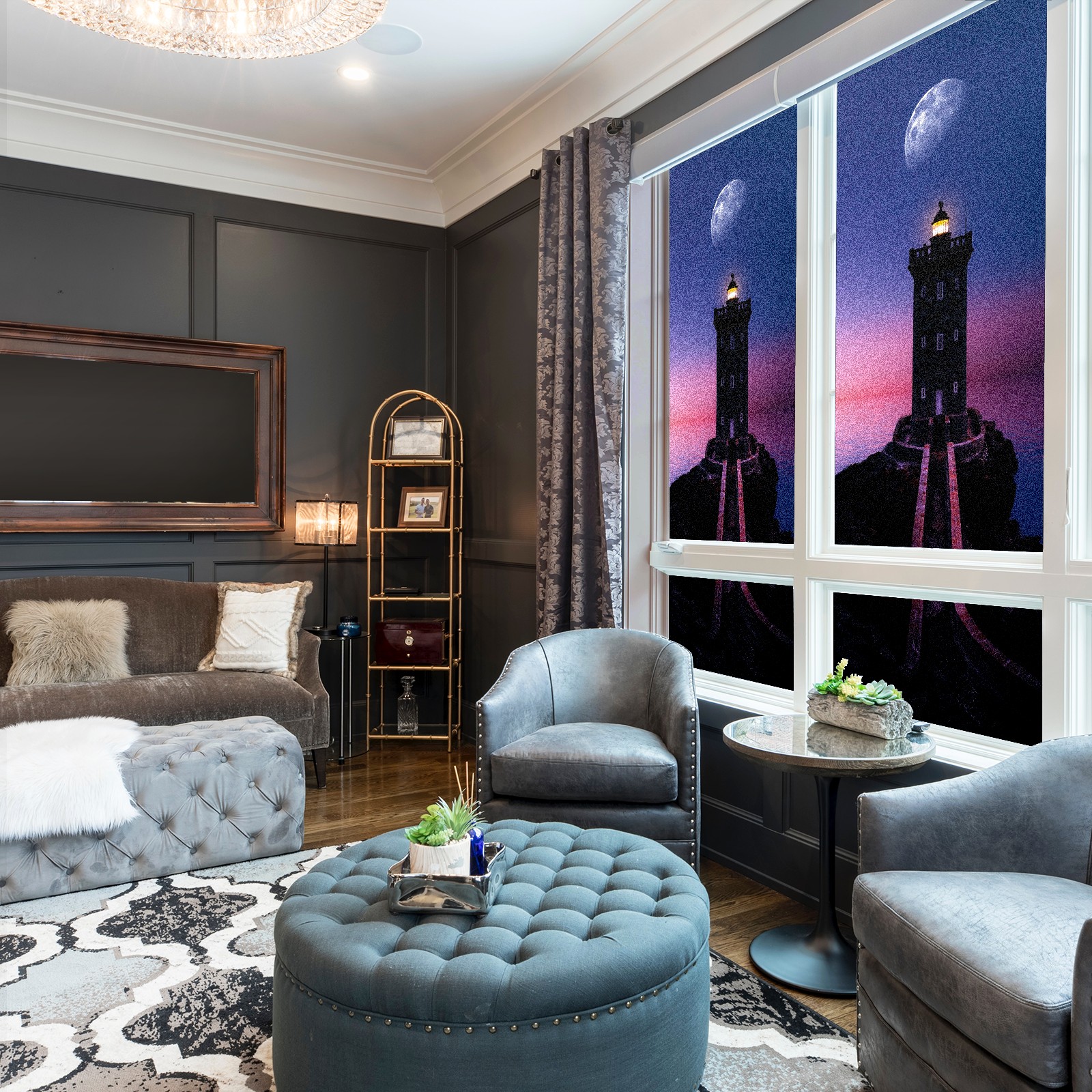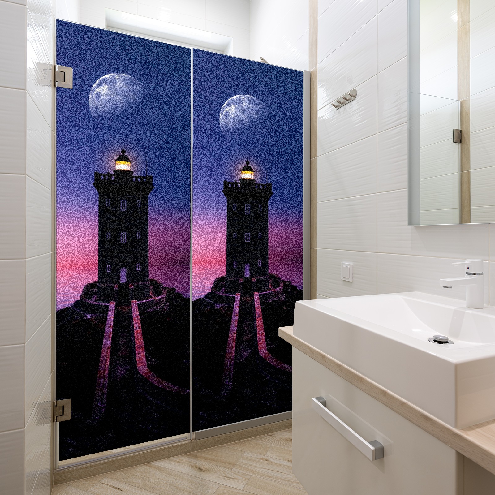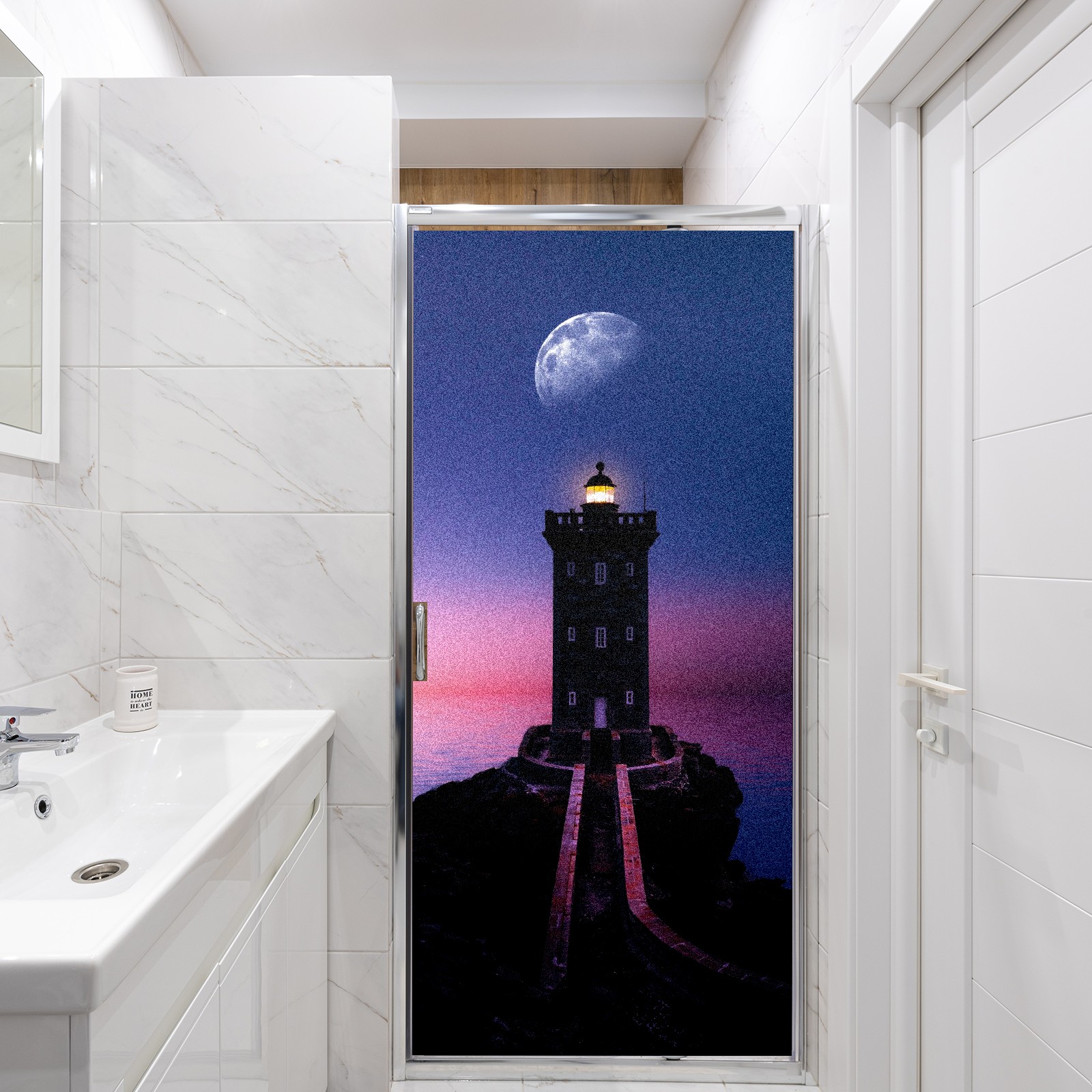 Static Cling Decorative Window Film Frosted Privacy Film Window Clings for Glass Windows No Glue Window Sticker for Bathroom Bedroom Office Lighthouse Moon