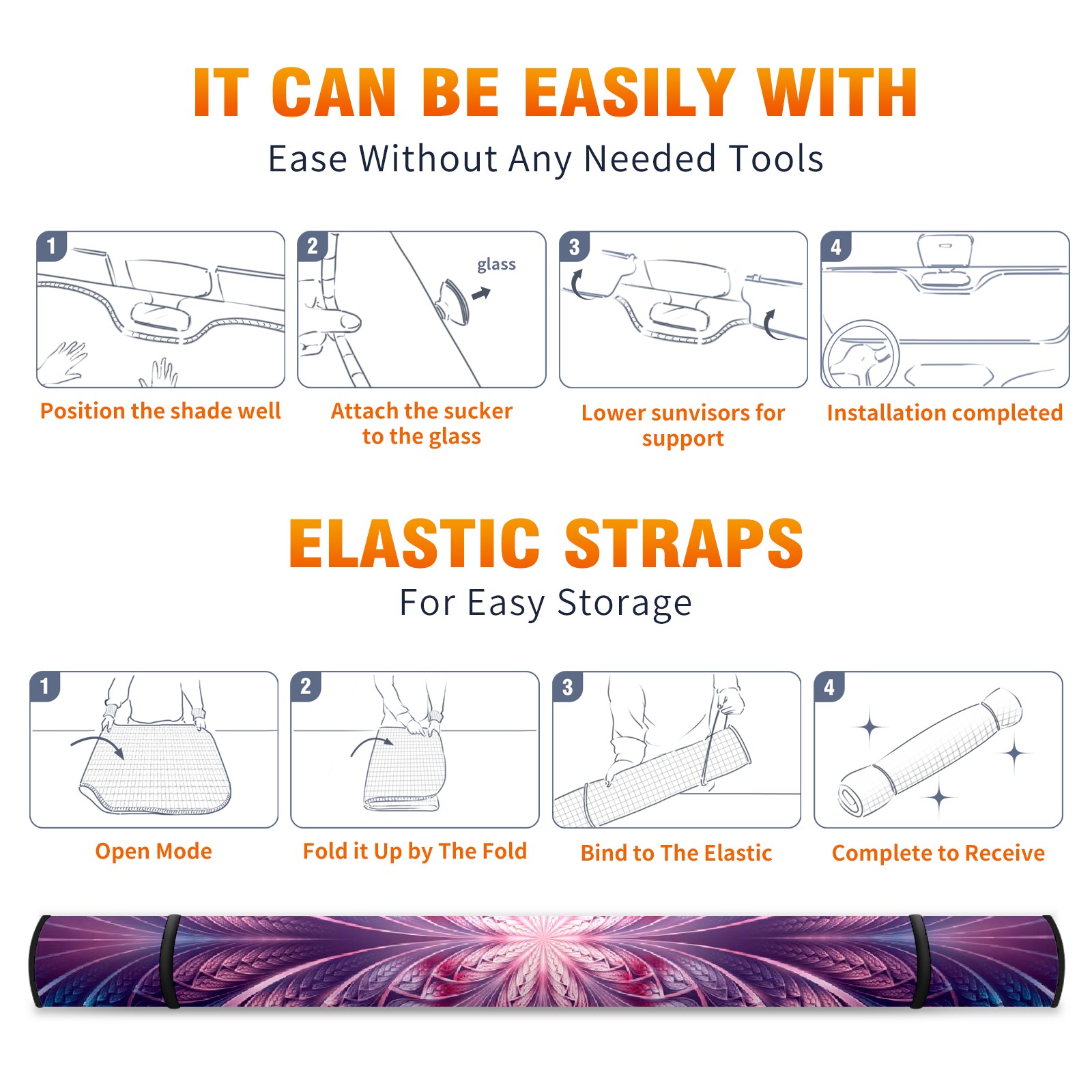• Diameter /Size 63"L x 33.5"W Made from excellent materials which makes it sturdy and protects the car from the sun. Easy to use and pack. Makes the interior of the car cooler.You can easily stash the sunshade in the storage bag or store long term.It open and closes easy. Also the leather storage bag is durable and easy to put the umbrella back into.This windshield sunshade provides complete coverage and keeps your car interior cool under direct sun. It is easy to open and position under the windshield and around the rear-view mirror. Makes Your Car Easy To Identify, Perfect For Finding Your Car In Crowded Parking Lots And Garages.Great Choice: It Is A Great Gift For Dad, Boyfriend, Brother, Brother And Uncle, Friends, Classmates, Family And So On. Notice: Due To Difference Computer Monitors, The Color Maybe Slightly Different From Picture. As Different Measurement Methods, Measurement Data Will Float Within 2%.I Hope You Understand. If You Have Any Question About The Item Please Do Not Hesitate To Contact Us Immediately And We Will Give You A Satisfactory Reply Within 24 Hours.