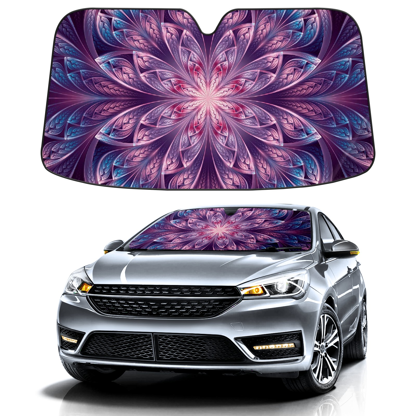 Car Windshield Sun Shade for Front Window Floral Stained Glass Purple Foldable Vehicle Windshield Car Sun Visor Covers Automotive Window Protector Car Camping Privacy Sun Blocker