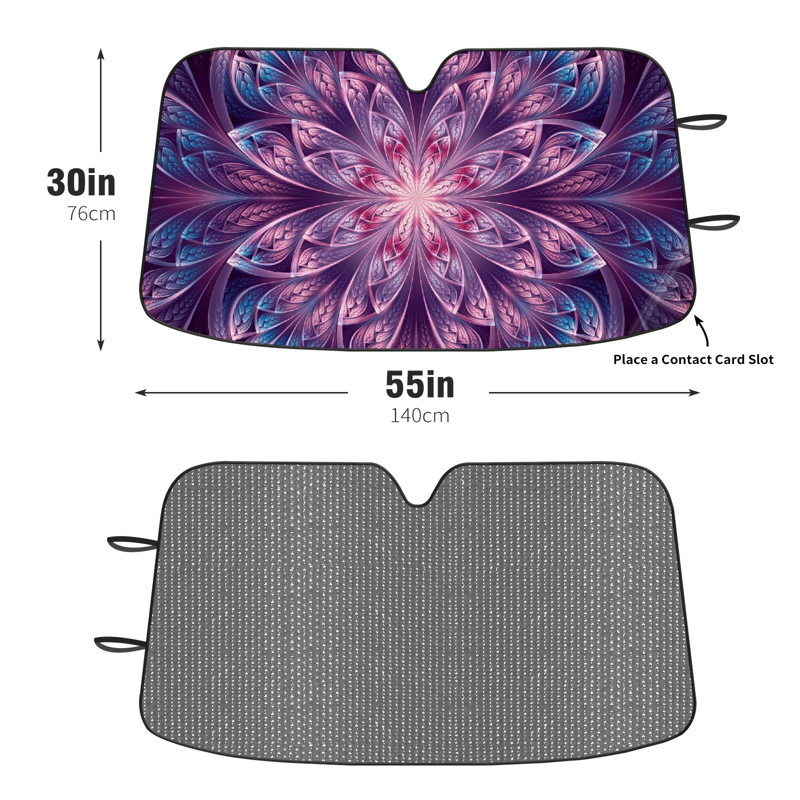Diameter /Size 63"L x 33.5"W Made from excellent materials which makes it sturdy and protects the car from the sun. Easy to use and pack. Makes the interior of the car cooler.You can easily stash the sunshade in the storage bag or store long term.It open and closes easy. Also the leather storage bag is durable and easy to put the umbrella back into.This windshield sunshade provides complete coverage and keeps your car interior cool under direct sun. It is easy to open and position under the windshield and around the rear-view mirror. Makes Your Car Easy To Identify, Perfect For Finding Your Car In Crowded Parking Lots And Garages.Great Choice: It Is A Great Gift For Dad, Boyfriend, Brother, Brother And Uncle, Friends, Classmates, Family And So On. Notice: Due To Difference Computer Monitors, The Color Maybe Slightly Different From Picture. As Different Measurement Methods, Measurement Data Will Float Within 2%.I Hope You Understand. If You Have Any Question About The Item Please Do Not Hesitate To Contact Us Immediately And We Will Give You A Satisfactory Reply Within 24 Hours.