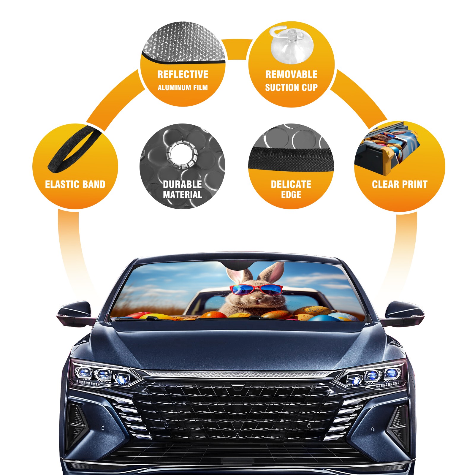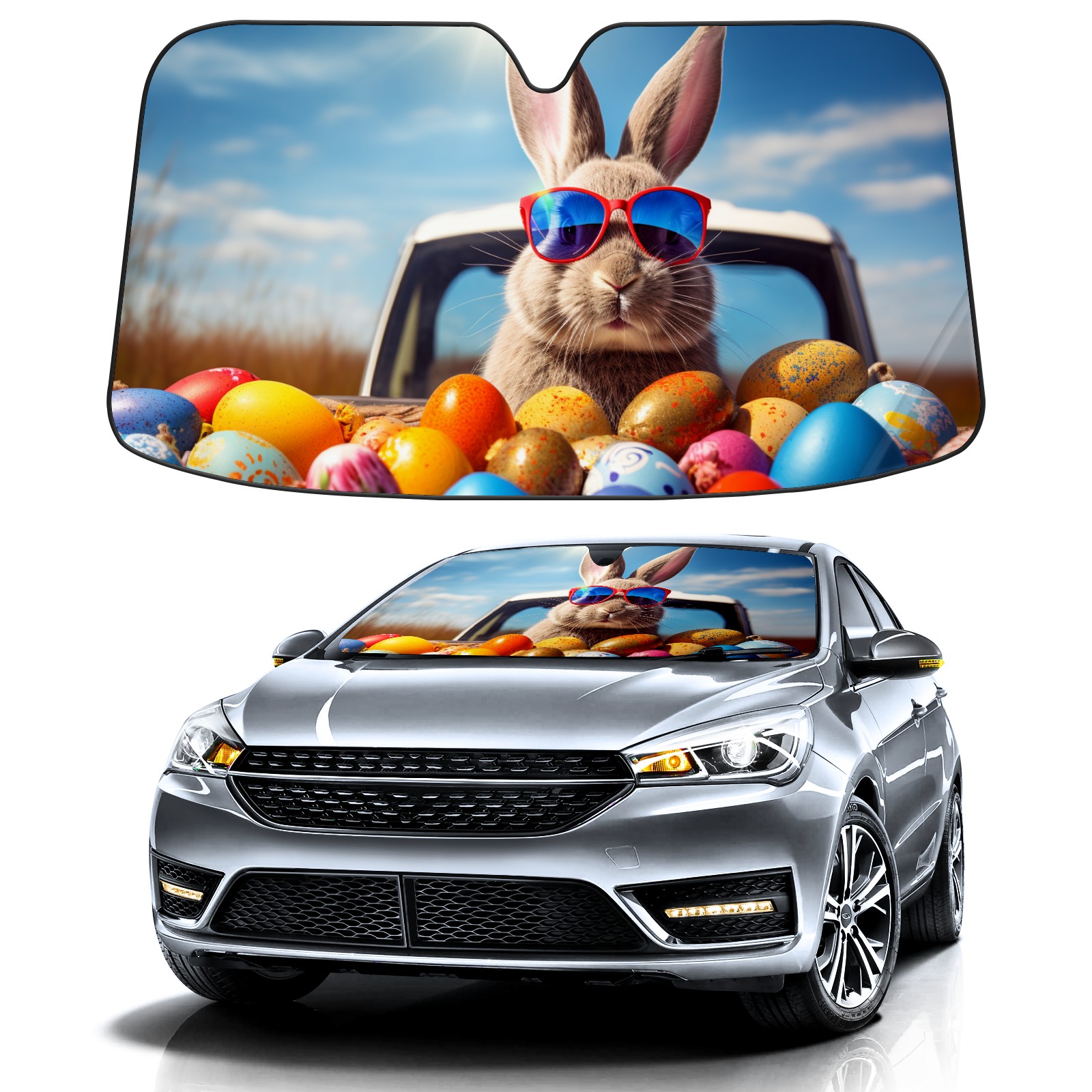 Car Windshield Sun Shade for Front Window Easter Bunny Foldable Vehicle Windshield Car Sun Visor Covers Automotive Window Protector Car Camping Privacy Sun Blocker