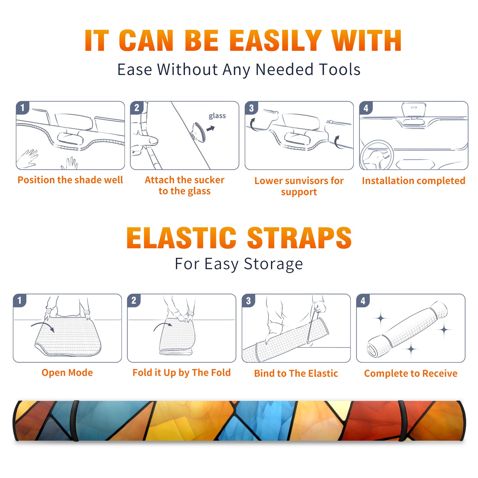 • Diameter /Size 63"L x 33.5"W Made from excellent materials which makes it sturdy and protects the car from the sun. Easy to use and pack. Makes the interior of the car cooler.You can easily stash the sunshade in the storage bag or store long term.It open and closes easy. Also the leather storage bag is durable and easy to put the umbrella back into.This windshield sunshade provides complete coverage and keeps your car interior cool under direct sun. It is easy to open and position under the windshield and around the rear-view mirror. Makes Your Car Easy To Identify, Perfect For Finding Your Car In Crowded Parking Lots And Garages.Great Choice: It Is A Great Gift For Dad, Boyfriend, Brother, Brother And Uncle, Friends, Classmates, Family And So On. Notice: Due To Difference Computer Monitors, The Color Maybe Slightly Different From Picture. As Different Measurement Methods, Measurement Data Will Float Within 2%.I Hope You Understand. If You Have Any Question About The Item Please Do Not Hesitate To Contact Us Immediately And We Will Give You A Satisfactory Reply Within 24 Hours.
