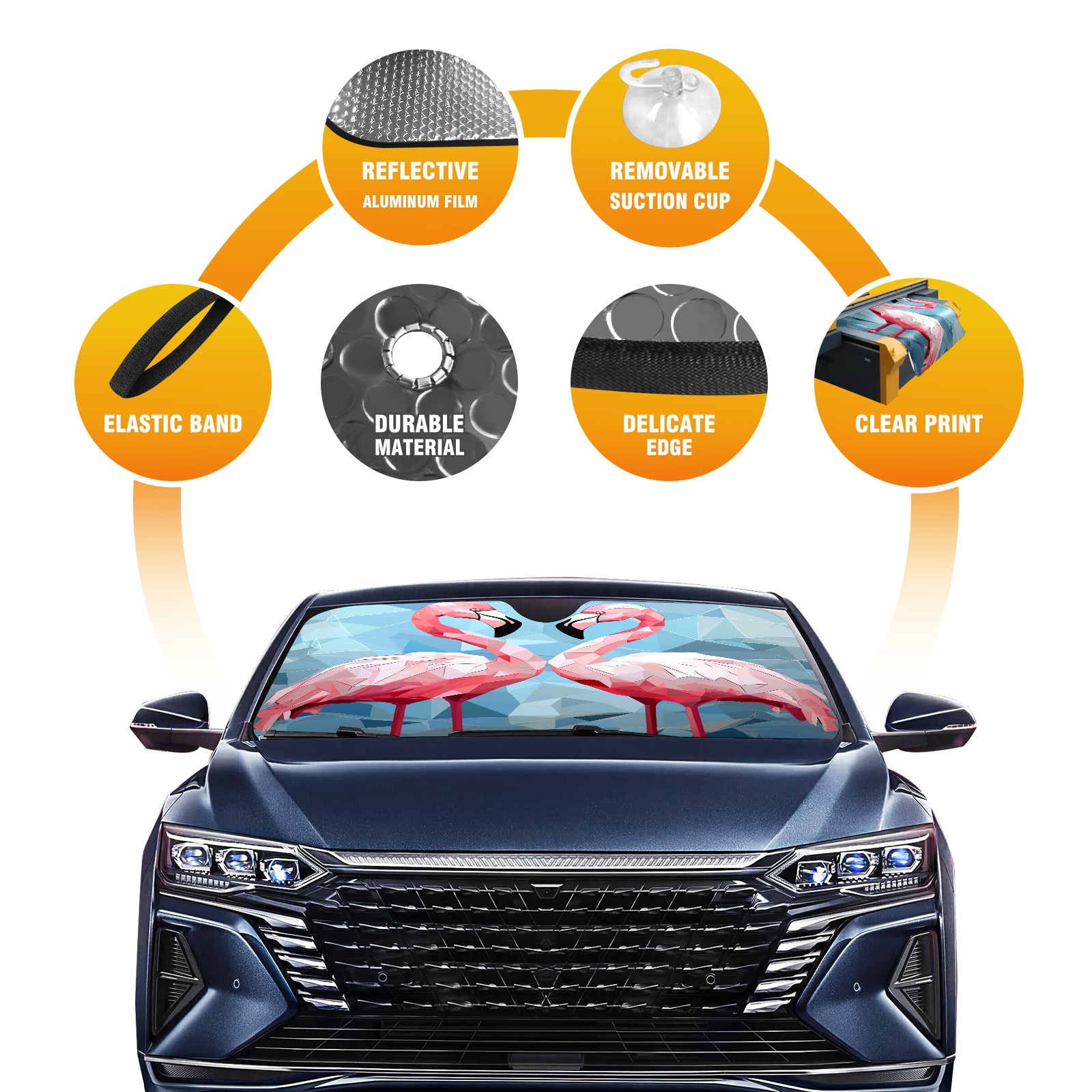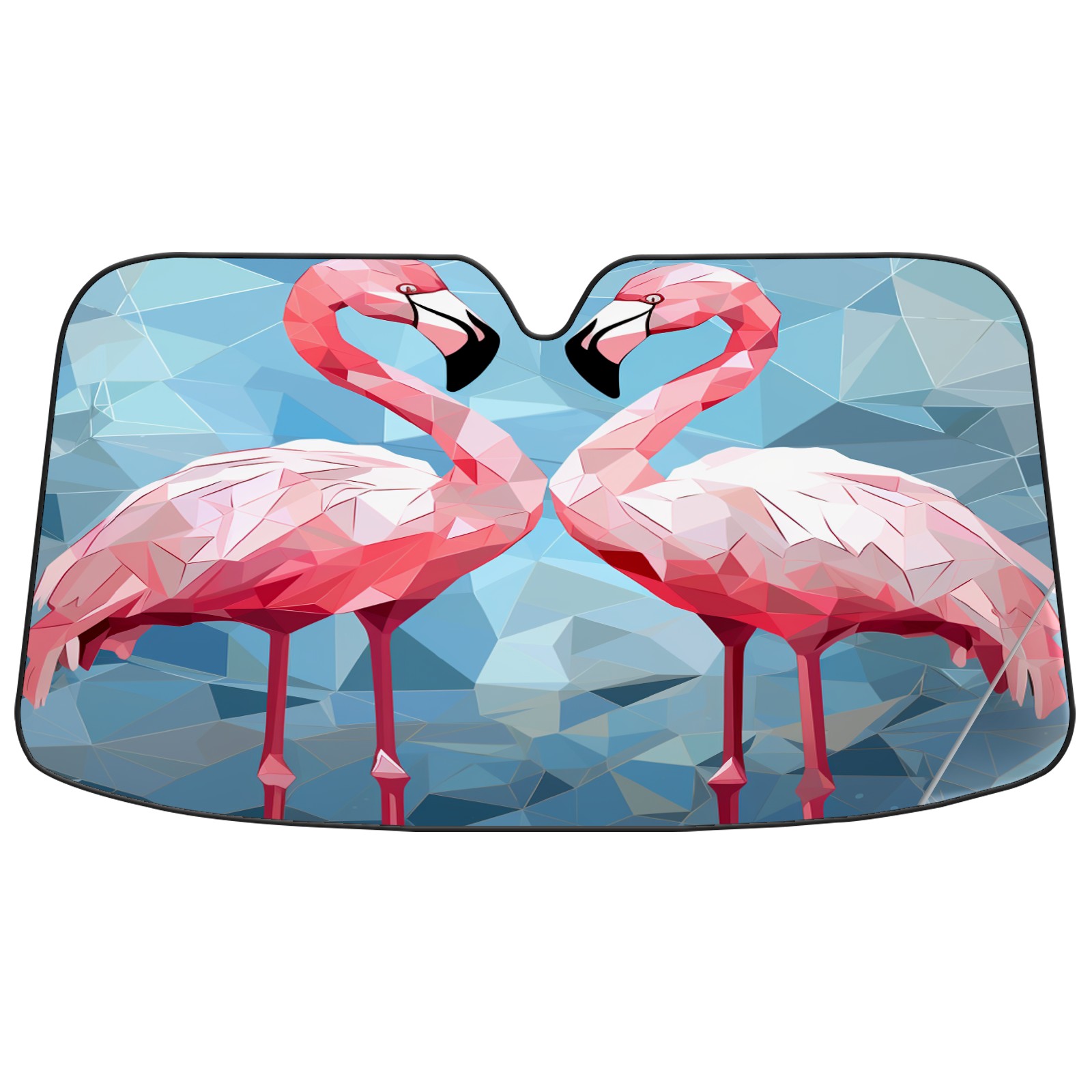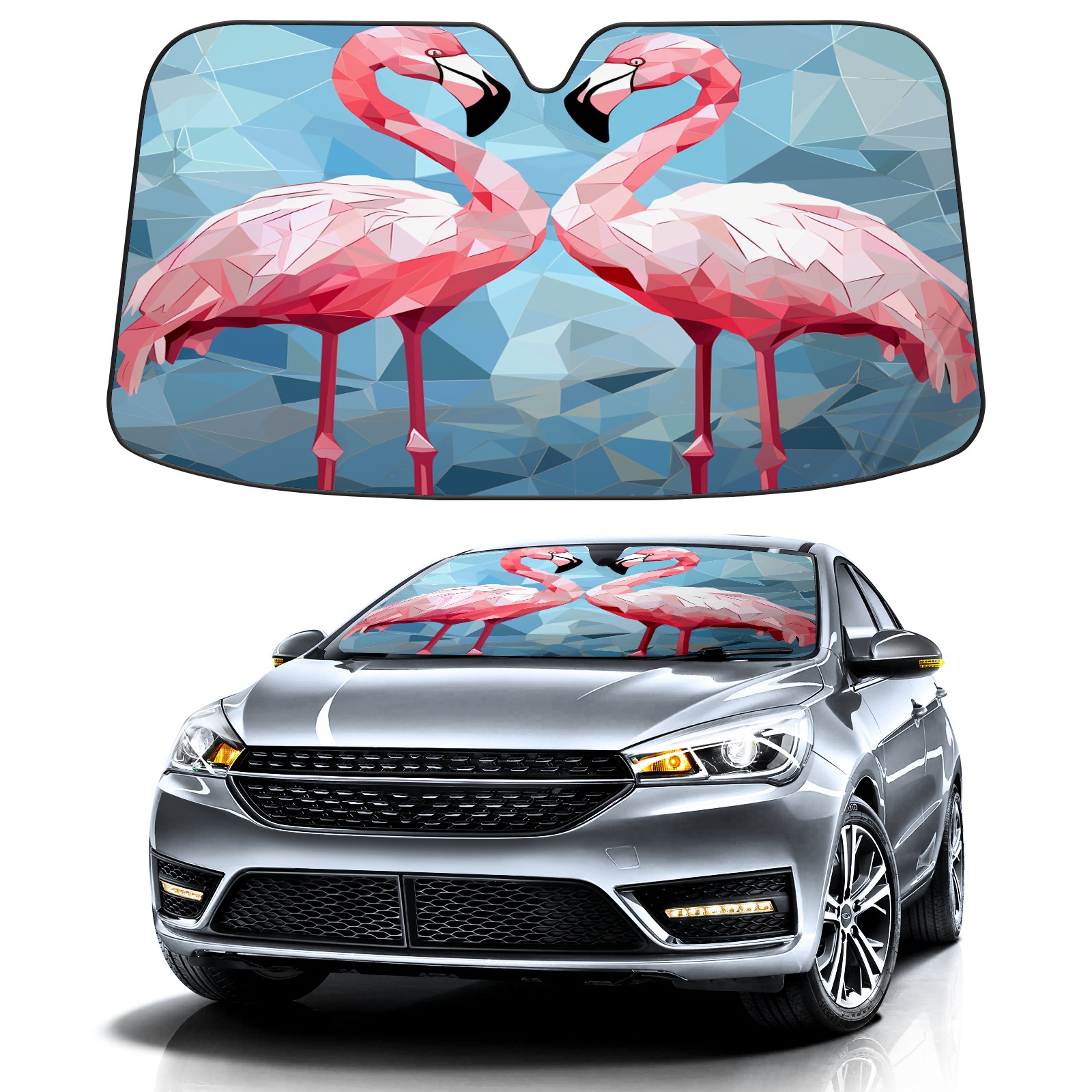 Car Windshield Sun Shade for Front Window Stained Glass Flamingo (3) Foldable Vehicle Windshield Car Sun Visor Covers Automotive Window Protector Car Camping Privacy Sun Blocker