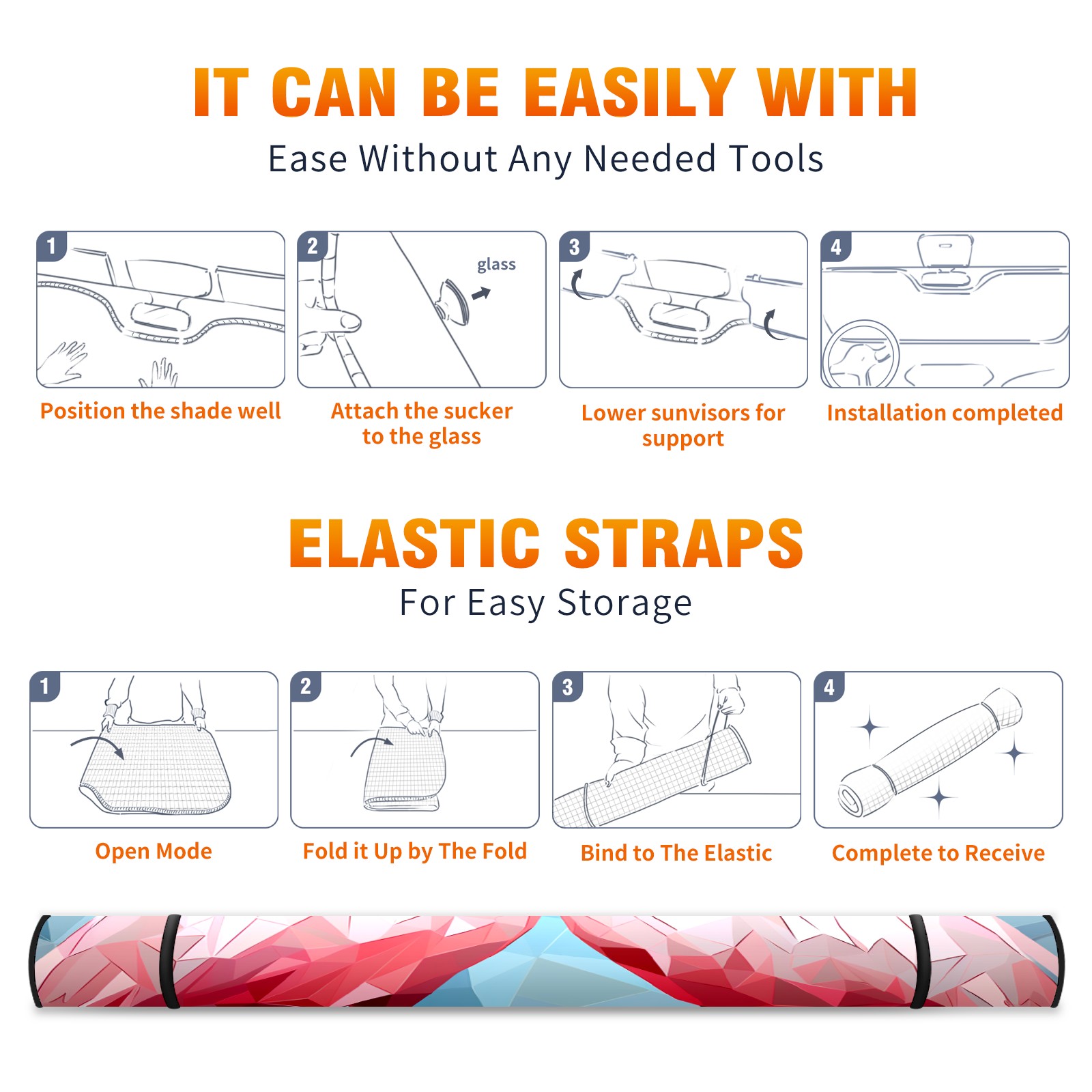 • Diameter /Size 63"L x 33.5"W Made from excellent materials which makes it sturdy and protects the car from the sun. Easy to use and pack. Makes the interior of the car cooler.You can easily stash the sunshade in the storage bag or store long term.It open and closes easy. Also the leather storage bag is durable and easy to put the umbrella back into.This windshield sunshade provides complete coverage and keeps your car interior cool under direct sun. It is easy to open and position under the windshield and around the rear-view mirror. Makes Your Car Easy To Identify, Perfect For Finding Your Car In Crowded Parking Lots And Garages.Great Choice: It Is A Great Gift For Dad, Boyfriend, Brother, Brother And Uncle, Friends, Classmates, Family And So On. Notice: Due To Difference Computer Monitors, The Color Maybe Slightly Different From Picture. As Different Measurement Methods, Measurement Data Will Float Within 2%.I Hope You Understand. If You Have Any Question About The Item Please Do Not Hesitate To Contact Us Immediately And We Will Give You A Satisfactory Reply Within 24 Hours.