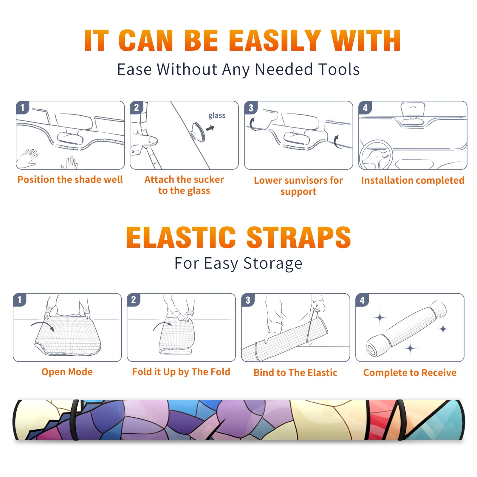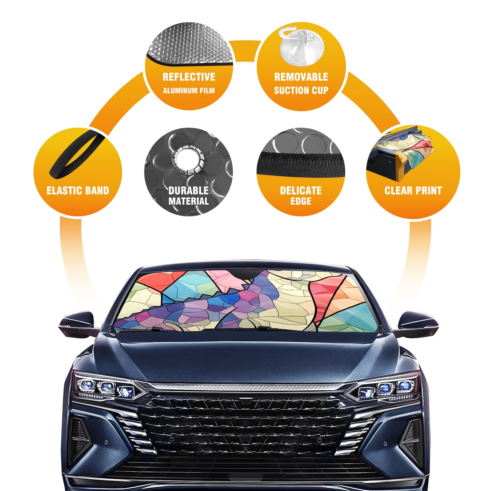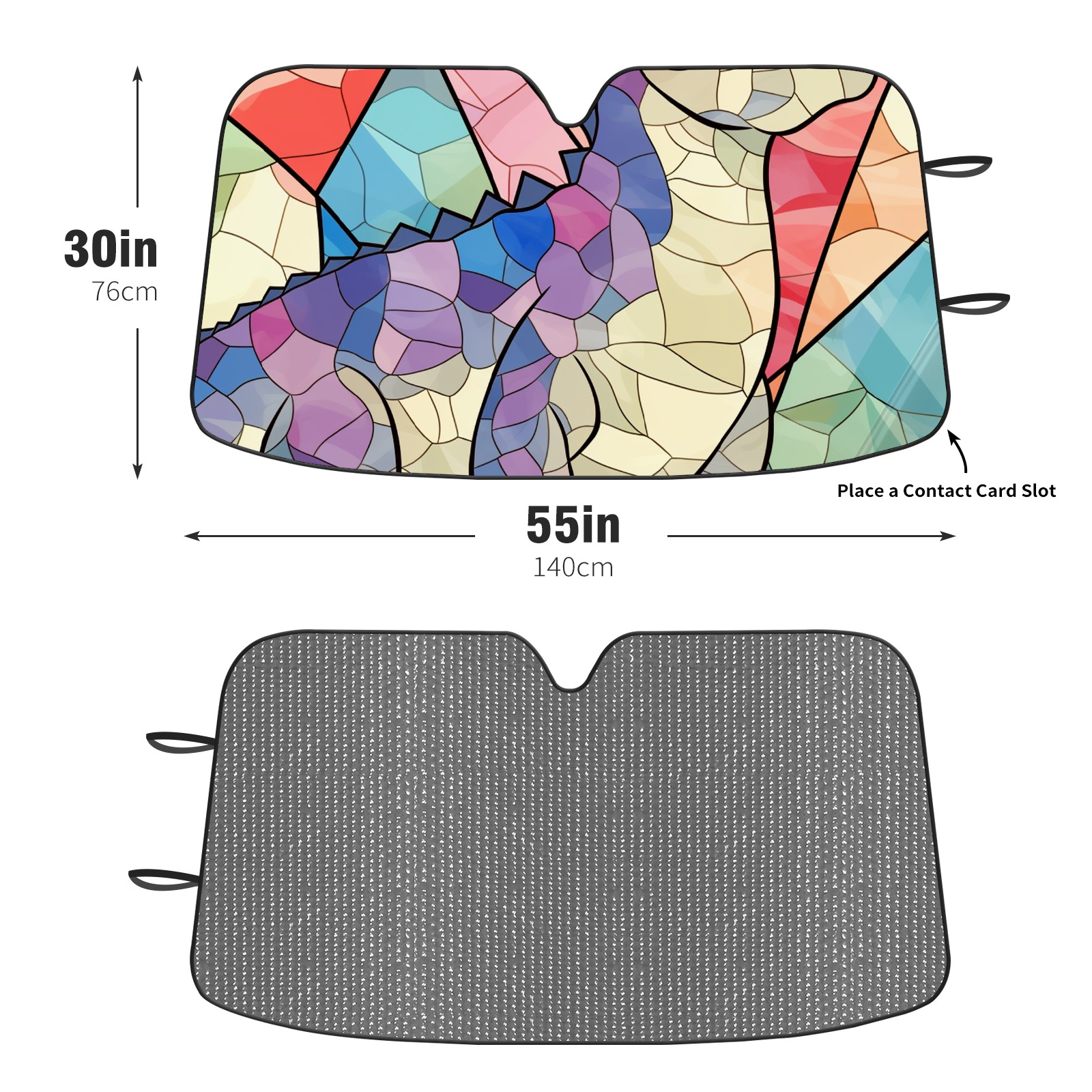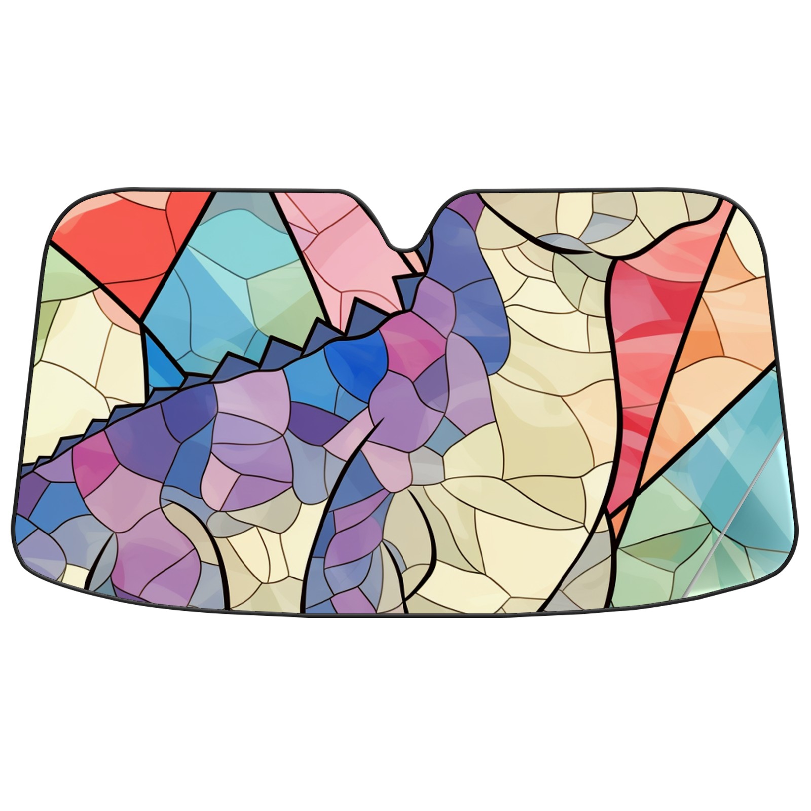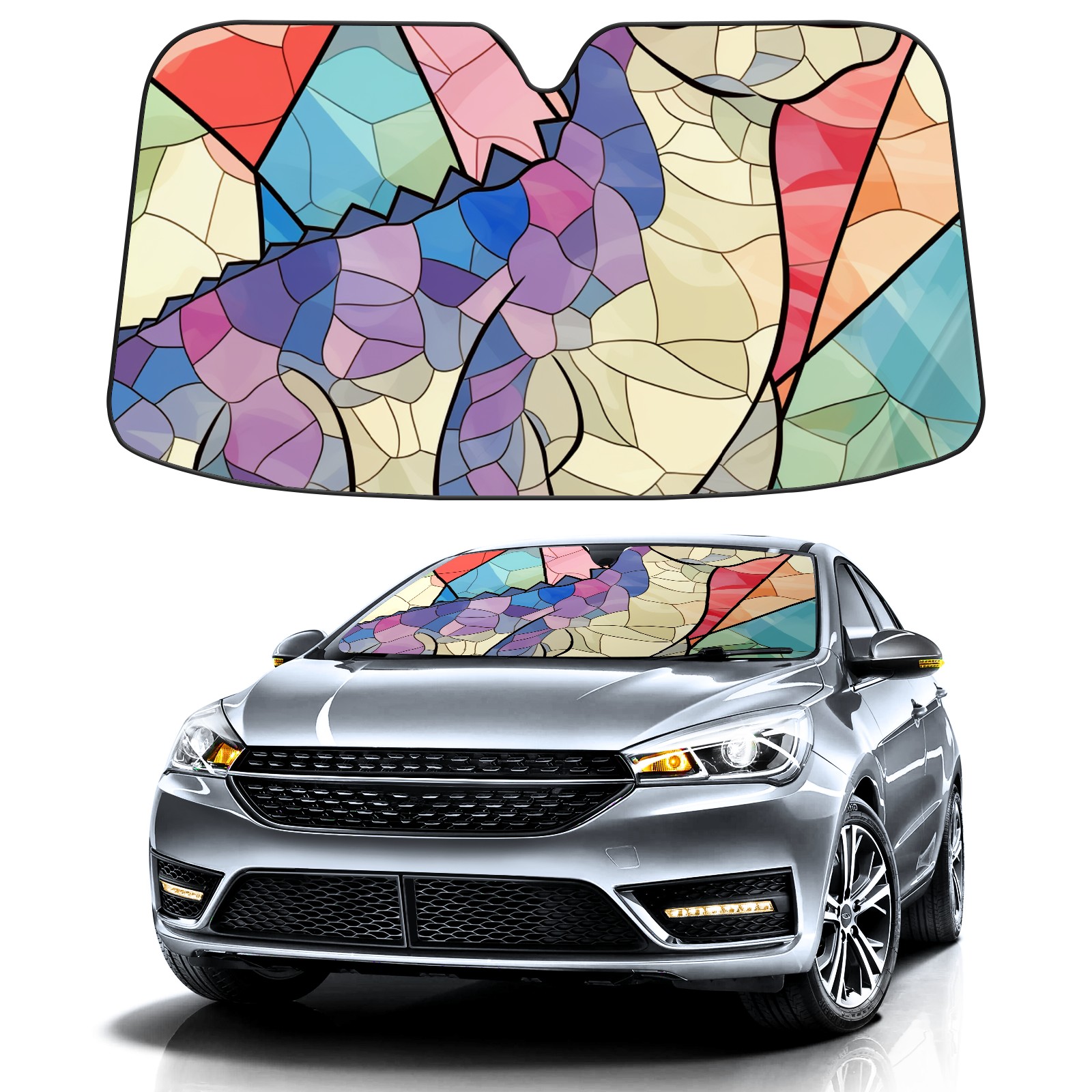 Car Windshield Sun Shade for Front Window Stained Glass Dinosaur (2) Foldable Vehicle Windshield Car Sun Visor Covers Automotive Window Protector Car Camping Privacy Sun Blocker