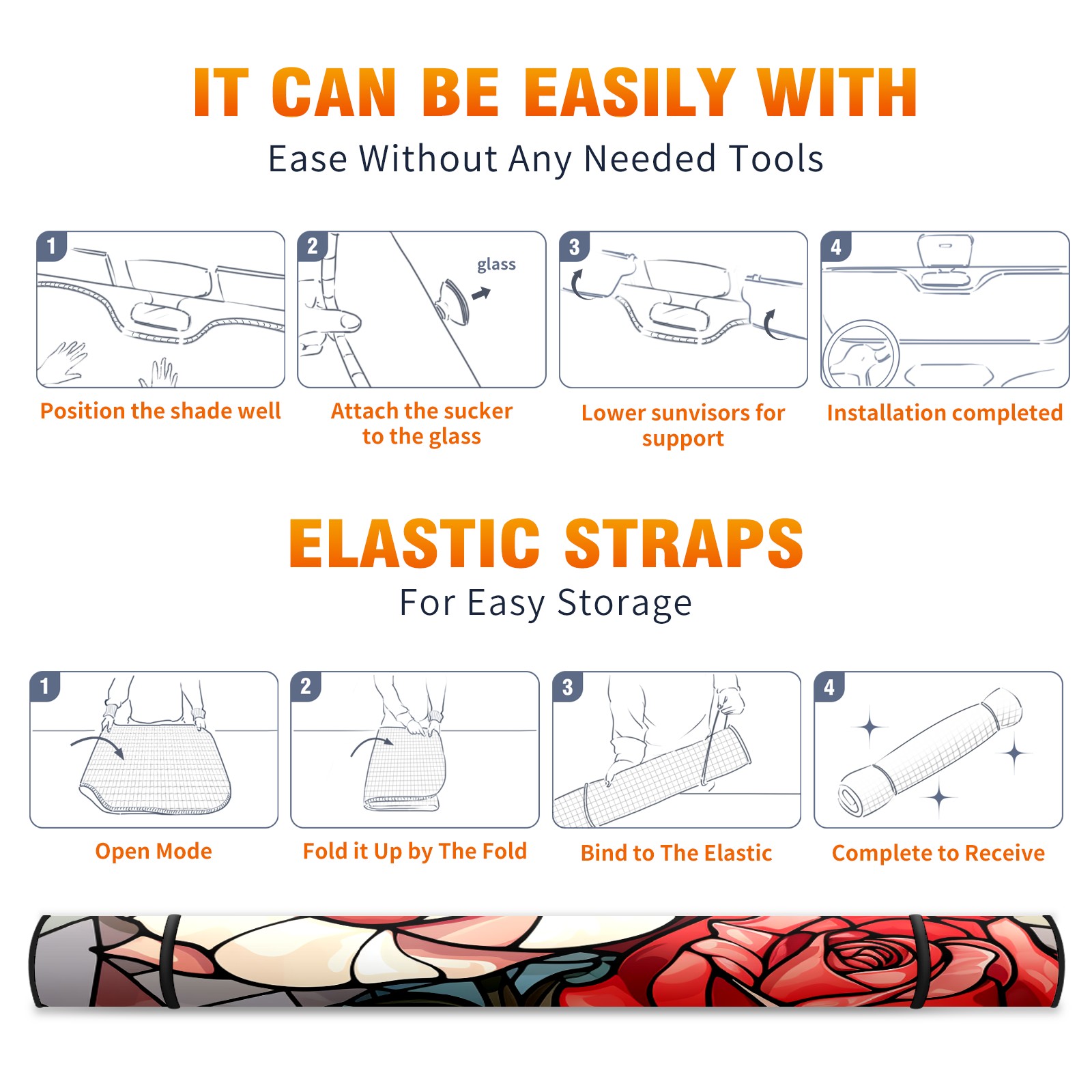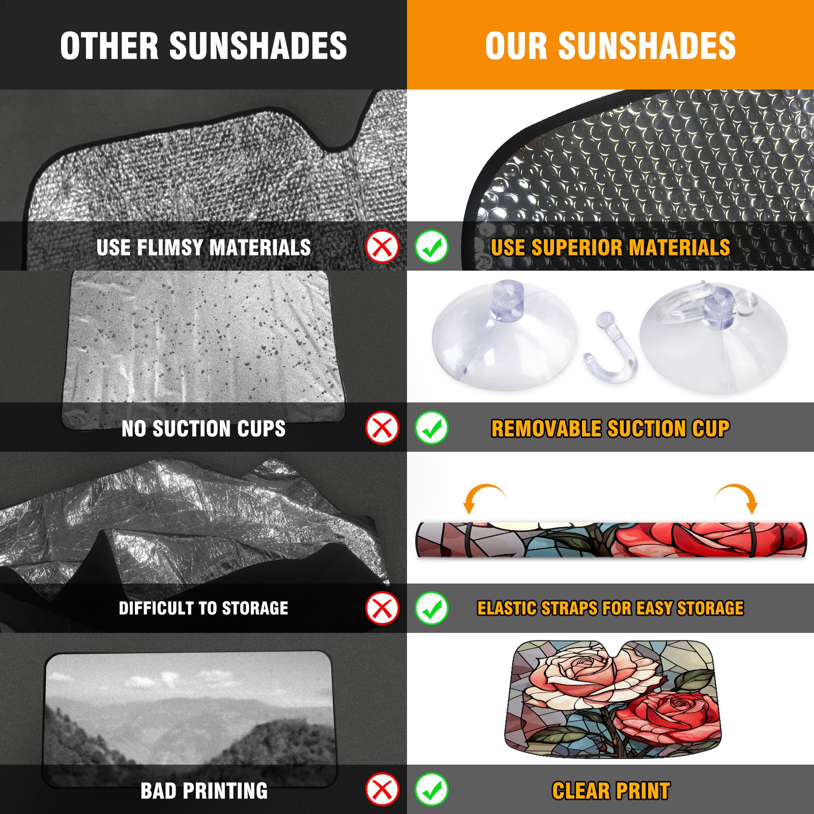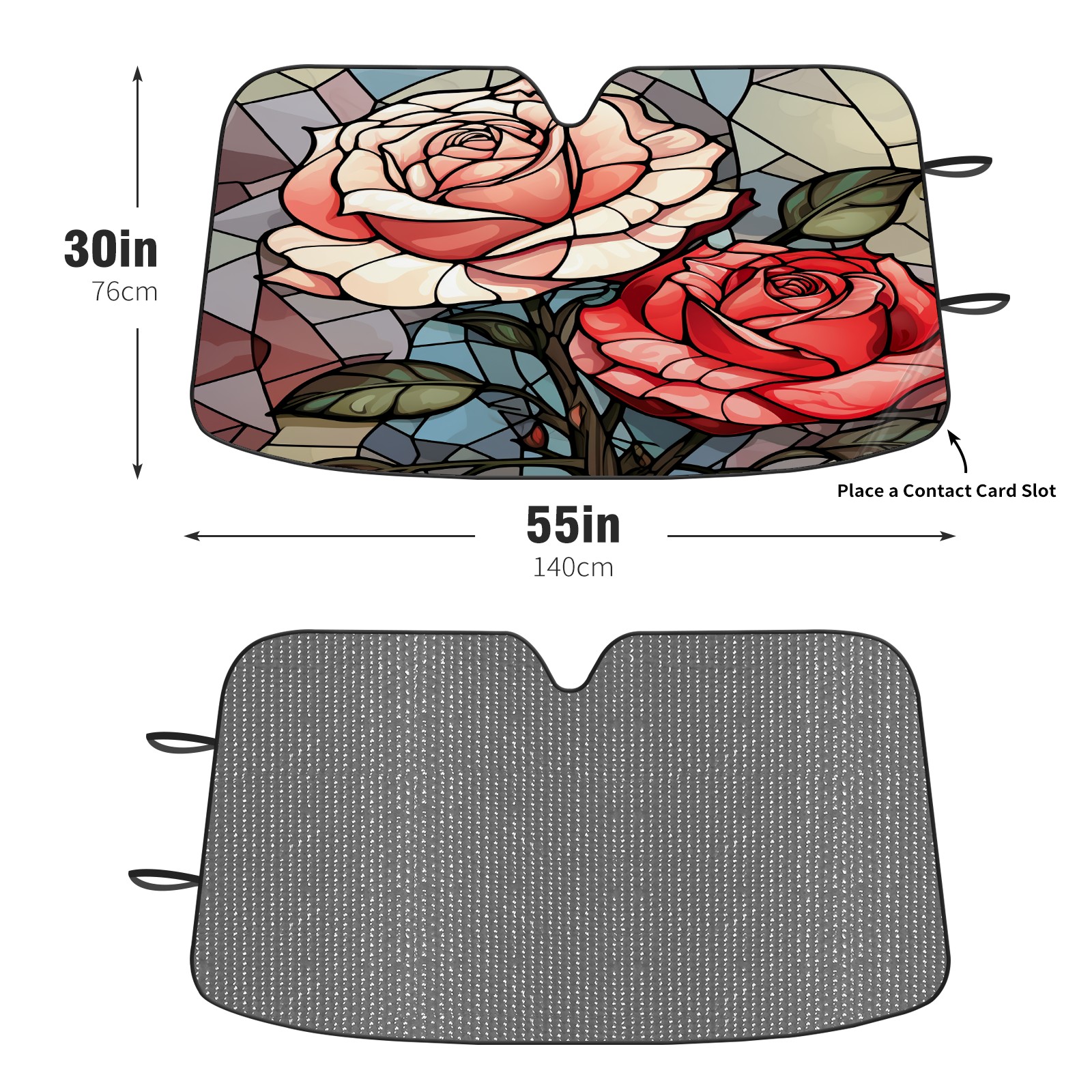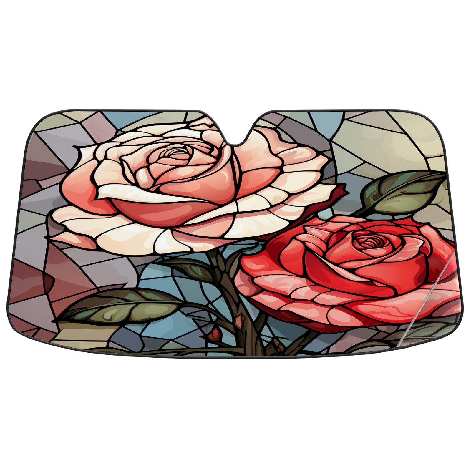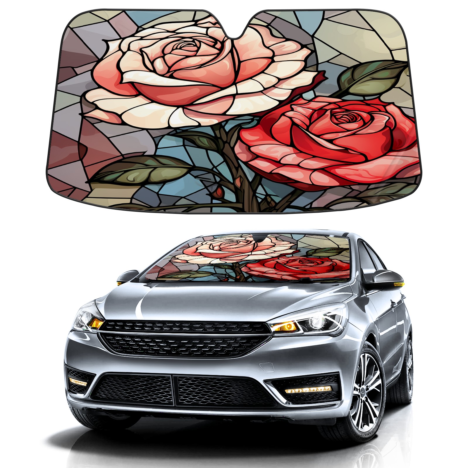 Car Windshield Sun Shade for Front Window Stained Glass Rose (2) Foldable Vehicle Windshield Car Sun Visor Covers Automotive Window Protector Car Camping Privacy Sun Blocker