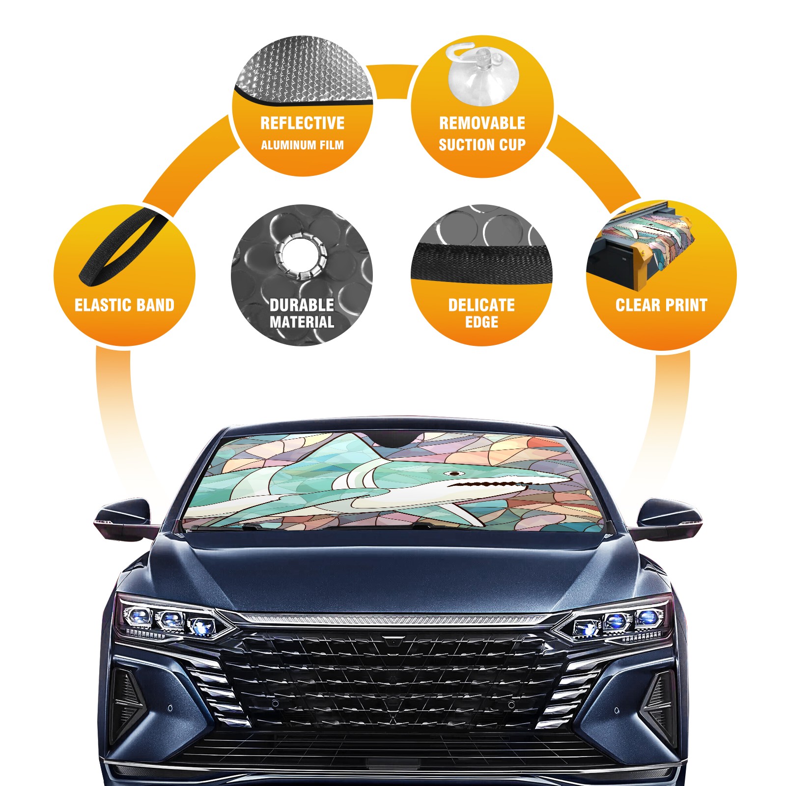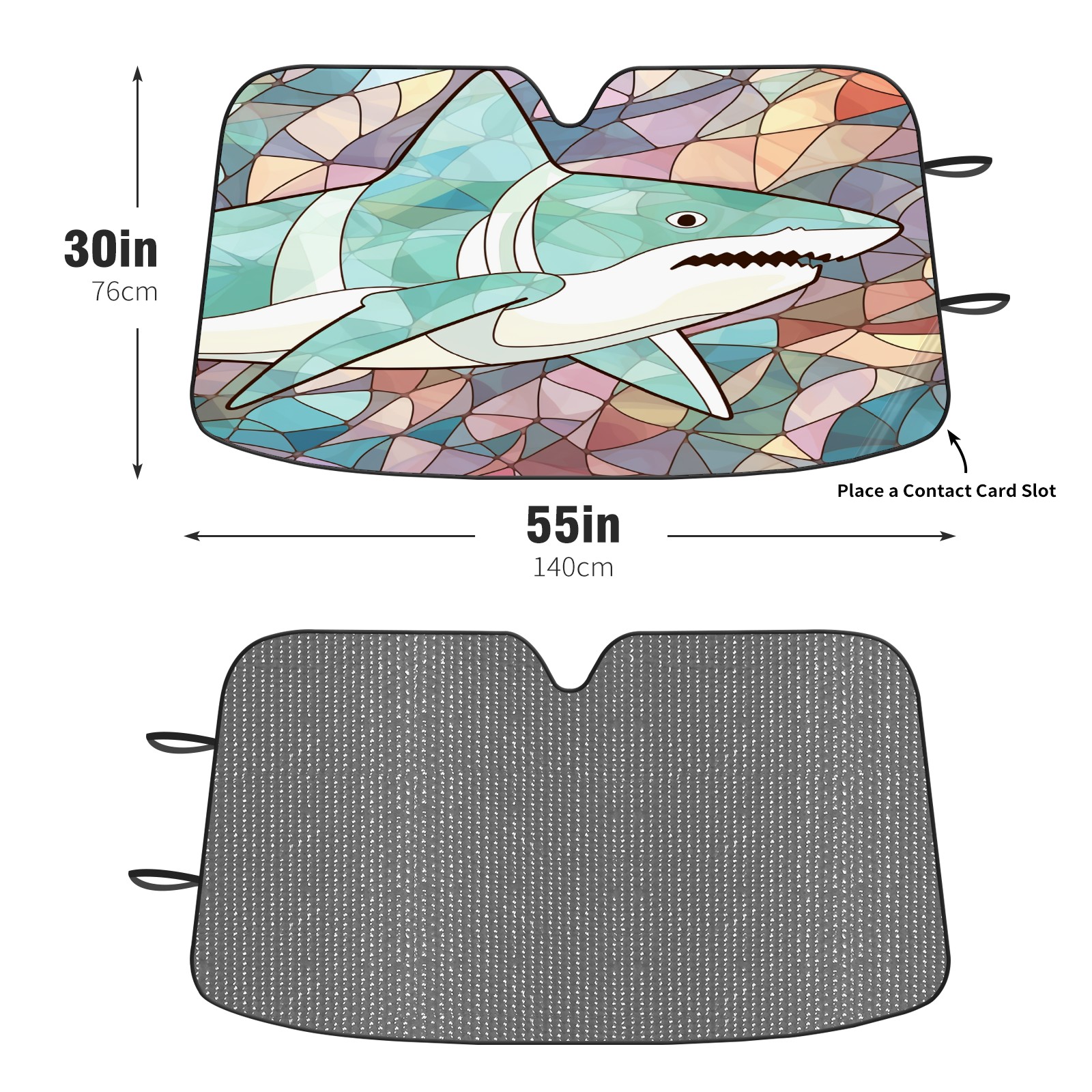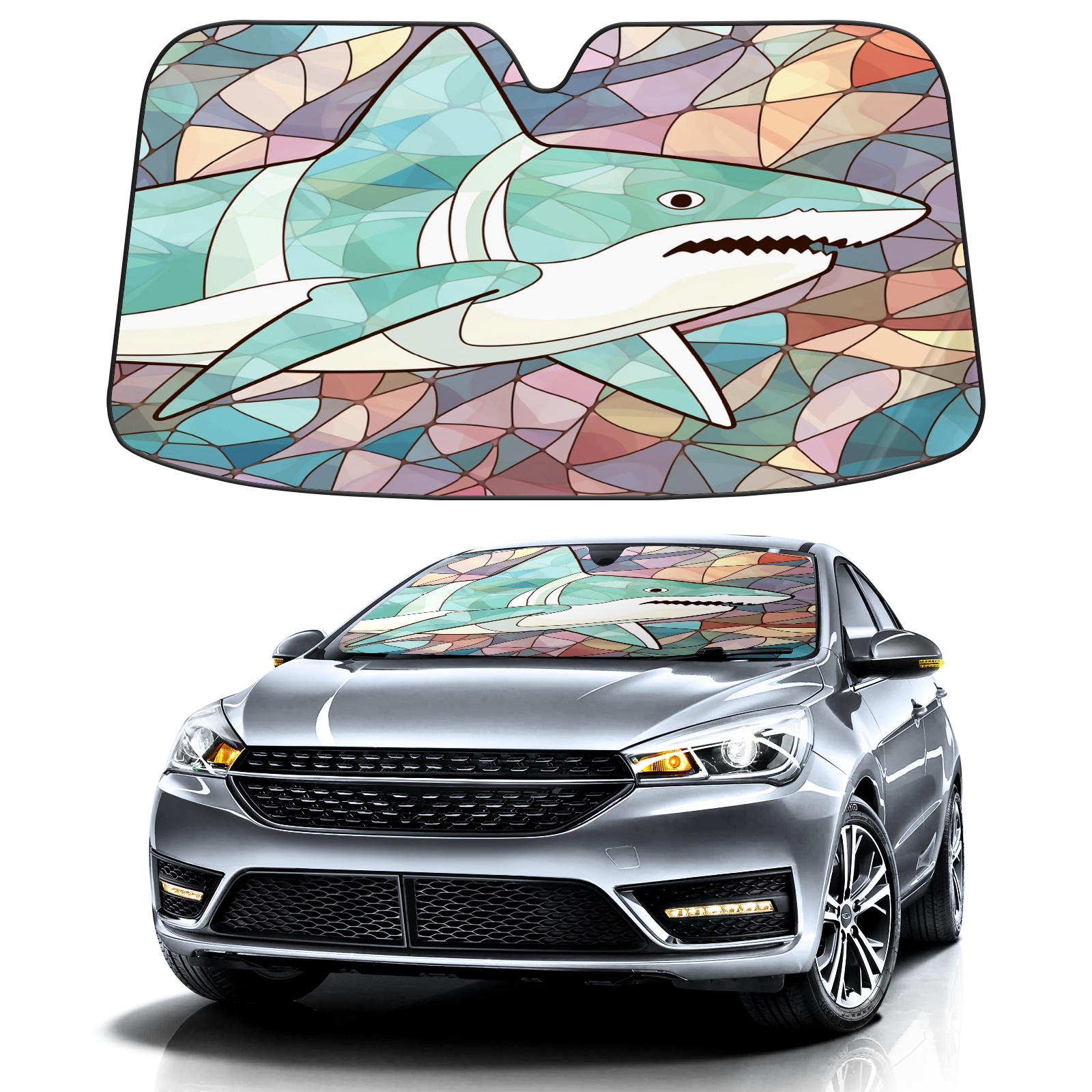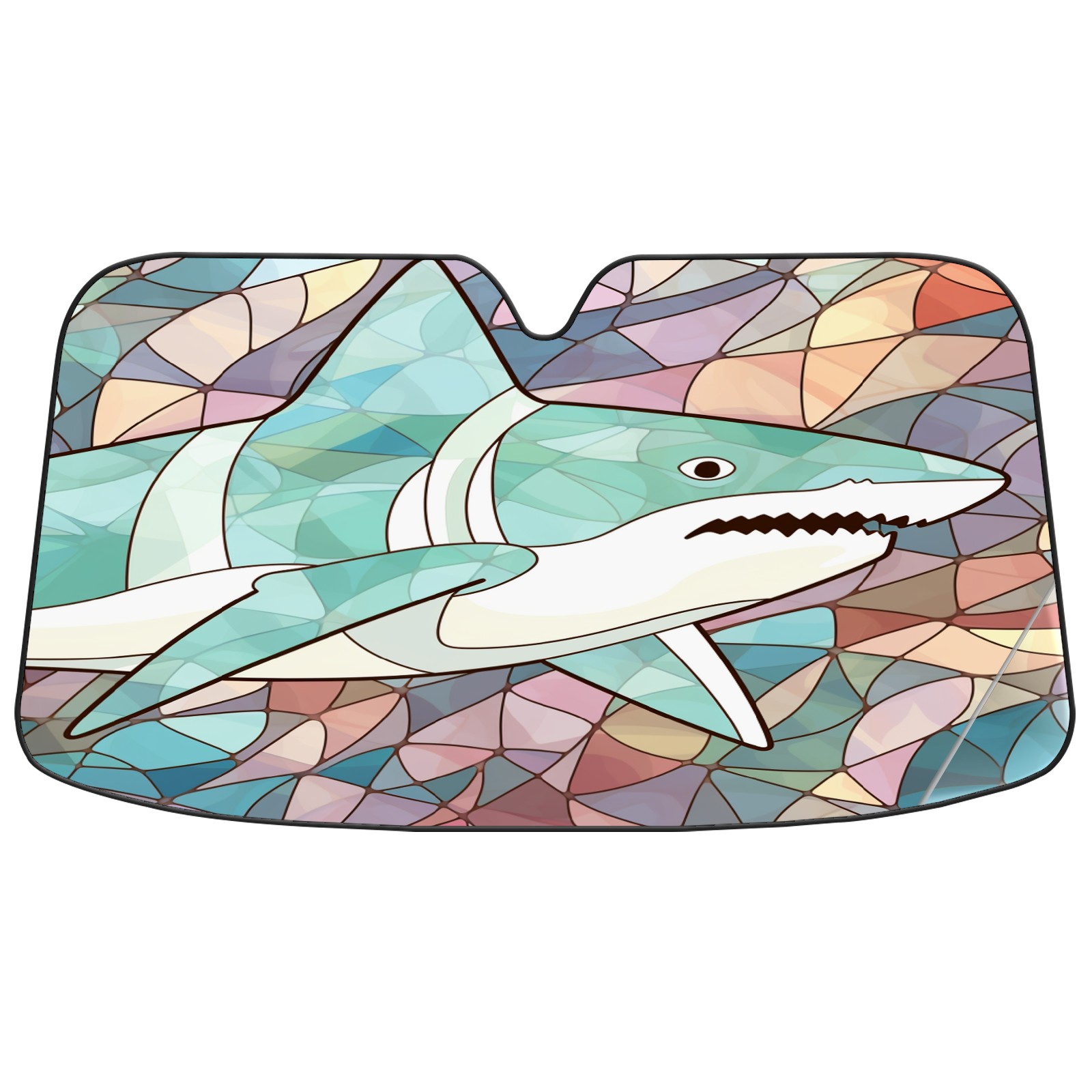 Car Windshield Sun Shade for Front Window Stained Glass Shark (2) Foldable Vehicle Windshield Car Sun Visor Covers Automotive Window Protector Car Camping Privacy Sun Blocker