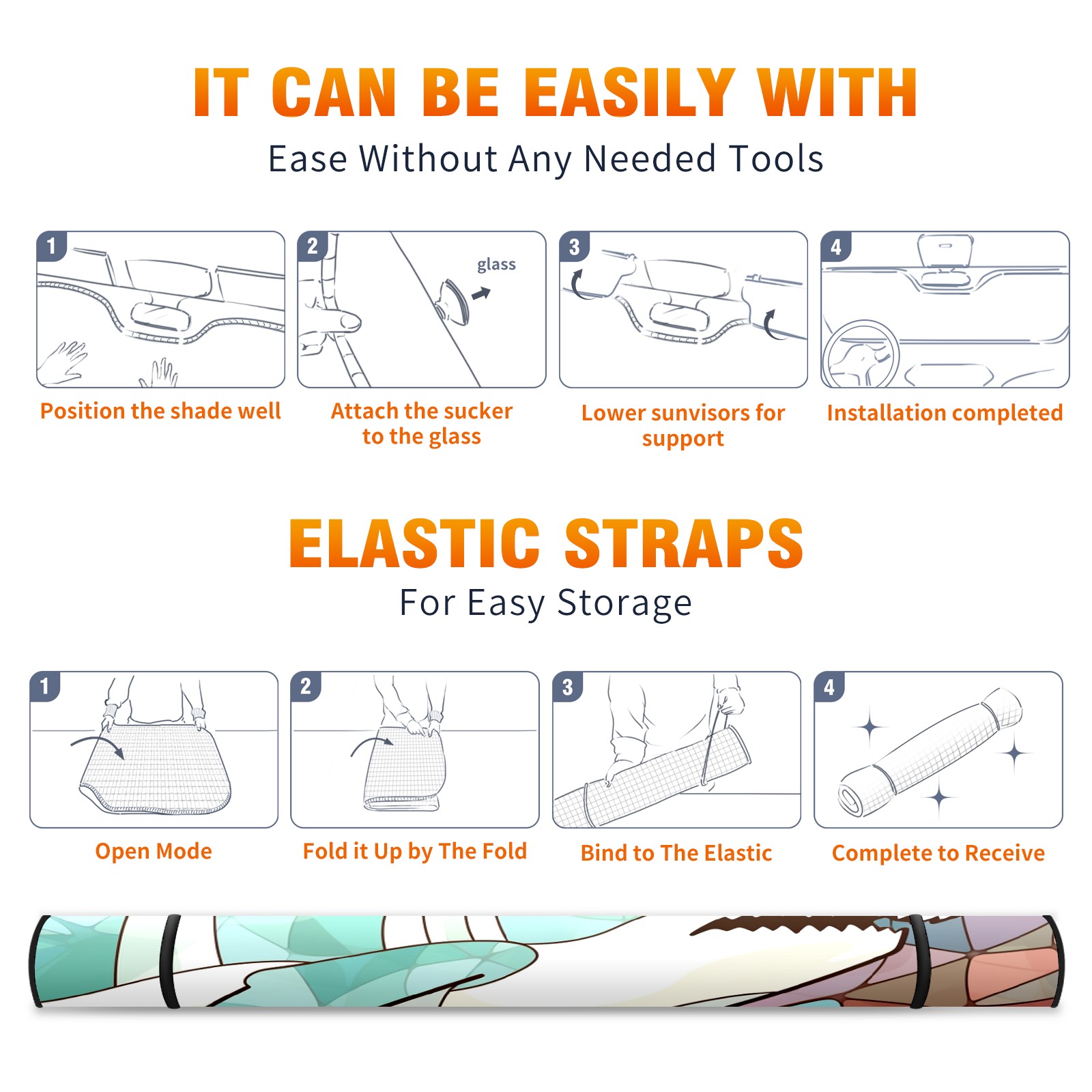 • Diameter /Size 63"L x 33.5"W Made from excellent materials which makes it sturdy and protects the car from the sun. Easy to use and pack. Makes the interior of the car cooler.You can easily stash the sunshade in the storage bag or store long term.It open and closes easy. Also the leather storage bag is durable and easy to put the umbrella back into.This windshield sunshade provides complete coverage and keeps your car interior cool under direct sun. It is easy to open and position under the windshield and around the rear-view mirror. Makes Your Car Easy To Identify, Perfect For Finding Your Car In Crowded Parking Lots And Garages.Great Choice: It Is A Great Gift For Dad, Boyfriend, Brother, Brother And Uncle, Friends, Classmates, Family And So On. Notice: Due To Difference Computer Monitors, The Color Maybe Slightly Different From Picture. As Different Measurement Methods, Measurement Data Will Float Within 2%.I Hope You Understand. If You Have Any Question About The Item Please Do Not Hesitate To Contact Us Immediately And We Will Give You A Satisfactory Reply Within 24 Hours.