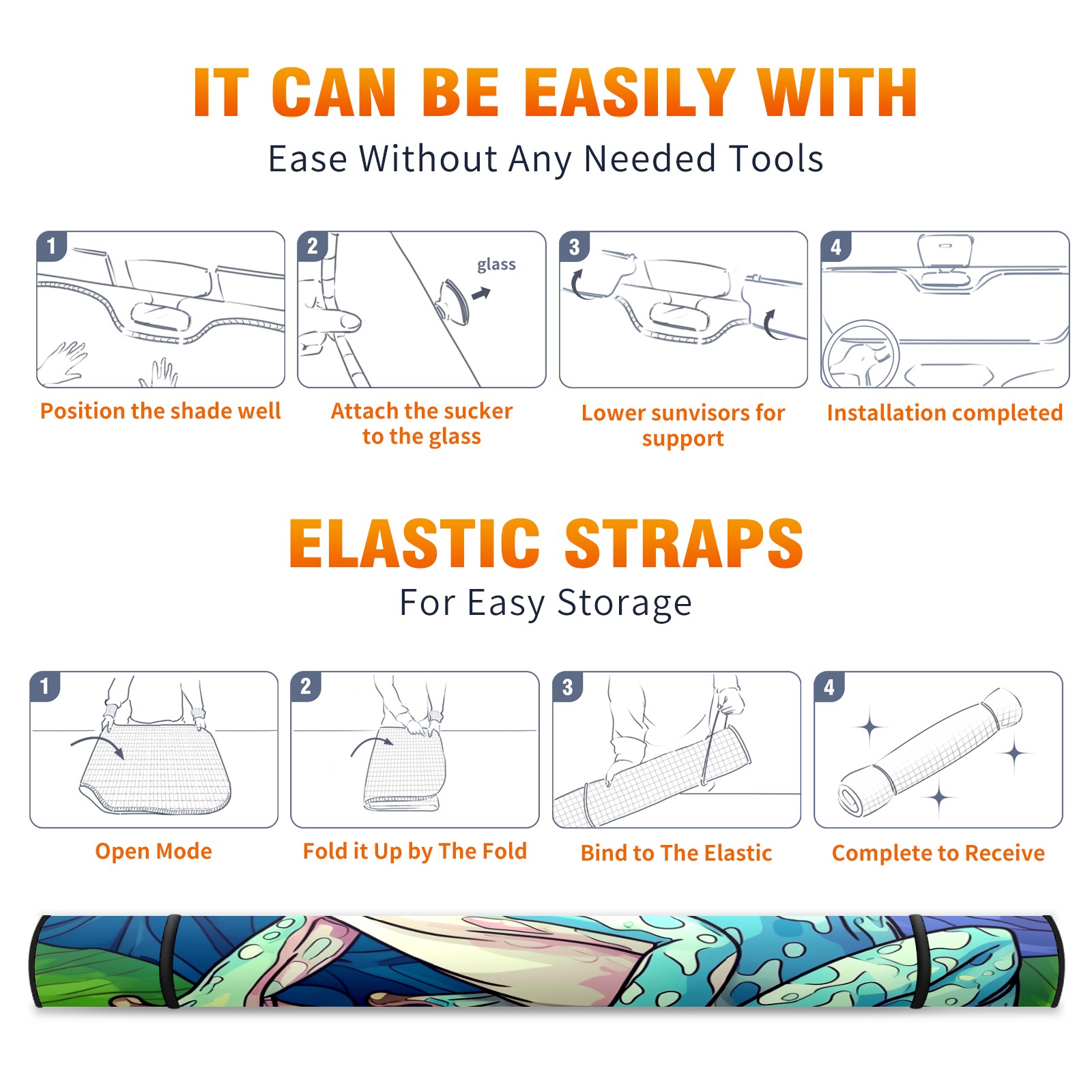 • Diameter /Size 63"L x 33.5"W Made from excellent materials which makes it sturdy and protects the car from the sun. Easy to use and pack. Makes the interior of the car cooler.You can easily stash the sunshade in the storage bag or store long term.It open and closes easy. Also the leather storage bag is durable and easy to put the umbrella back into.This windshield sunshade provides complete coverage and keeps your car interior cool under direct sun. It is easy to open and position under the windshield and around the rear-view mirror. Makes Your Car Easy To Identify, Perfect For Finding Your Car In Crowded Parking Lots And Garages.Great Choice: It Is A Great Gift For Dad, Boyfriend, Brother, Brother And Uncle, Friends, Classmates, Family And So On. Notice: Due To Difference Computer Monitors, The Color Maybe Slightly Different From Picture. As Different Measurement Methods, Measurement Data Will Float Within 2%.I Hope You Understand. If You Have Any Question About The Item Please Do Not Hesitate To Contact Us Immediately And We Will Give You A Satisfactory Reply Within 24 Hours.