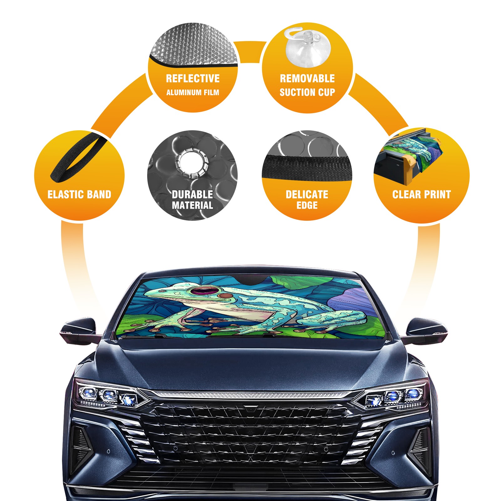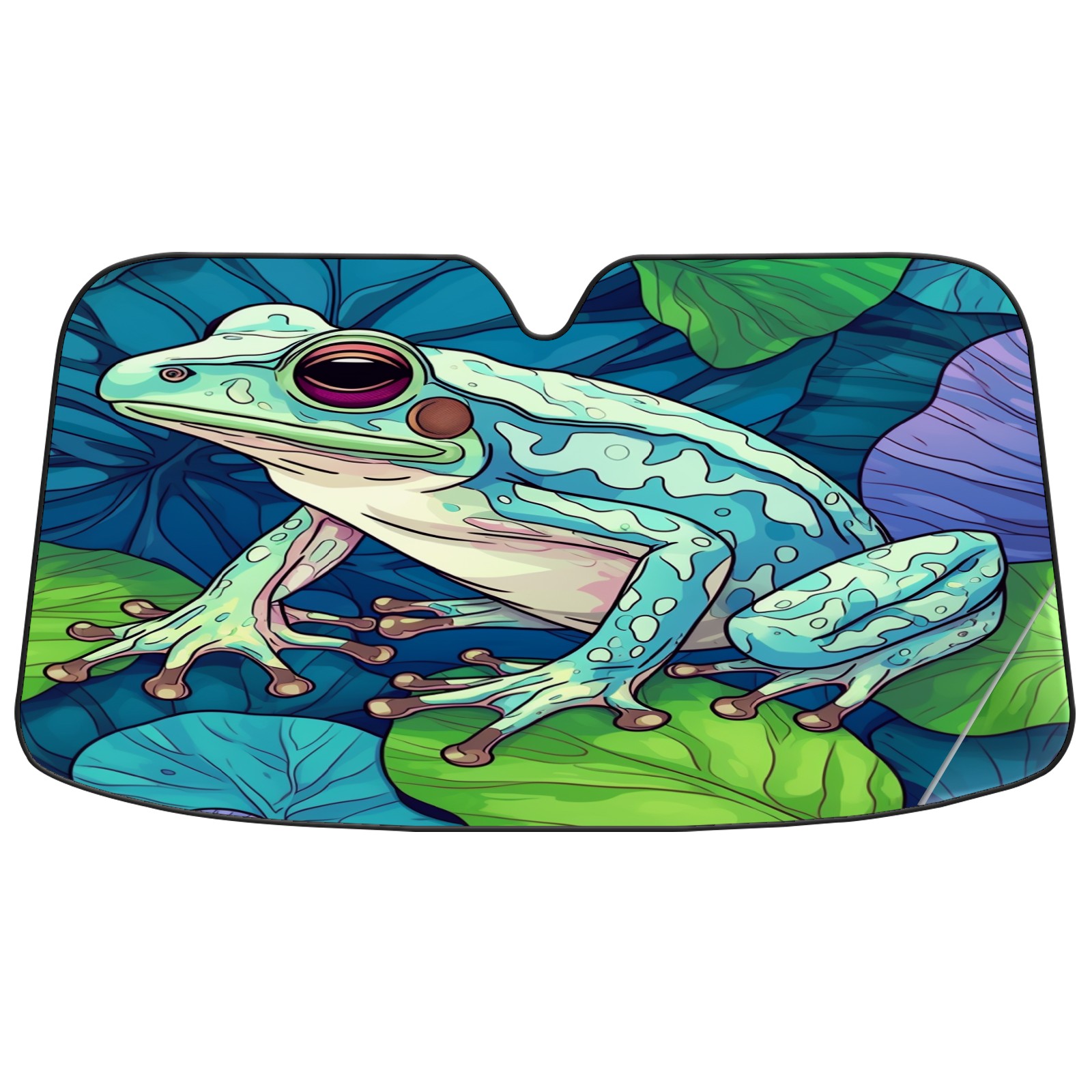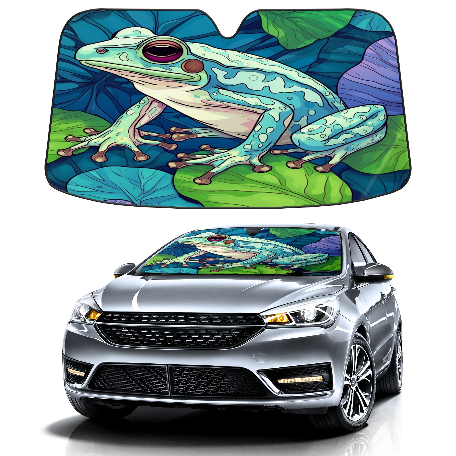 Car Windshield Sun Shade for Front Window Stained Glass Frog (4) Foldable Vehicle Windshield Car Sun Visor Covers Automotive Window Protector Car Camping Privacy Sun Blocker