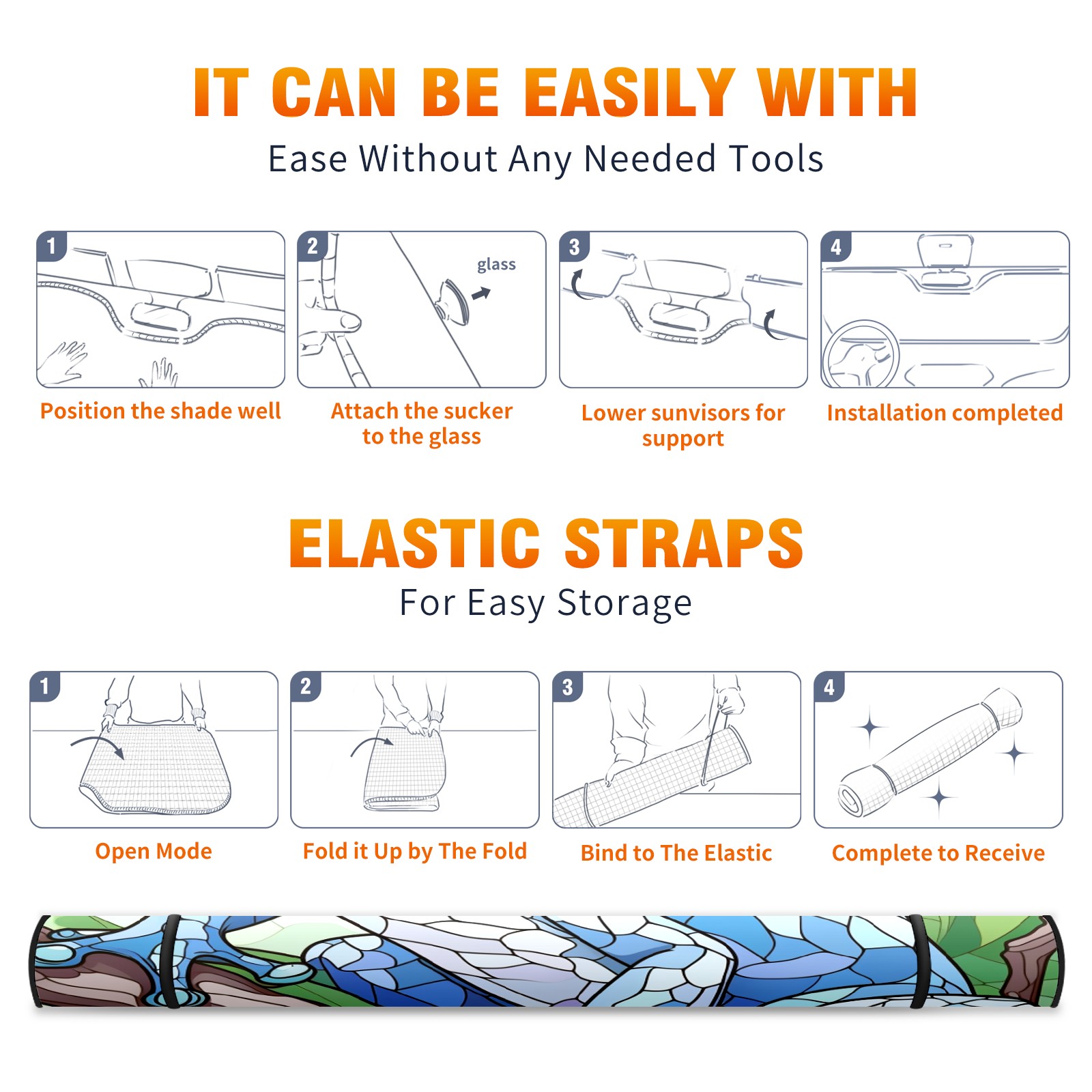 • Diameter /Size 63"L x 33.5"W Made from excellent materials which makes it sturdy and protects the car from the sun. Easy to use and pack. Makes the interior of the car cooler.You can easily stash the sunshade in the storage bag or store long term.It open and closes easy. Also the leather storage bag is durable and easy to put the umbrella back into.This windshield sunshade provides complete coverage and keeps your car interior cool under direct sun. It is easy to open and position under the windshield and around the rear-view mirror. Makes Your Car Easy To Identify, Perfect For Finding Your Car In Crowded Parking Lots And Garages.Great Choice: It Is A Great Gift For Dad, Boyfriend, Brother, Brother And Uncle, Friends, Classmates, Family And So On. Notice: Due To Difference Computer Monitors, The Color Maybe Slightly Different From Picture. As Different Measurement Methods, Measurement Data Will Float Within 2%.I Hope You Understand. If You Have Any Question About The Item Please Do Not Hesitate To Contact Us Immediately And We Will Give You A Satisfactory Reply Within 24 Hours.
