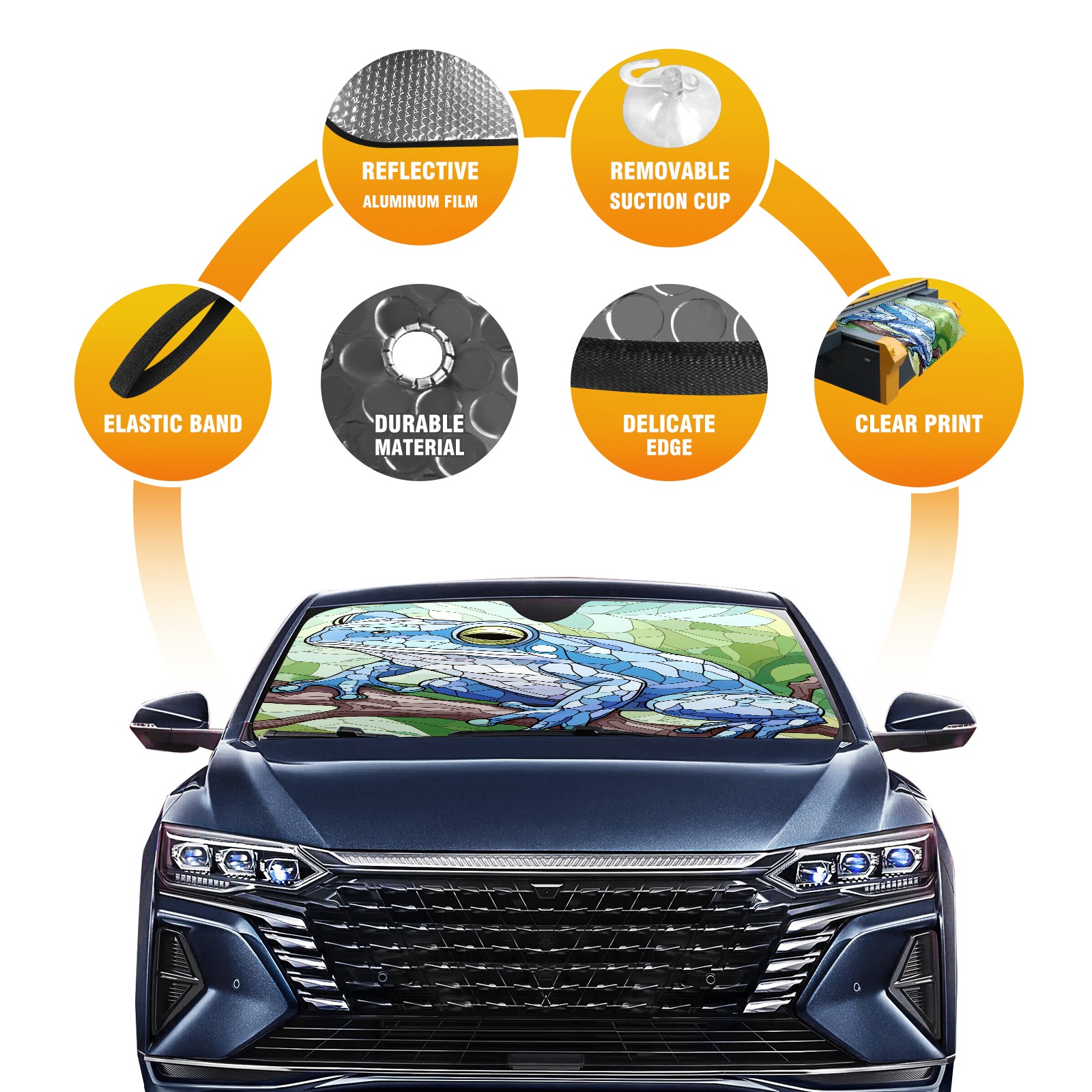 Car Windshield Sun Shade for Front Window Stained Glass Frog (3) Foldable Vehicle Windshield Car Sun Visor Covers Automotive Window Protector Car Camping Privacy Sun Blocker