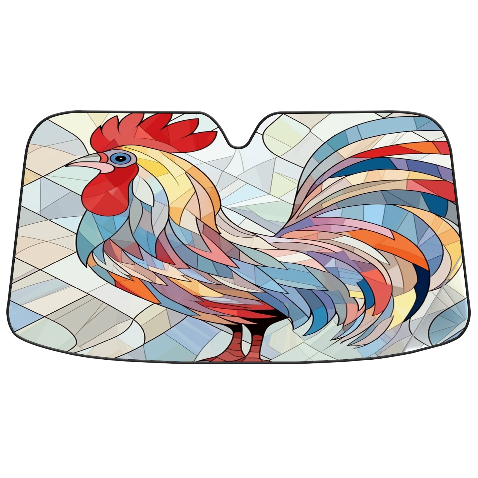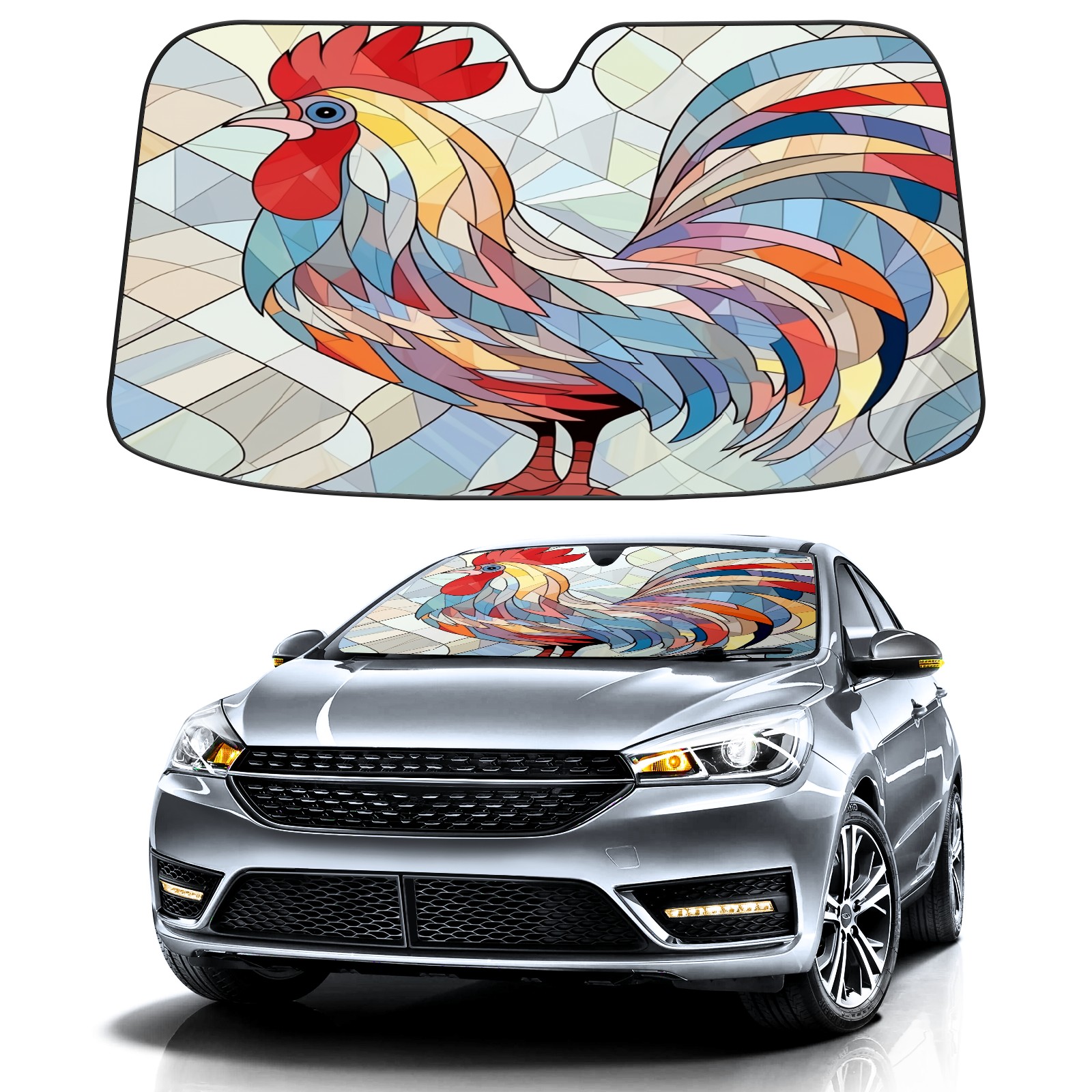 Car Windshield Sun Shade for Front Window Stained Glass Rooster (1) Foldable Vehicle Windshield Car Sun Visor Covers Automotive Window Protector Car Camping Privacy Sun Blocker