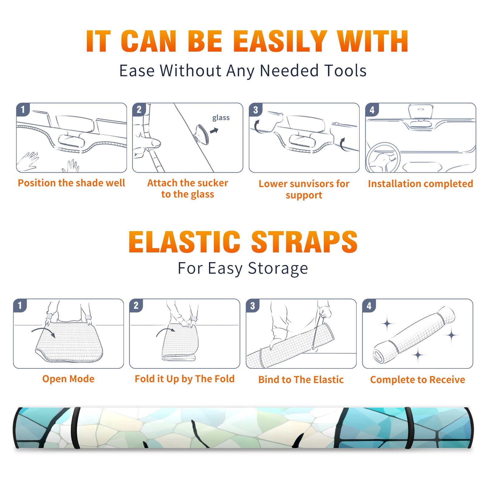 • Diameter /Size 63"L x 33.5"W Made from excellent materials which makes it sturdy and protects the car from the sun. Easy to use and pack. Makes the interior of the car cooler.You can easily stash the sunshade in the storage bag or store long term.It open and closes easy. Also the leather storage bag is durable and easy to put the umbrella back into.This windshield sunshade provides complete coverage and keeps your car interior cool under direct sun. It is easy to open and position under the windshield and around the rear-view mirror. Makes Your Car Easy To Identify, Perfect For Finding Your Car In Crowded Parking Lots And Garages.Great Choice: It Is A Great Gift For Dad, Boyfriend, Brother, Brother And Uncle, Friends, Classmates, Family And So On. Notice: Due To Difference Computer Monitors, The Color Maybe Slightly Different From Picture. As Different Measurement Methods, Measurement Data Will Float Within 2%.I Hope You Understand. If You Have Any Question About The Item Please Do Not Hesitate To Contact Us Immediately And We Will Give You A Satisfactory Reply Within 24 Hours.