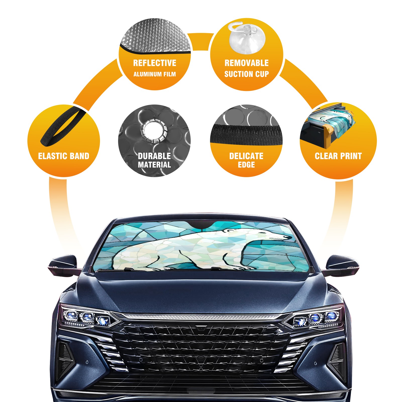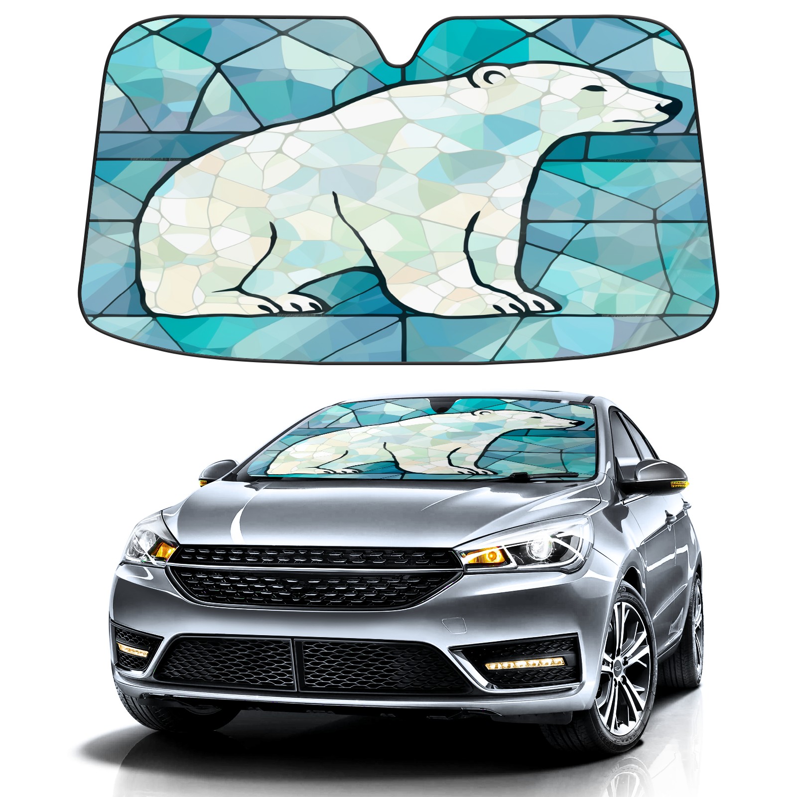 Car Windshield Sun Shade for Front Window Stained Glass Bear (2) Foldable Vehicle Windshield Car Sun Visor Covers Automotive Window Protector Car Camping Privacy Sun Blocker