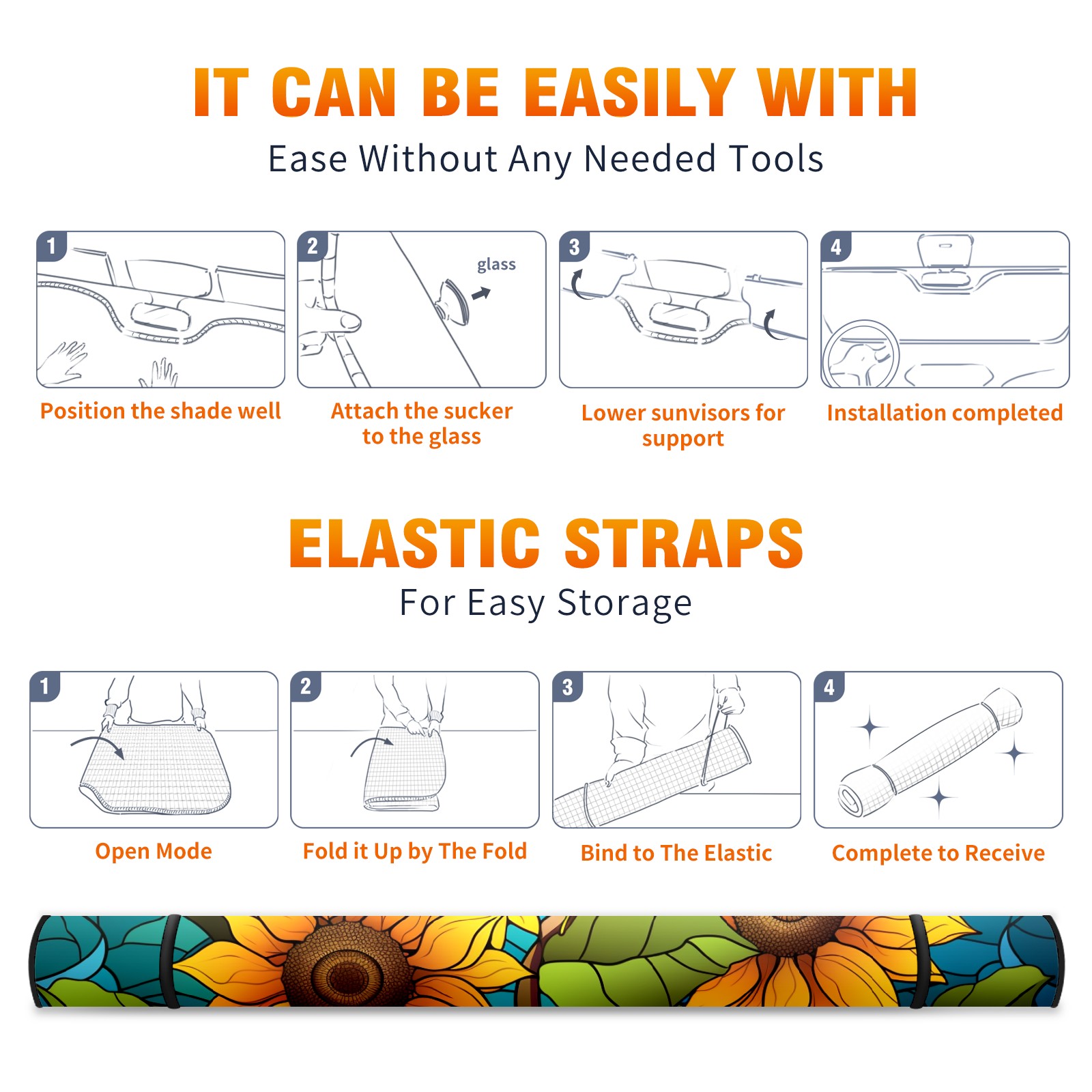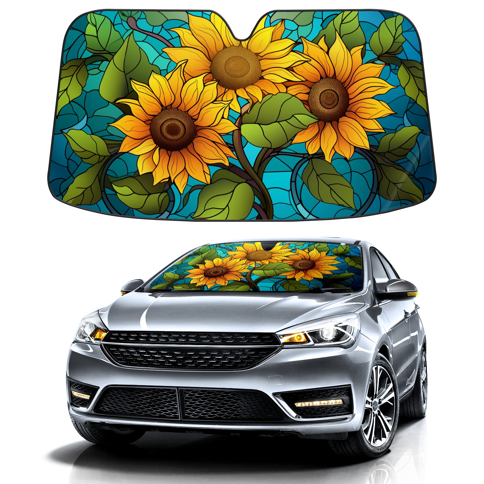 Car Windshield Sun Shade for Front Window Yellow Sunflowers Foldable Vehicle Windshield Car Sun Visor Covers Automotive Window Protector Car Camping Privacy Sun Blocker