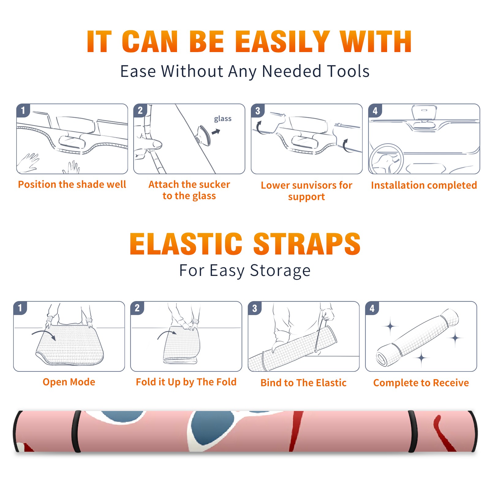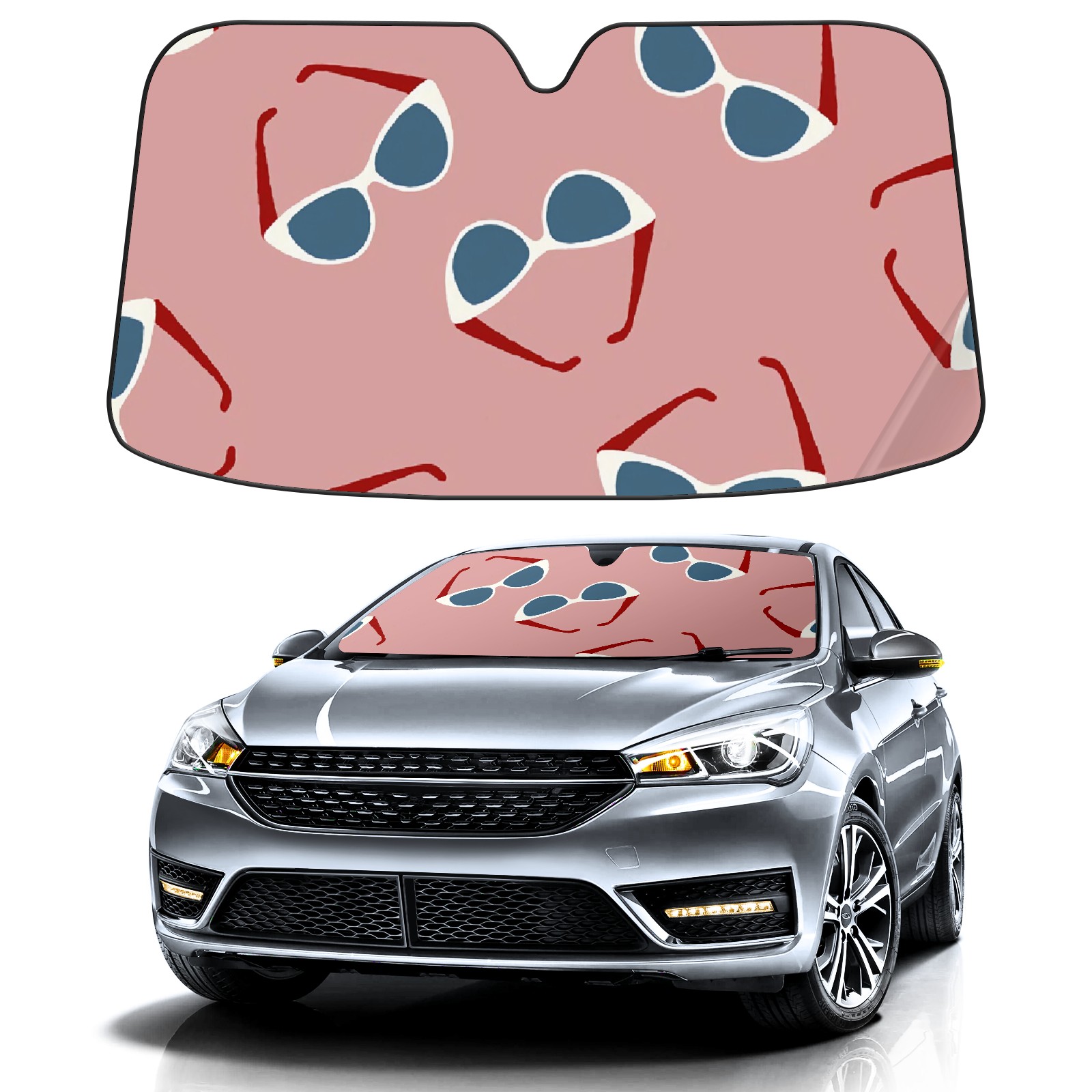 Car Windshield Sun Shade for Front Window Pink Glasses Foldable Vehicle Windshield Car Sun Visor Covers Automotive Window Protector Car Camping Privacy Sun Blocker