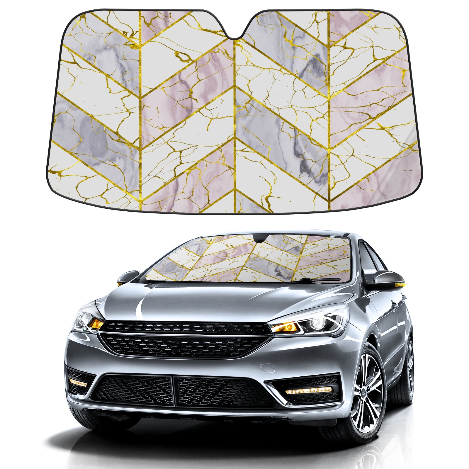 Car Windshield Sun Shade for Front Window Colorful Stained Glass Foldable Vehicle Windshield Car Sun Visor Covers Automotive Window Protector Car Camping Privacy Sun Blocker