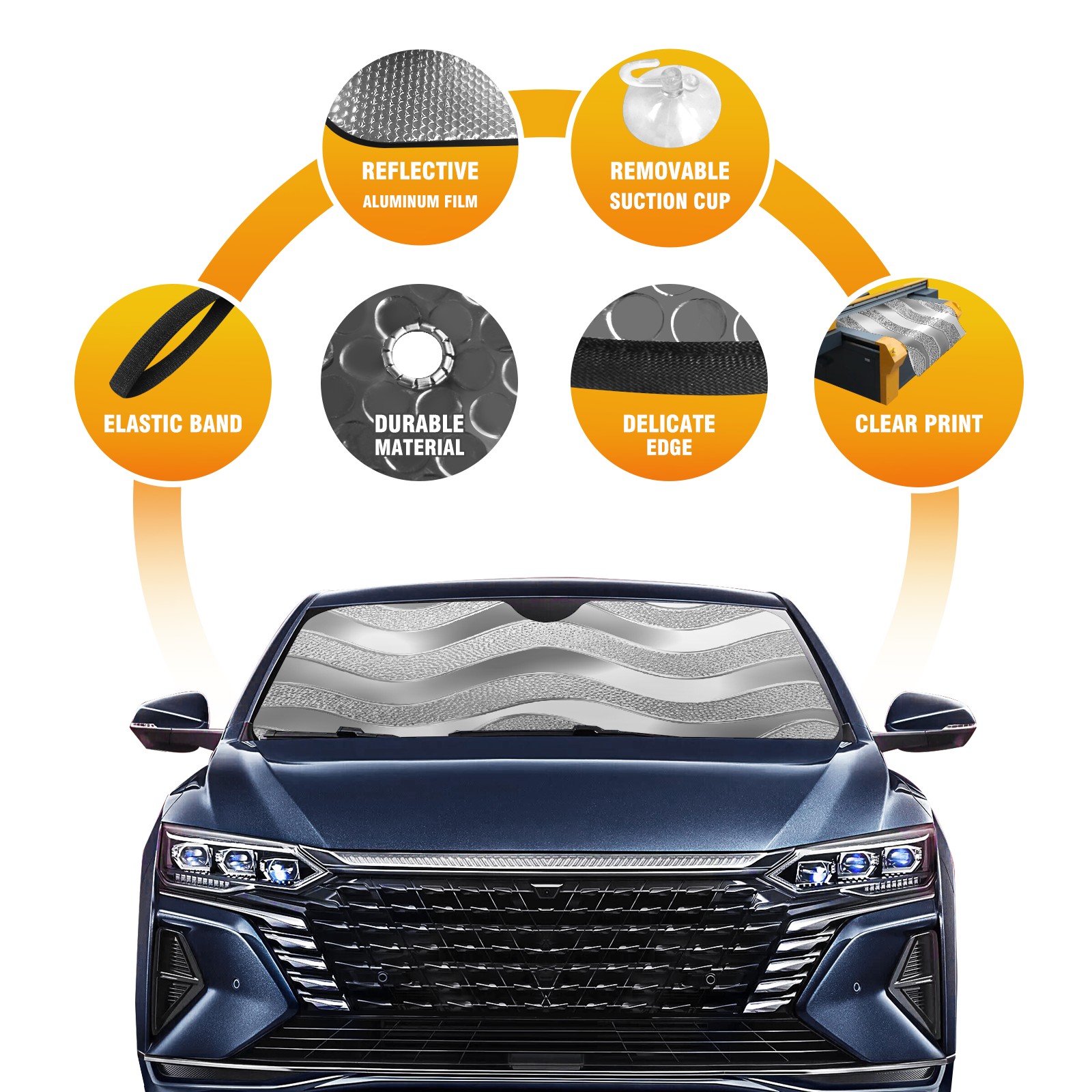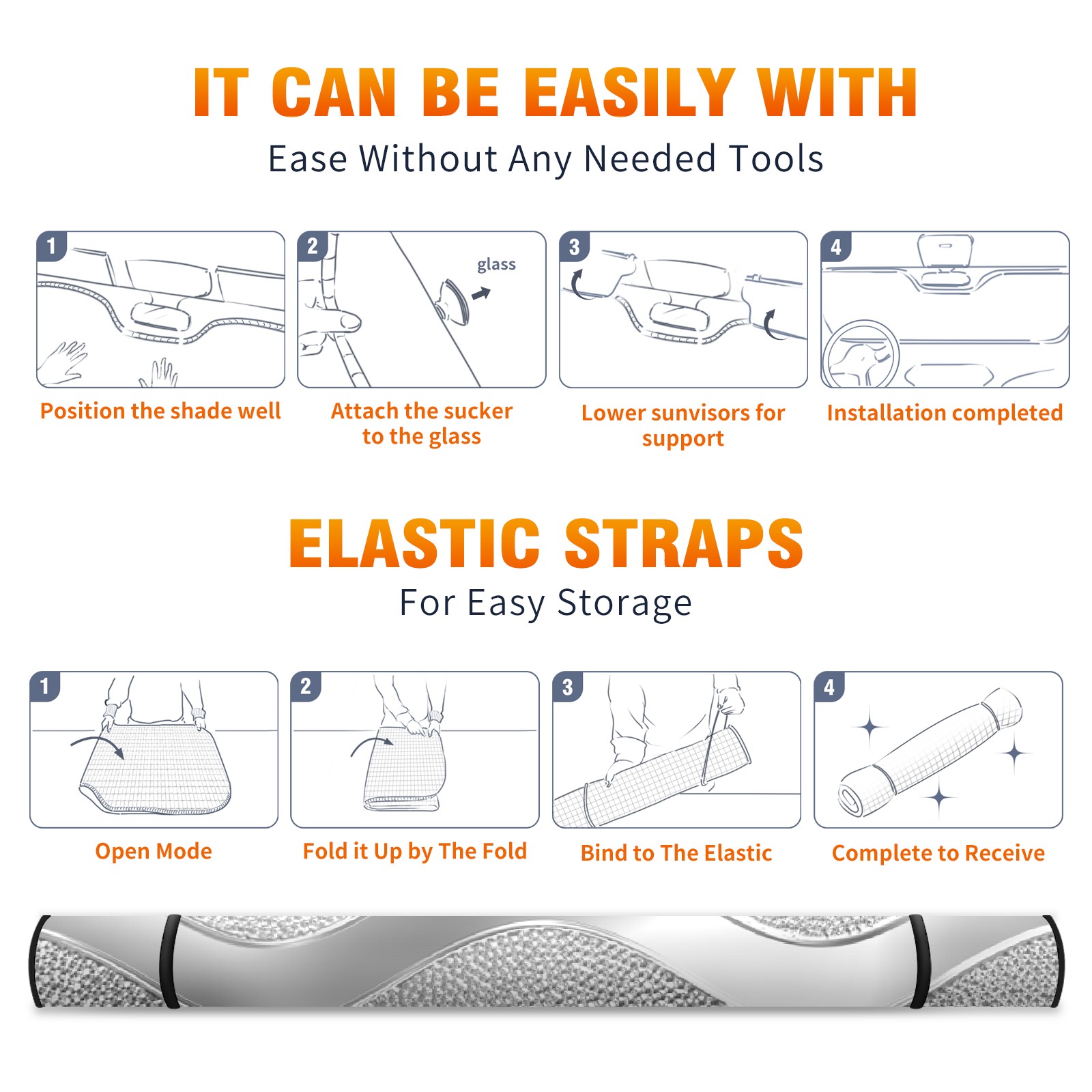 • Diameter /Size 63"L x 33.5"W Made from excellent materials which makes it sturdy and protects the car from the sun. Easy to use and pack. Makes the interior of the car cooler.You can easily stash the sunshade in the storage bag or store long term.It open and closes easy. Also the leather storage bag is durable and easy to put the umbrella back into.This windshield sunshade provides complete coverage and keeps your car interior cool under direct sun. It is easy to open and position under the windshield and around the rear-view mirror. Makes Your Car Easy To Identify, Perfect For Finding Your Car In Crowded Parking Lots And Garages.Great Choice: It Is A Great Gift For Dad, Boyfriend, Brother, Brother And Uncle, Friends, Classmates, Family And So On. Notice: Due To Difference Computer Monitors, The Color Maybe Slightly Different From Picture. As Different Measurement Methods, Measurement Data Will Float Within 2%.I Hope You Understand. If You Have Any Question About The Item Please Do Not Hesitate To Contact Us Immediately And We Will Give You A Satisfactory Reply Within 24 Hours.