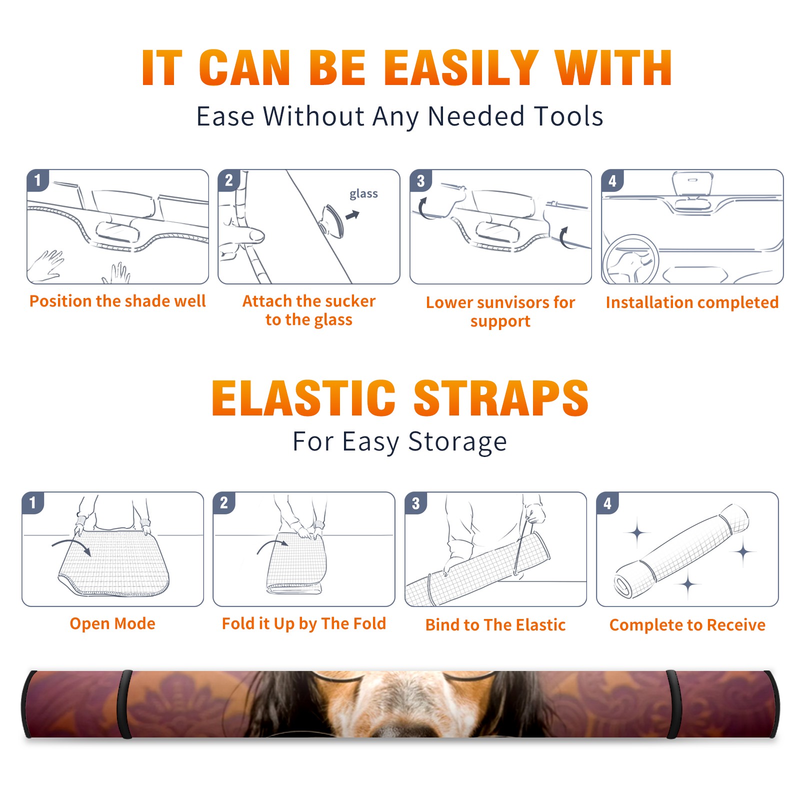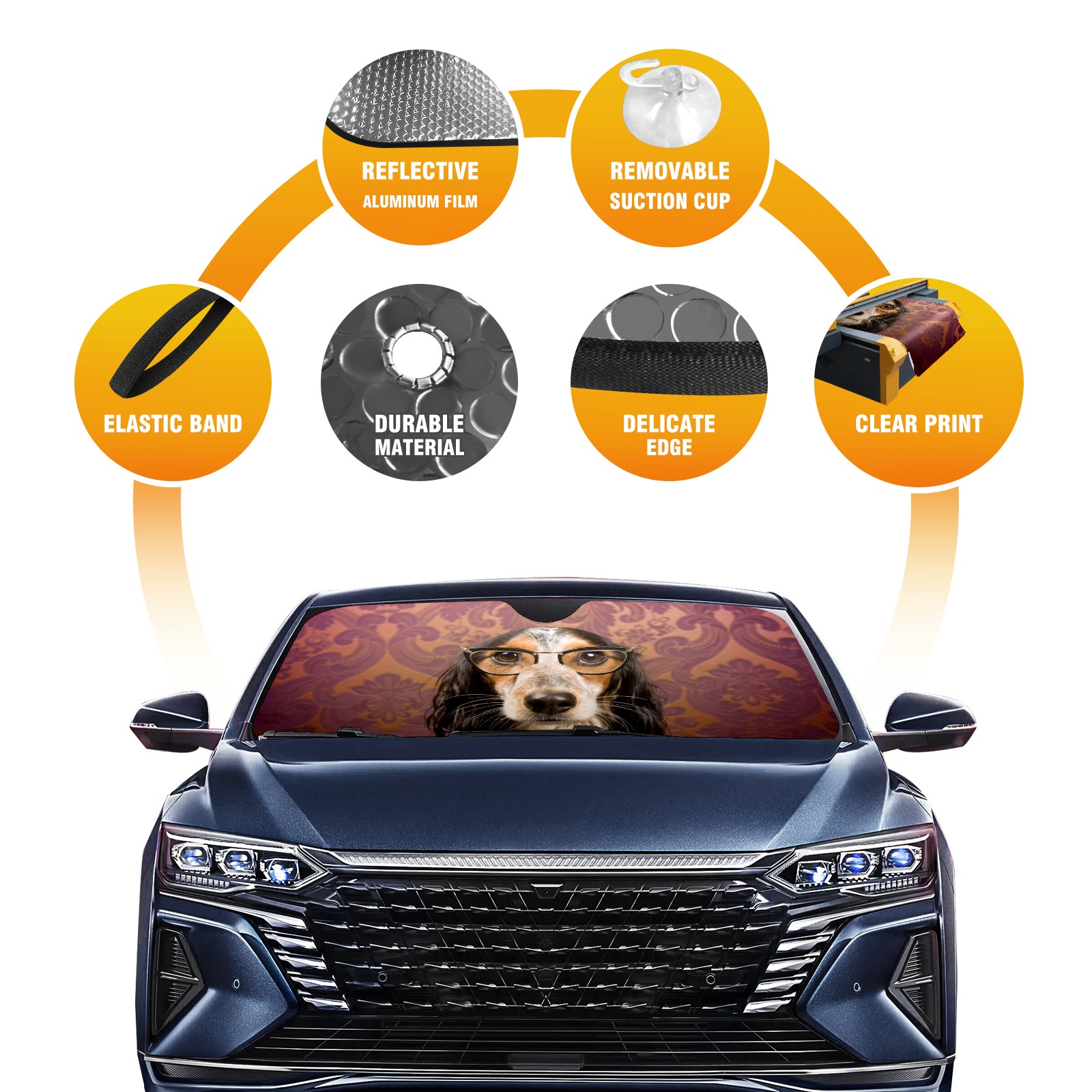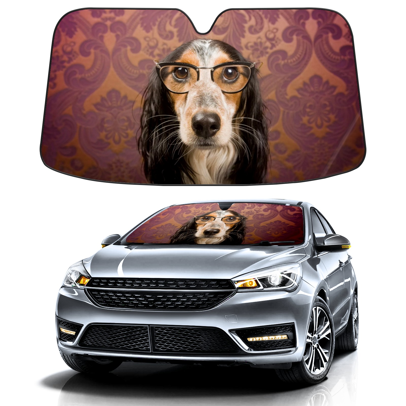 Car Windshield Sun Shade for Front Window Dog Glasses Foldable Vehicle Windshield Car Sun Visor Covers Automotive Window Protector Car Camping Privacy Sun Blocker
