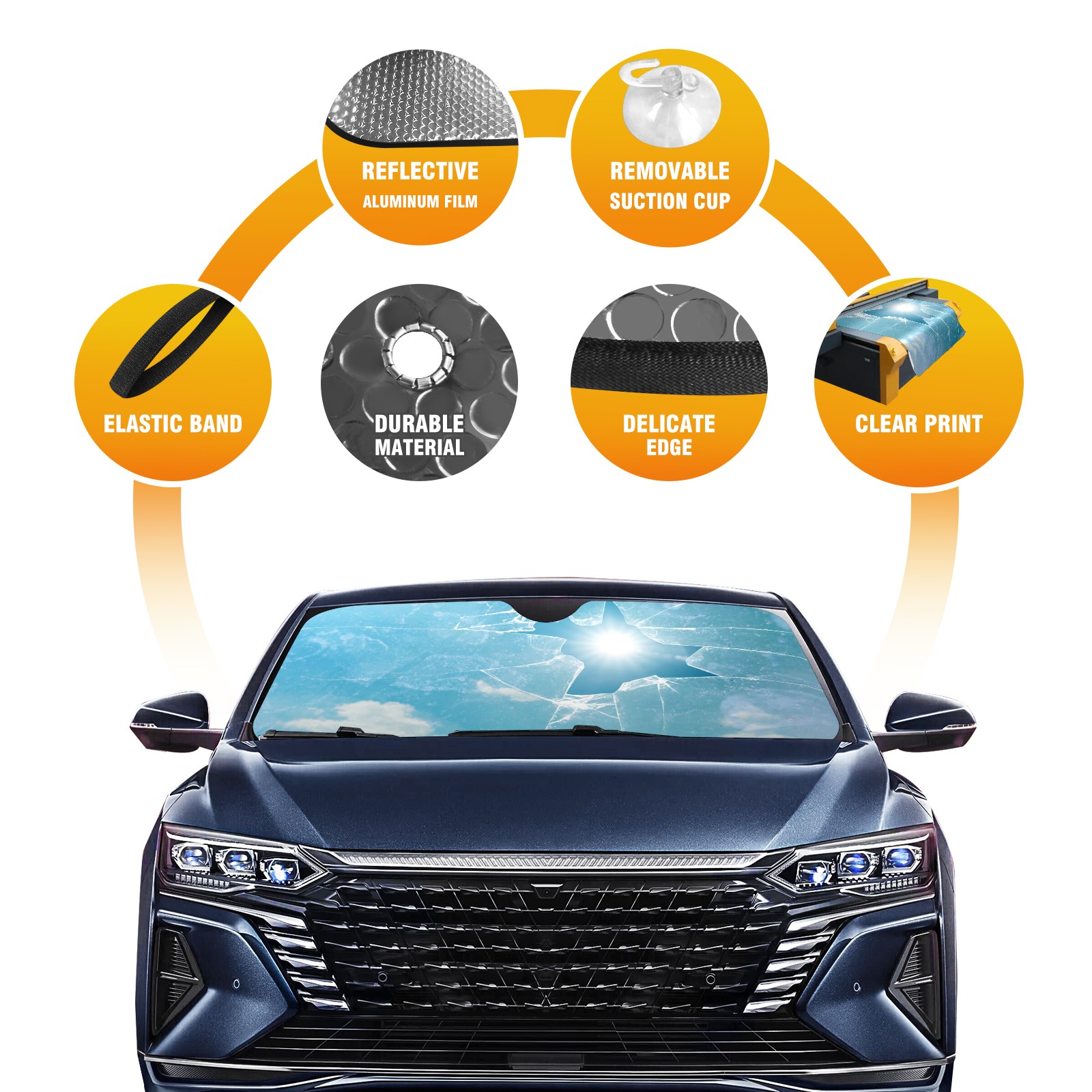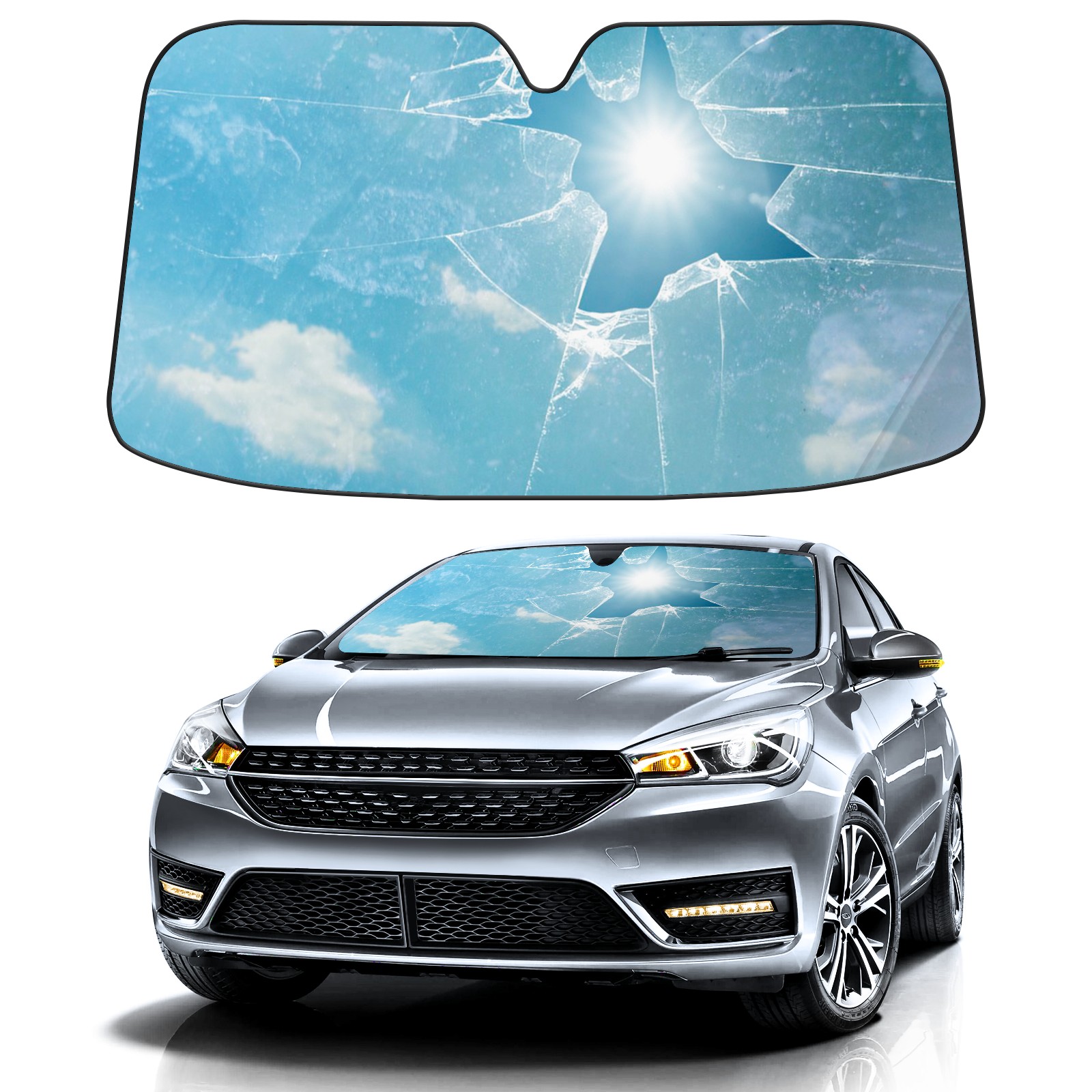 Car Windshield Sun Shade for Front Window Broken Glass Foldable Vehicle Windshield Car Sun Visor Covers Automotive Window Protector Car Camping Privacy Sun Blocker