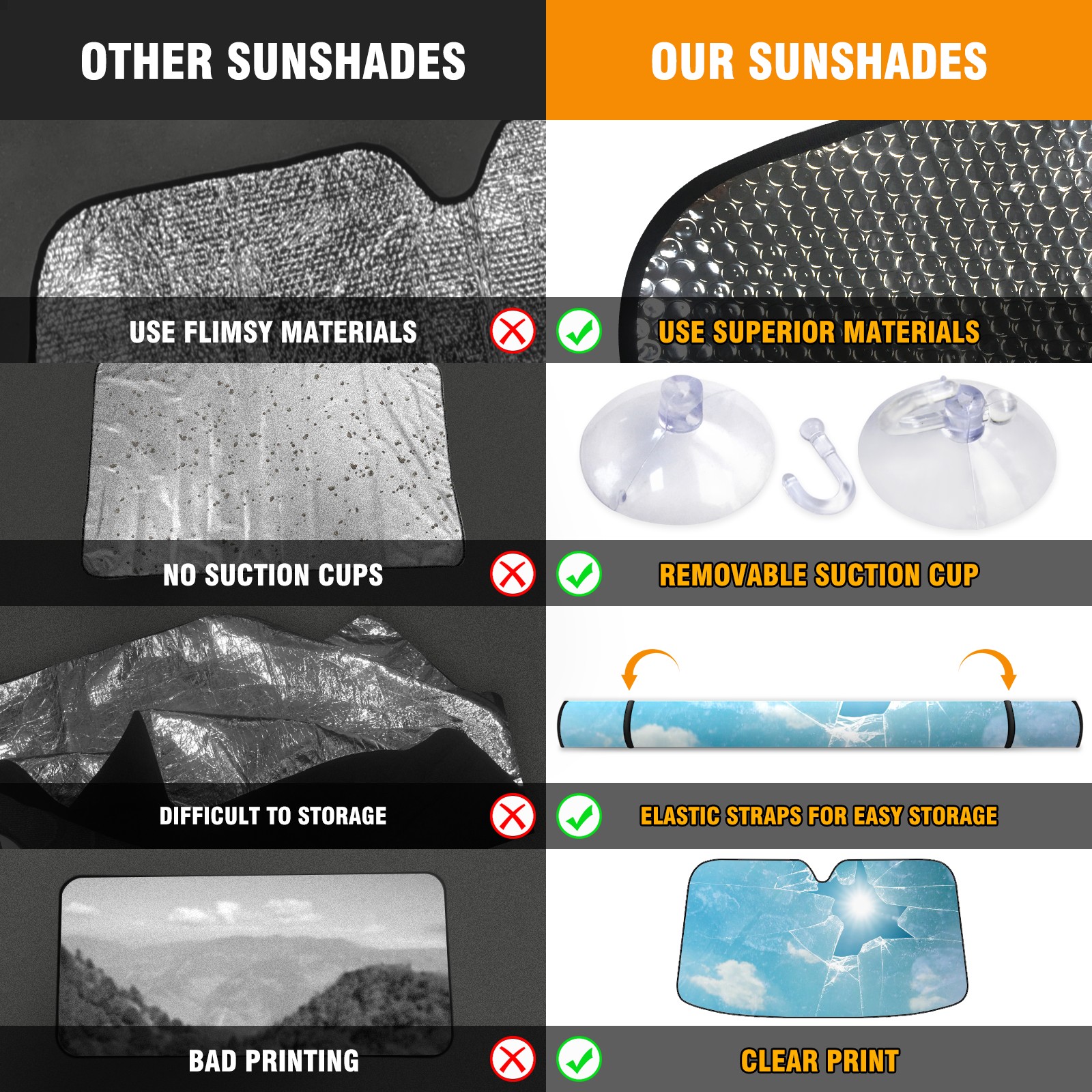 • Diameter /Size 63"L x 33.5"W Made from excellent materials which makes it sturdy and protects the car from the sun. Easy to use and pack. Makes the interior of the car cooler.You can easily stash the sunshade in the storage bag or store long term.It open and closes easy. Also the leather storage bag is durable and easy to put the umbrella back into.This windshield sunshade provides complete coverage and keeps your car interior cool under direct sun. It is easy to open and position under the windshield and around the rear-view mirror. Makes Your Car Easy To Identify, Perfect For Finding Your Car In Crowded Parking Lots And Garages.Great Choice: It Is A Great Gift For Dad, Boyfriend, Brother, Brother And Uncle, Friends, Classmates, Family And So On. Notice: Due To Difference Computer Monitors, The Color Maybe Slightly Different From Picture. As Different Measurement Methods, Measurement Data Will Float Within 2%.I Hope You Understand. If You Have Any Question About The Item Please Do Not Hesitate To Contact Us Immediately And We Will Give You A Satisfactory Reply Within 24 Hours.