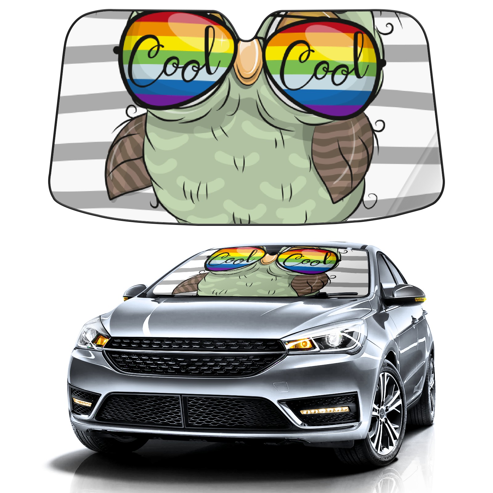 Car Windshield Sun Shade for Front Window Cartoon Owl Sunglasses Foldable Vehicle Windshield Car Sun Visor Covers Automotive Window Protector Car Camping Privacy Sun Blocker