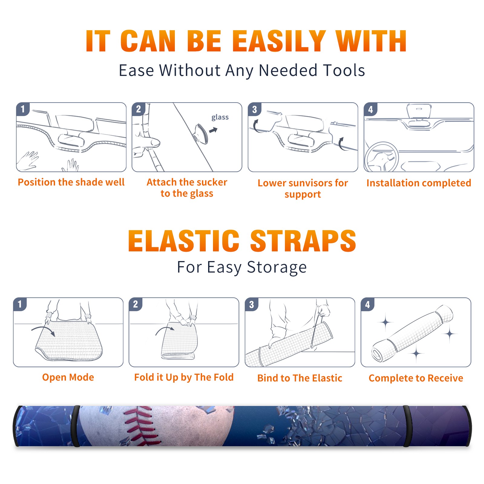 Car Windshield Sun Shade for Front Window Baseball-smashing-glass-getty-images Foldable Vehicle Windshield Car Sun Visor Covers Automotive Window Protector Car Camping Privacy Sun Blocker