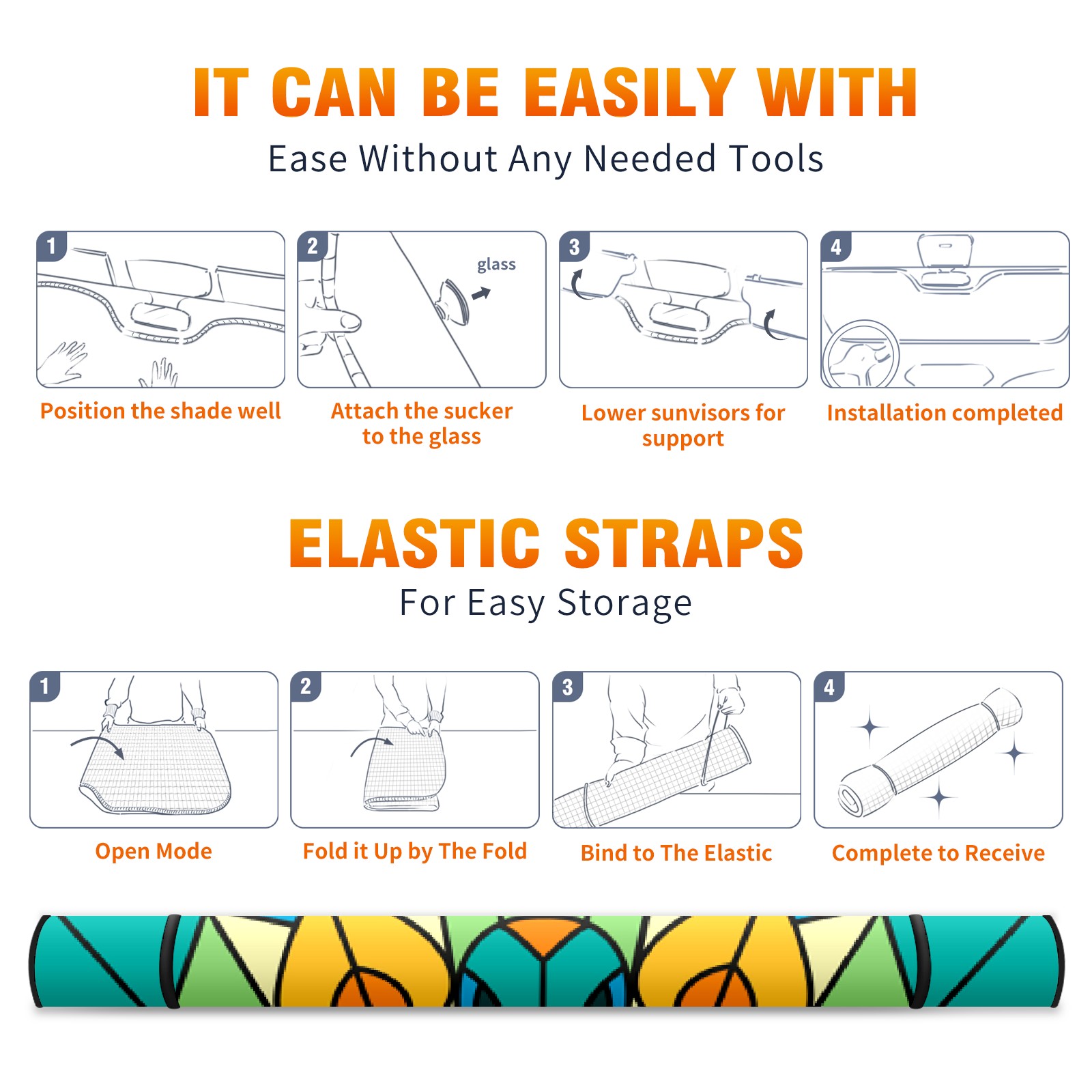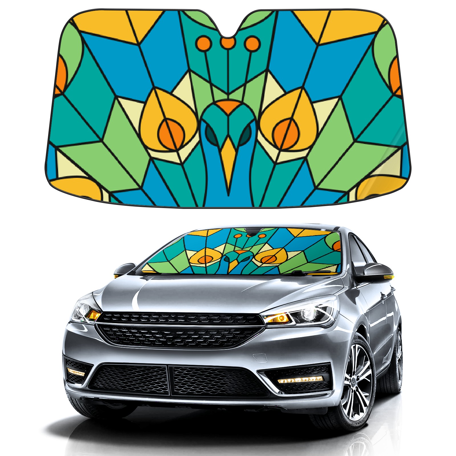 Car Windshield Sun Shade for Front Window Stained Glass Style Foldable Vehicle Windshield Car Sun Visor Covers Automotive Window Protector Car Camping Privacy Sun Blocker