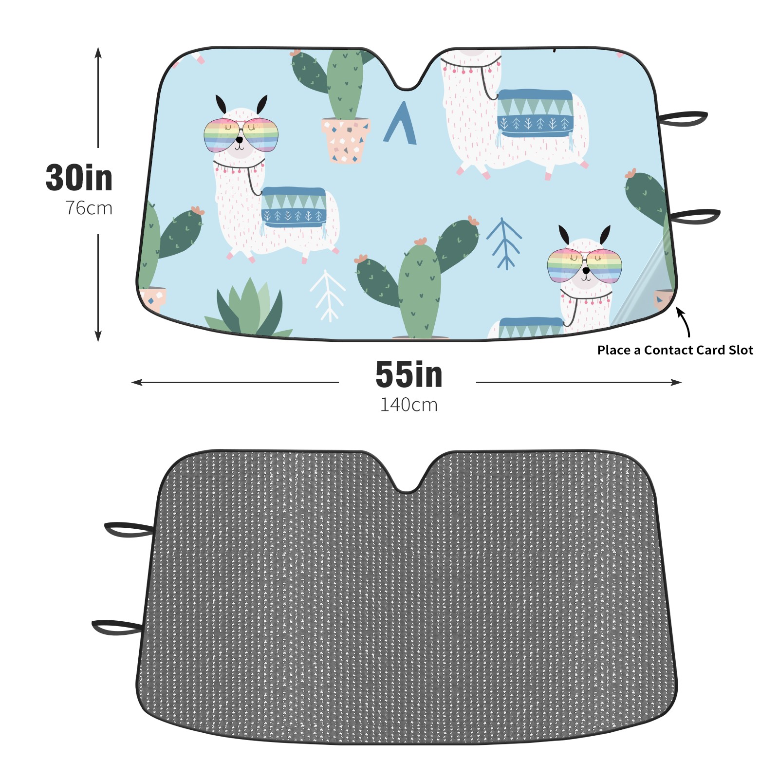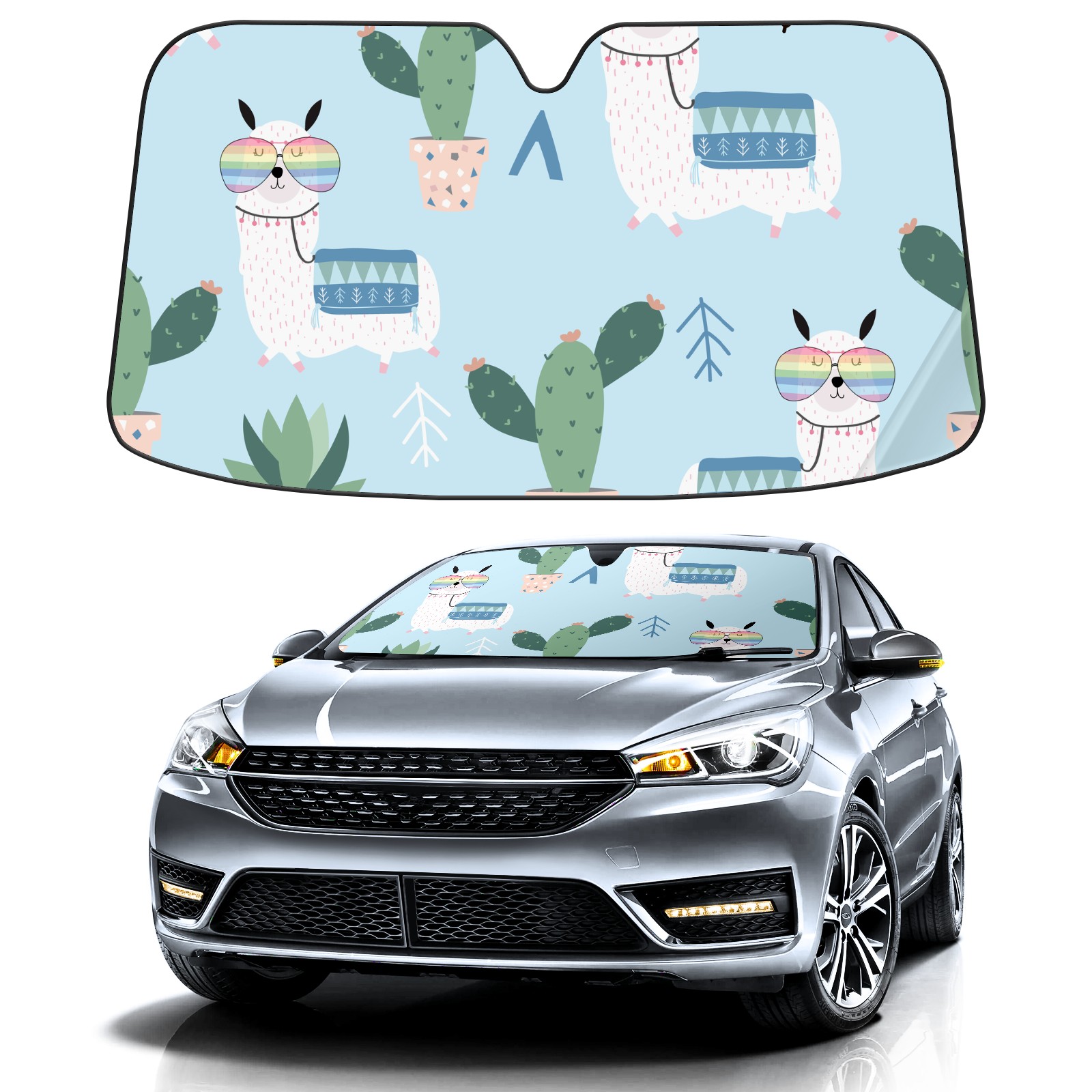 Car Windshield Sun Shade for Front Window Alpaca Colorful Glasses Foldable Vehicle Windshield Car Sun Visor Covers Automotive Window Protector Car Camping Privacy Sun Blocker