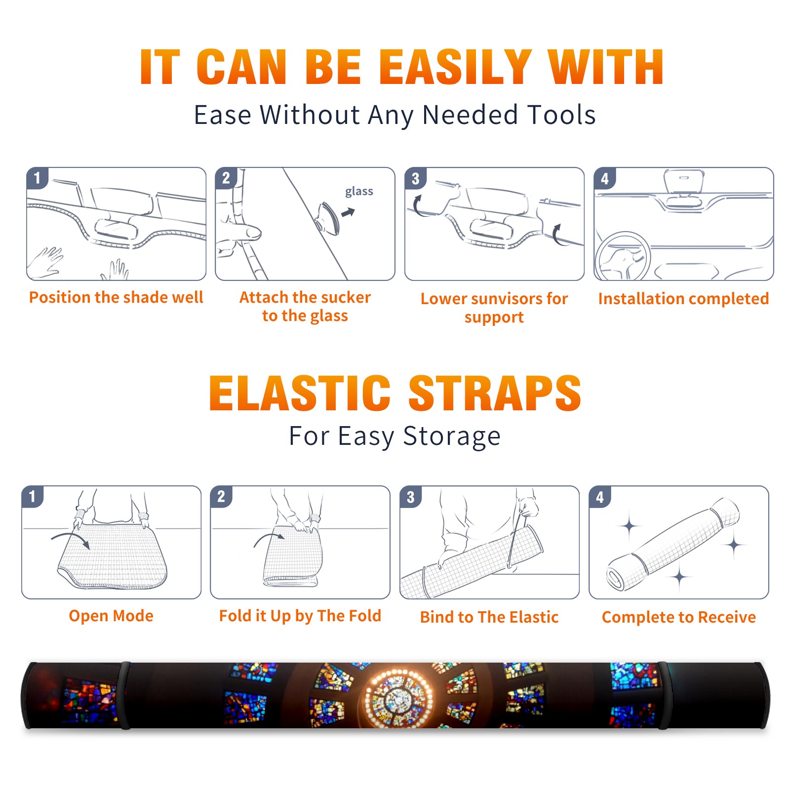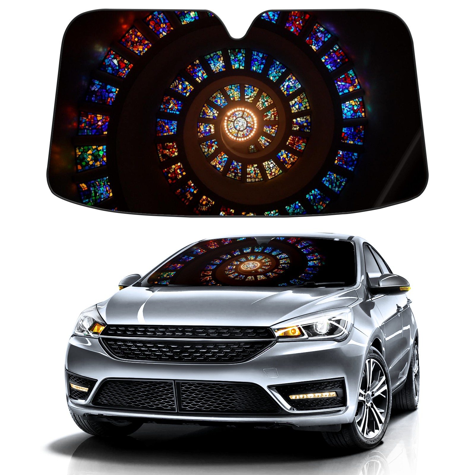 Car Windshield Sun Shade for Front Window Boho Stained Glass Foldable Vehicle Windshield Car Sun Visor Covers Automotive Window Protector Car Camping Privacy Sun Blocker