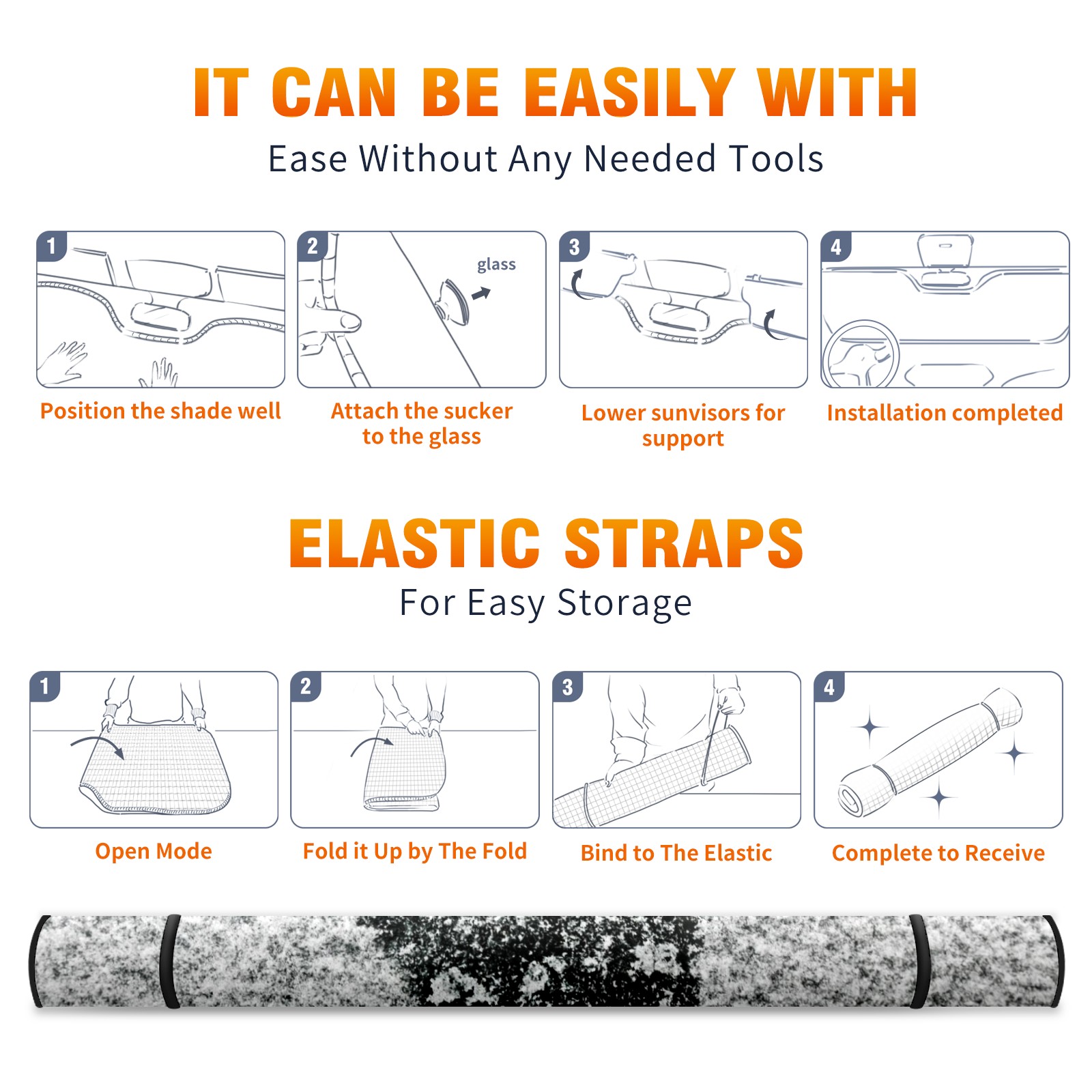 • Diameter /Size 63"L x 33.5"W Made from excellent materials which makes it sturdy and protects the car from the sun. Easy to use and pack. Makes the interior of the car cooler.You can easily stash the sunshade in the storage bag or store long term.It open and closes easy. Also the leather storage bag is durable and easy to put the umbrella back into.This windshield sunshade provides complete coverage and keeps your car interior cool under direct sun. It is easy to open and position under the windshield and around the rear-view mirror. Makes Your Car Easy To Identify, Perfect For Finding Your Car In Crowded Parking Lots And Garages.Great Choice: It Is A Great Gift For Dad, Boyfriend, Brother, Brother And Uncle, Friends, Classmates, Family And So On. Notice: Due To Difference Computer Monitors, The Color Maybe Slightly Different From Picture. As Different Measurement Methods, Measurement Data Will Float Within 2%.I Hope You Understand. If You Have Any Question About The Item Please Do Not Hesitate To Contact Us Immediately And We Will Give You A Satisfactory Reply Within 24 Hours.
