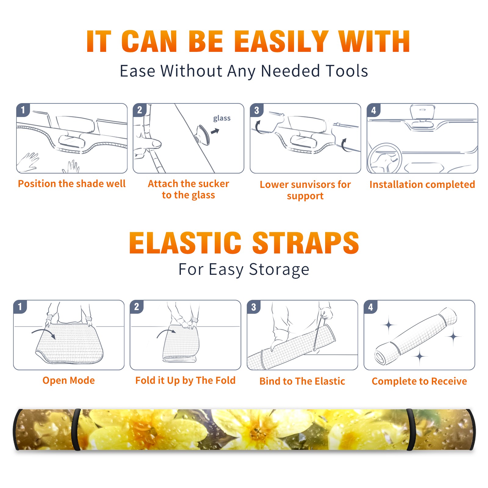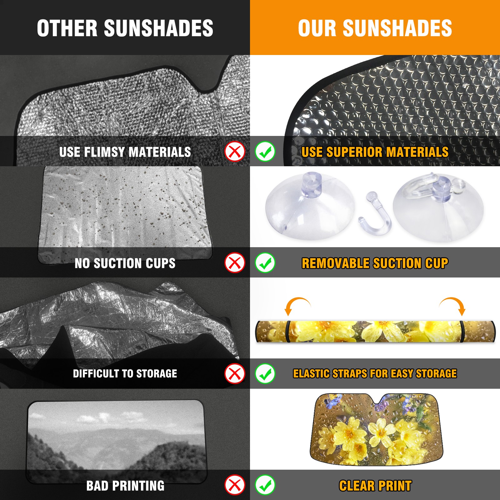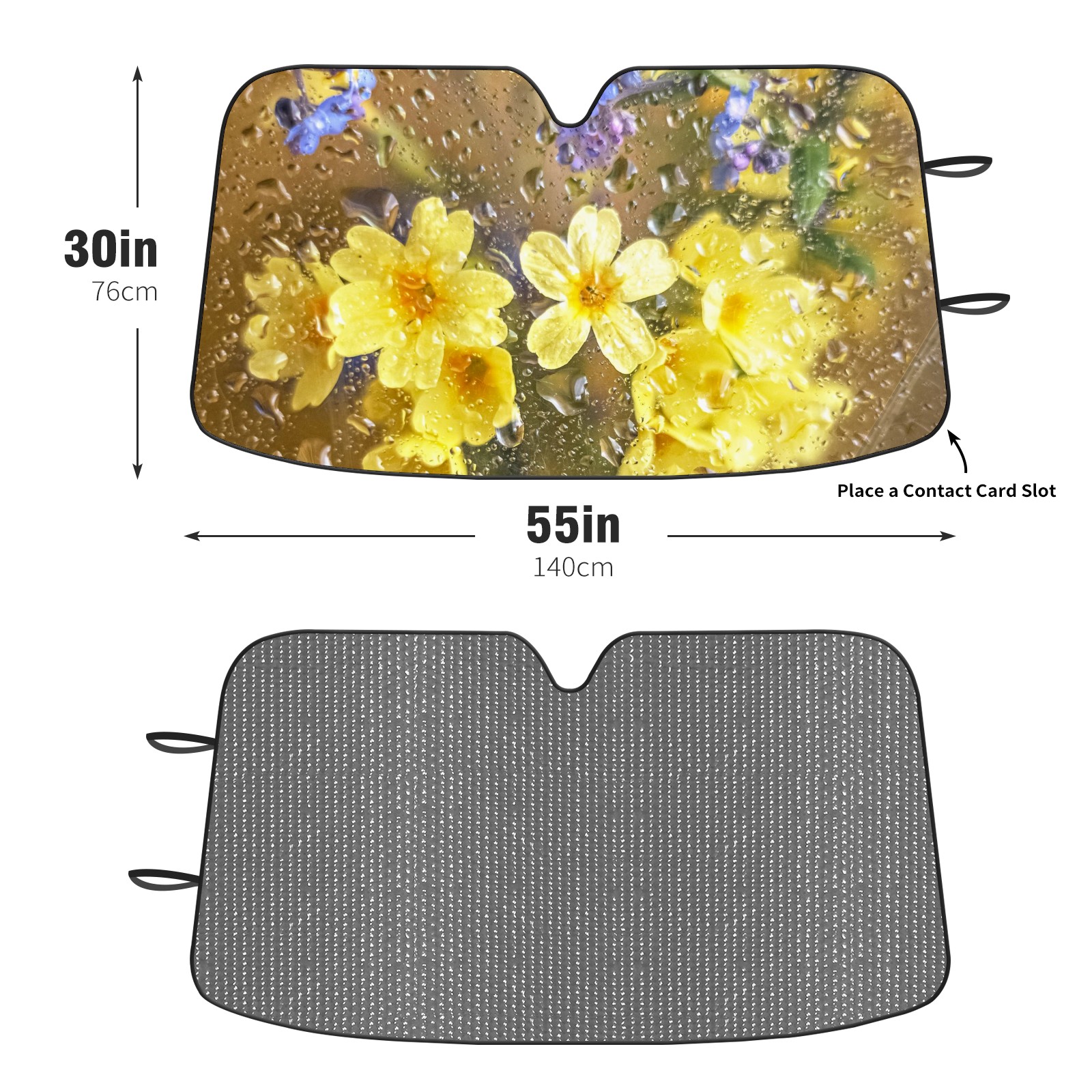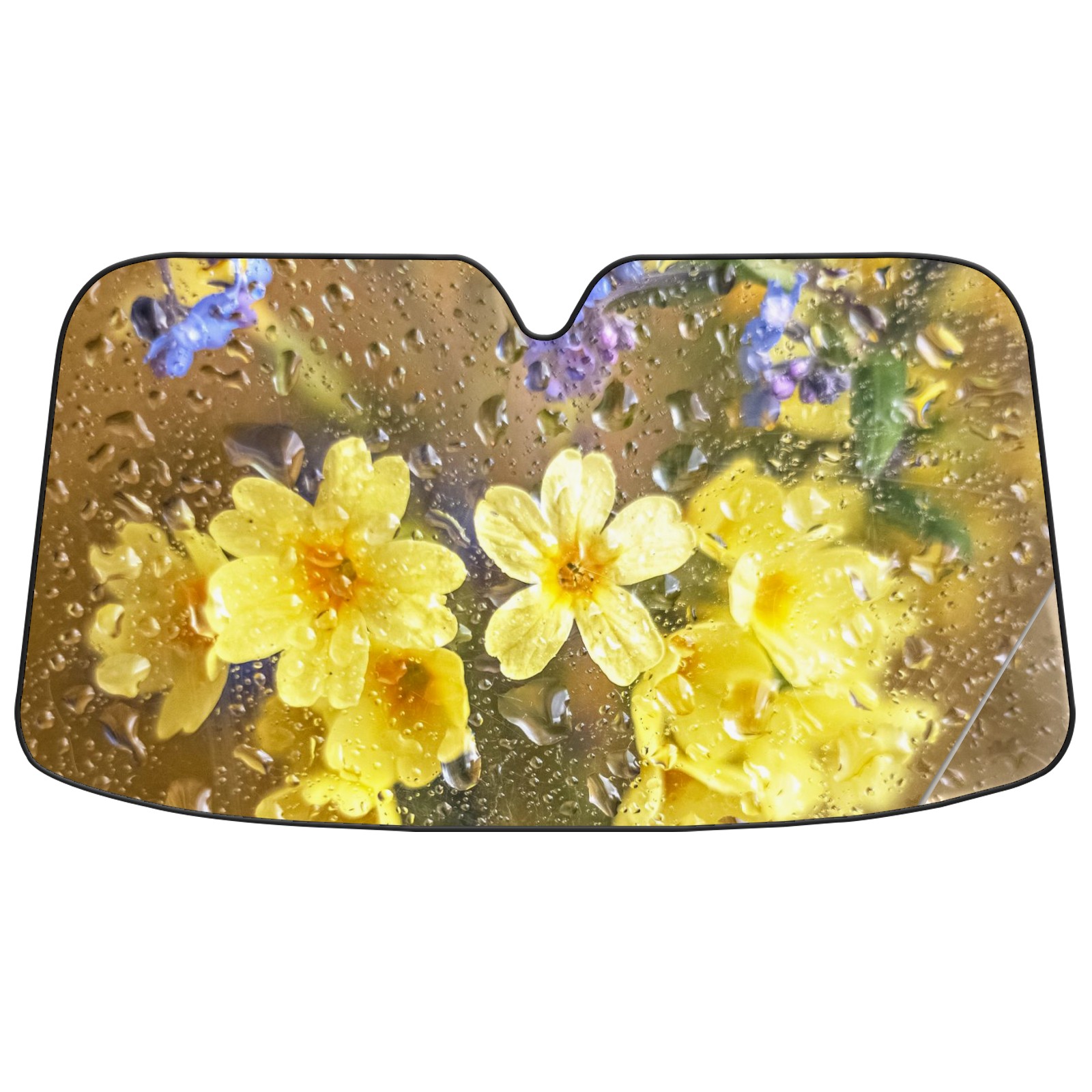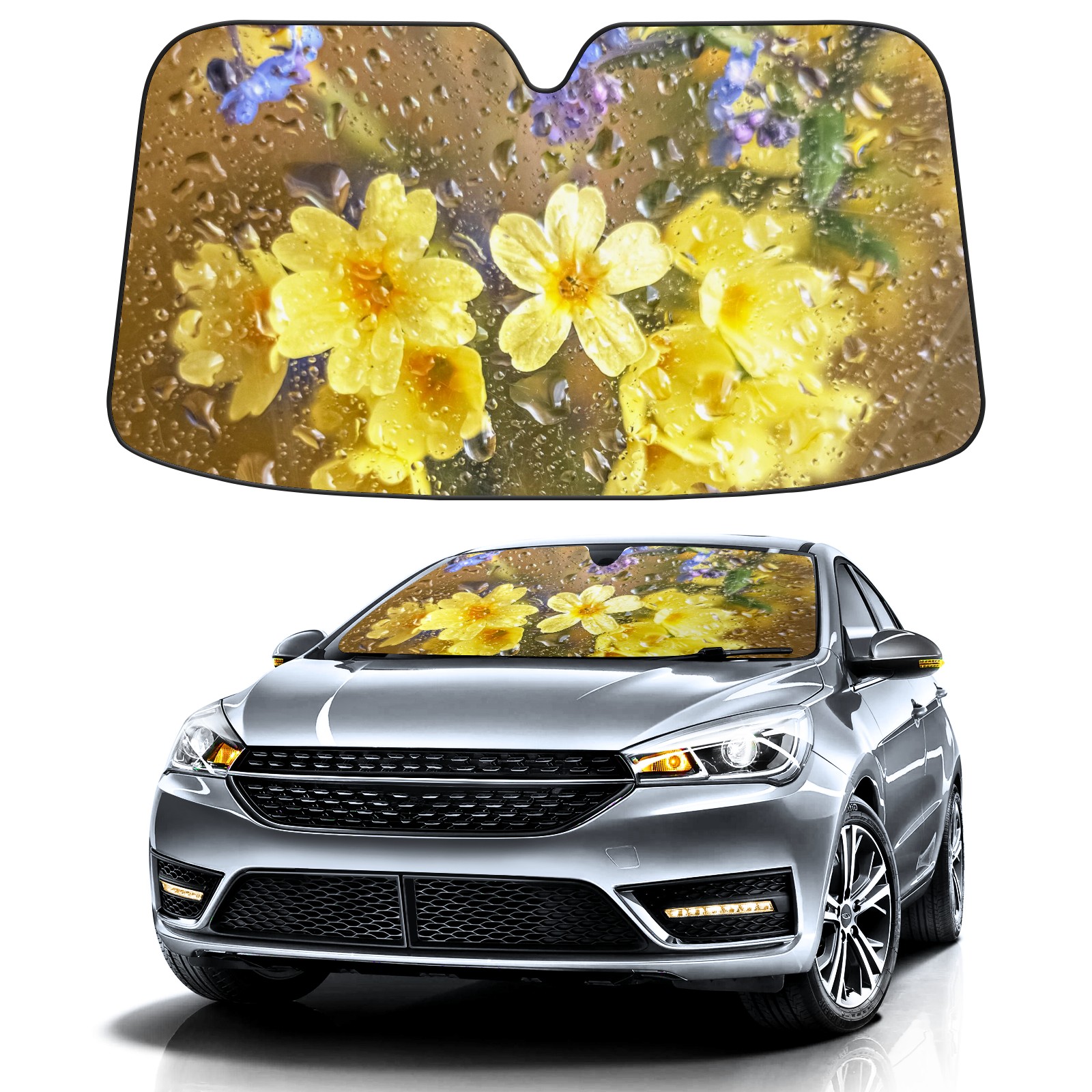 Car Windshield Sun Shade for Front Window Yellow Flower Rain Drops Glass Foldable Vehicle Windshield Car Sun Visor Covers Automotive Window Protector Car Camping Privacy Sun Blocker