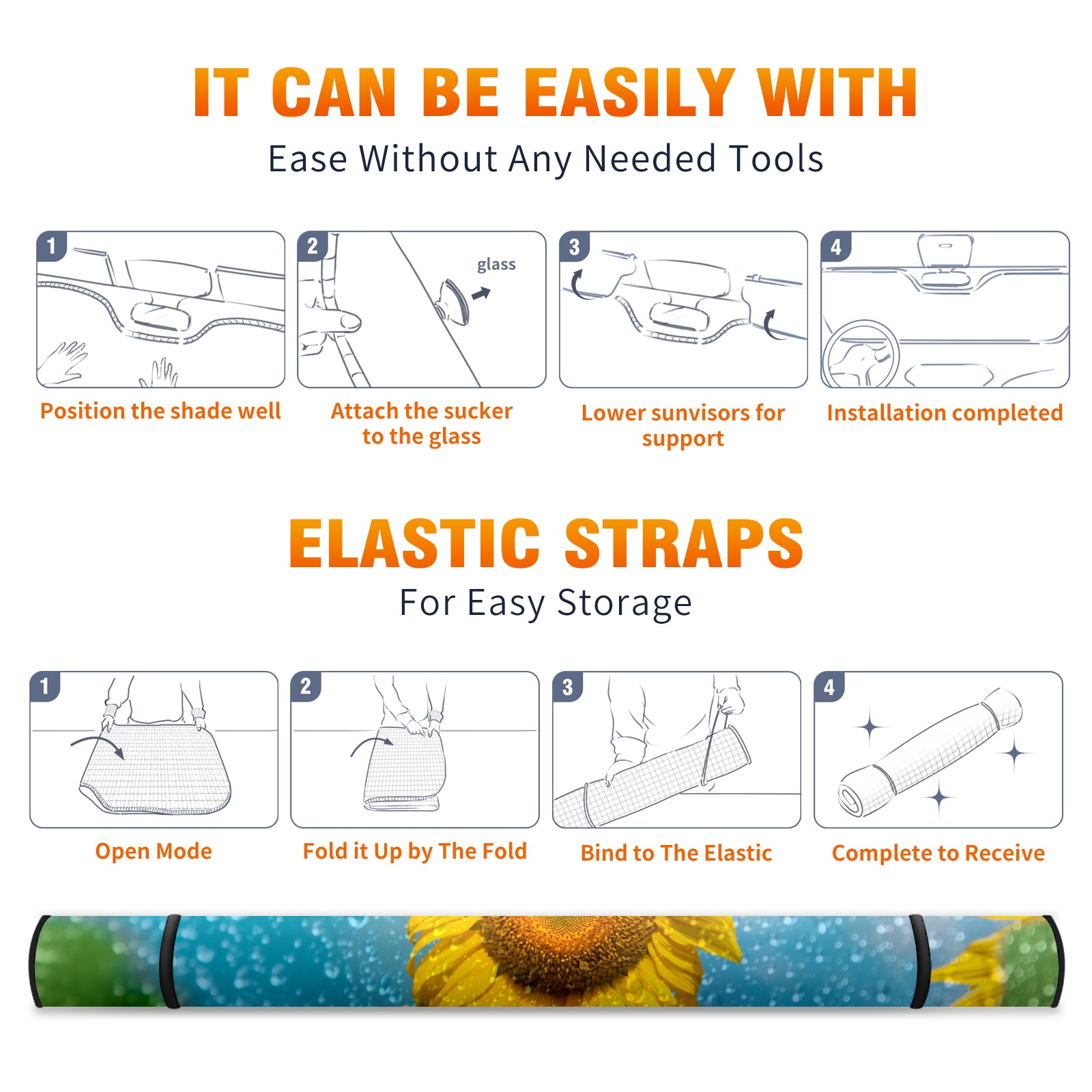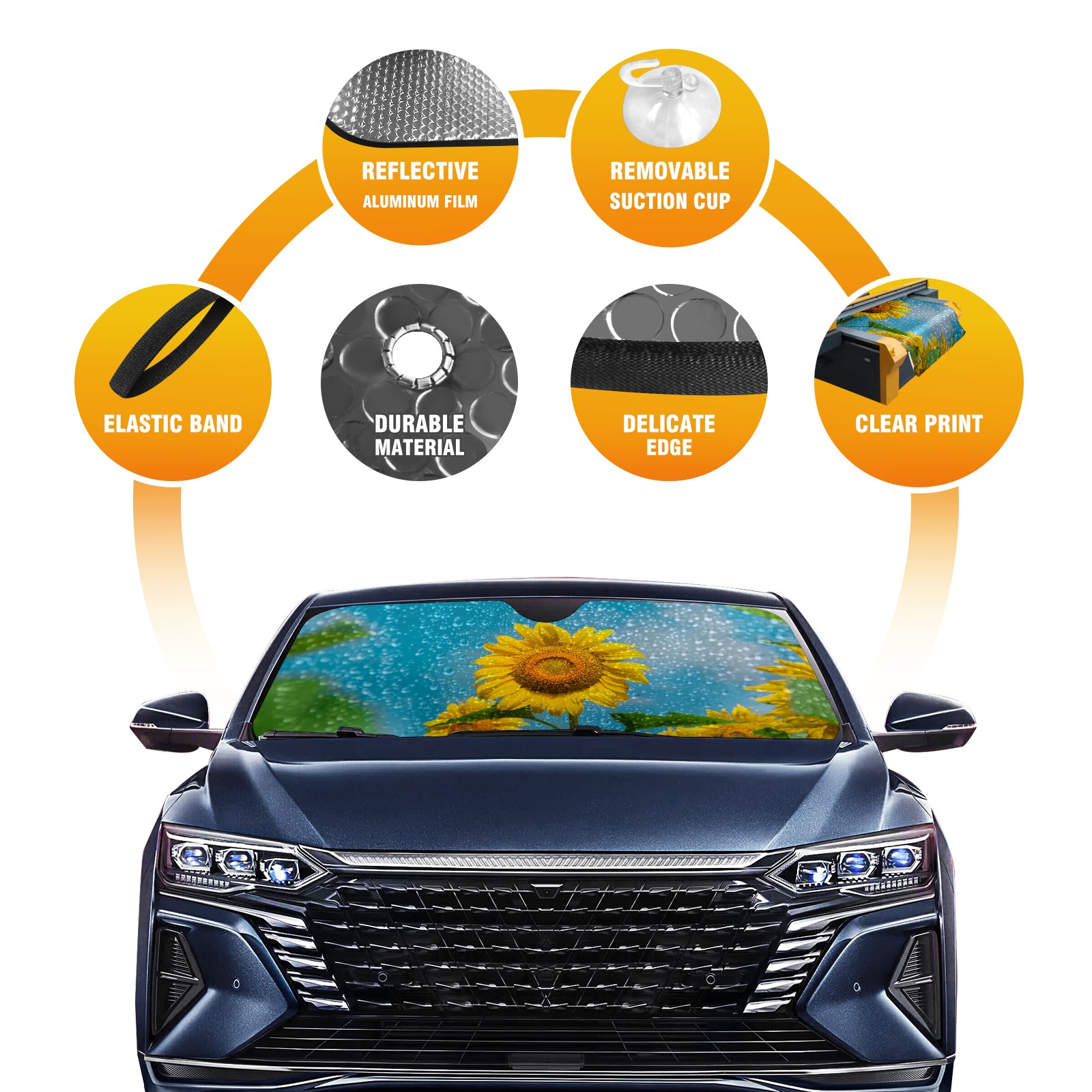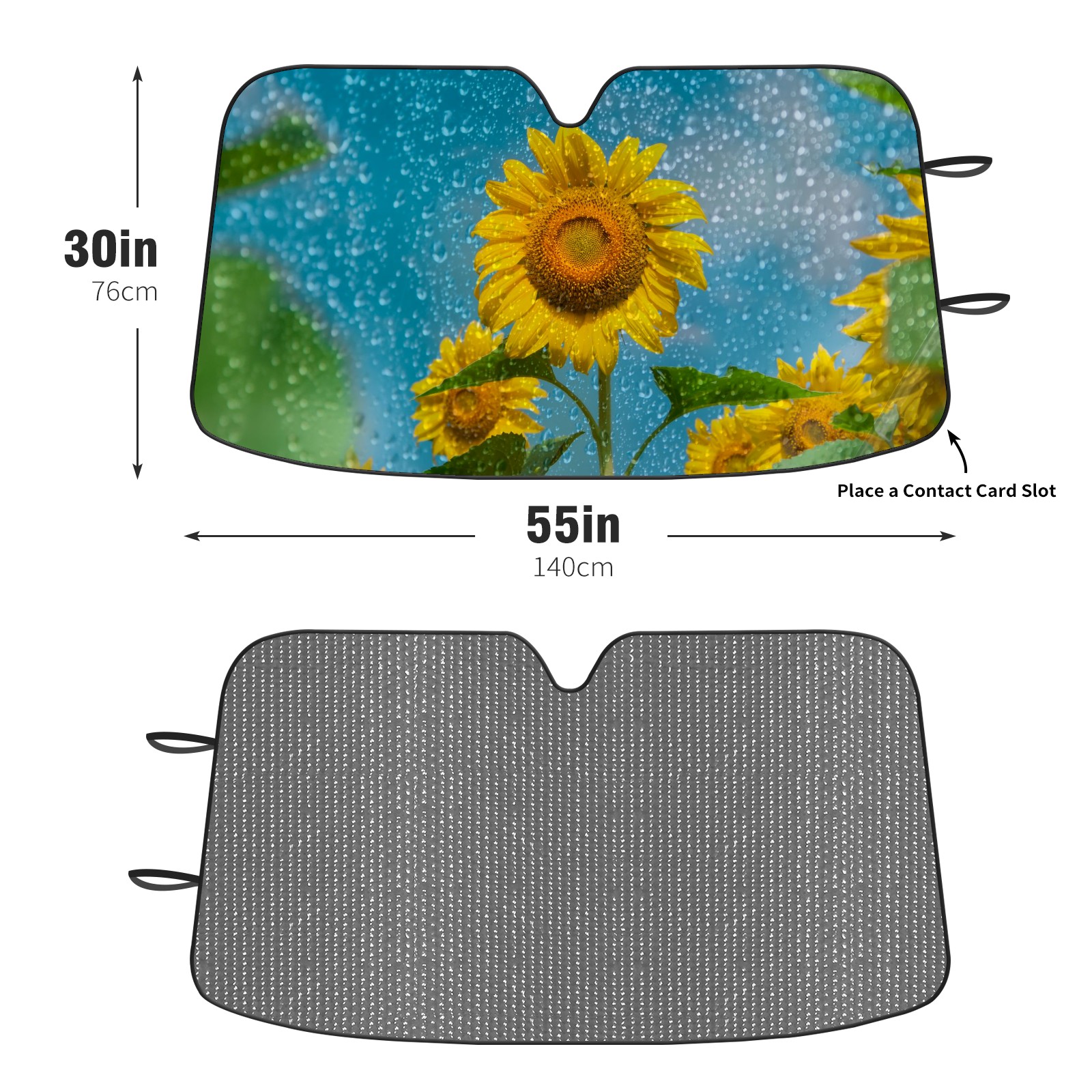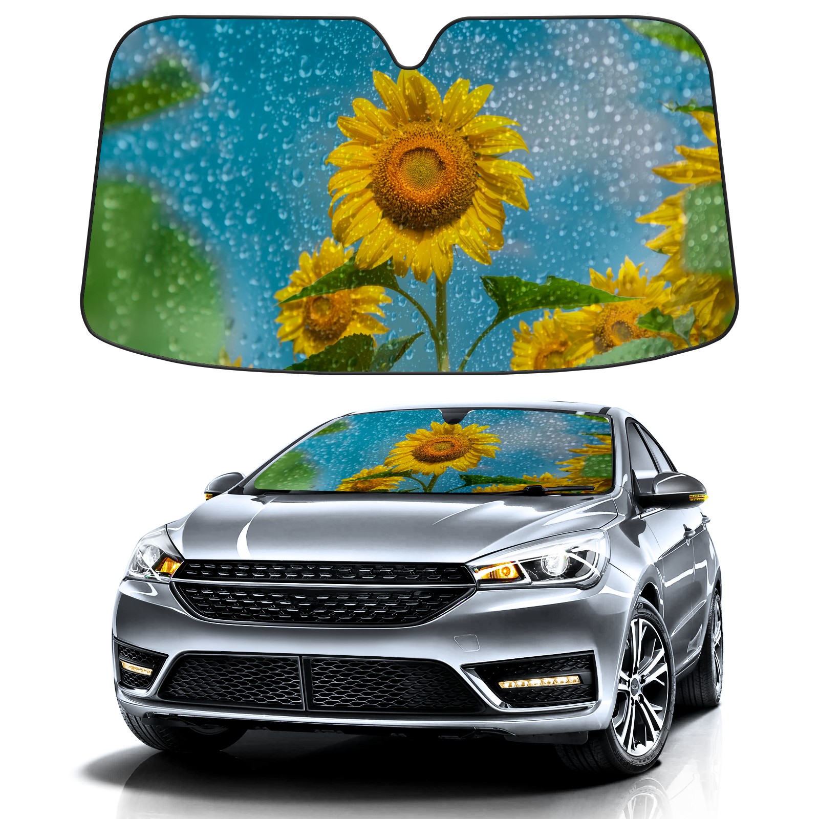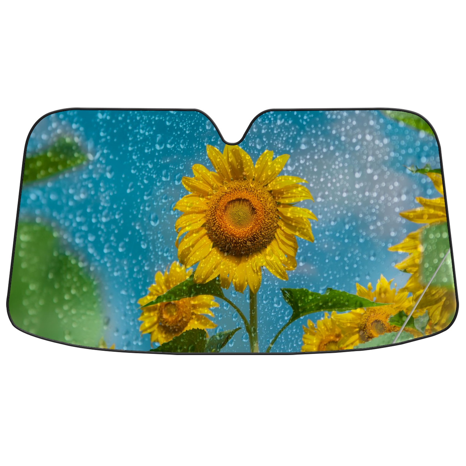 Car Windshield Sun Shade for Front Window Sunflower Rain Drops Glass Foldable Vehicle Windshield Car Sun Visor Covers Automotive Window Protector Car Camping Privacy Sun Blocker