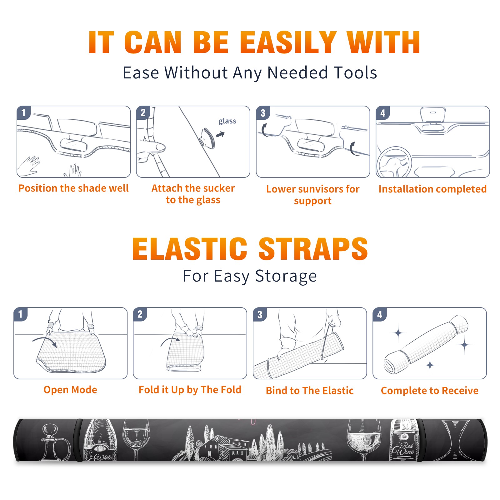 • Diameter /Size 63"L x 33.5"W Made from excellent materials which makes it sturdy and protects the car from the sun. Easy to use and pack. Makes the interior of the car cooler.You can easily stash the sunshade in the storage bag or store long term.It open and closes easy. Also the leather storage bag is durable and easy to put the umbrella back into.This windshield sunshade provides complete coverage and keeps your car interior cool under direct sun. It is easy to open and position under the windshield and around the rear-view mirror. Makes Your Car Easy To Identify, Perfect For Finding Your Car In Crowded Parking Lots And Garages.Great Choice: It Is A Great Gift For Dad, Boyfriend, Brother, Brother And Uncle, Friends, Classmates, Family And So On. Notice: Due To Difference Computer Monitors, The Color Maybe Slightly Different From Picture. As Different Measurement Methods, Measurement Data Will Float Within 2%.I Hope You Understand. If You Have Any Question About The Item Please Do Not Hesitate To Contact Us Immediately And We Will Give You A Satisfactory Reply Within 24 Hours.