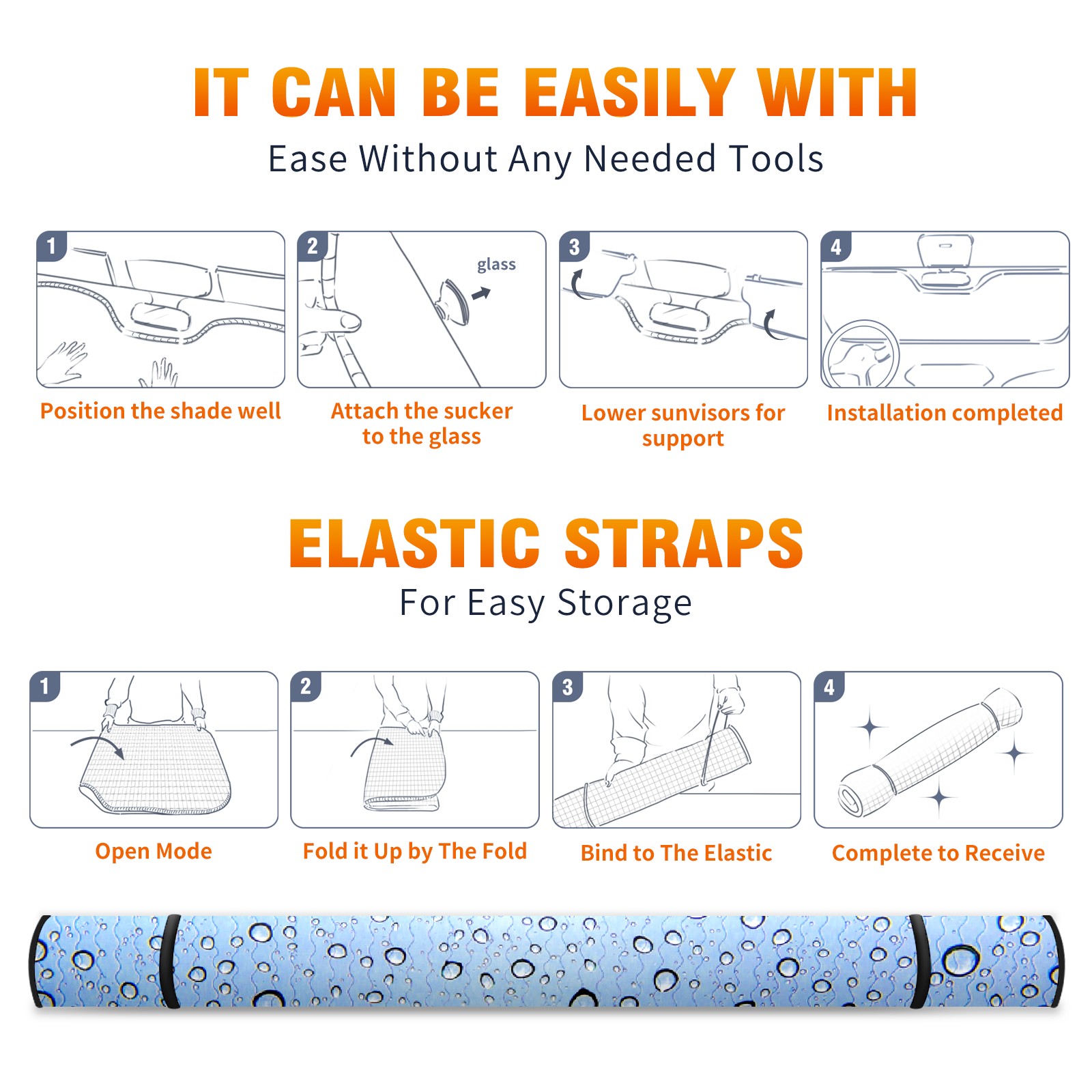 Car Windshield Sun Shade for Front Window Rain Drops Window Glass Foldable Vehicle Windshield Car Sun Visor Covers Automotive Window Protector Car Camping Privacy Sun Blocker