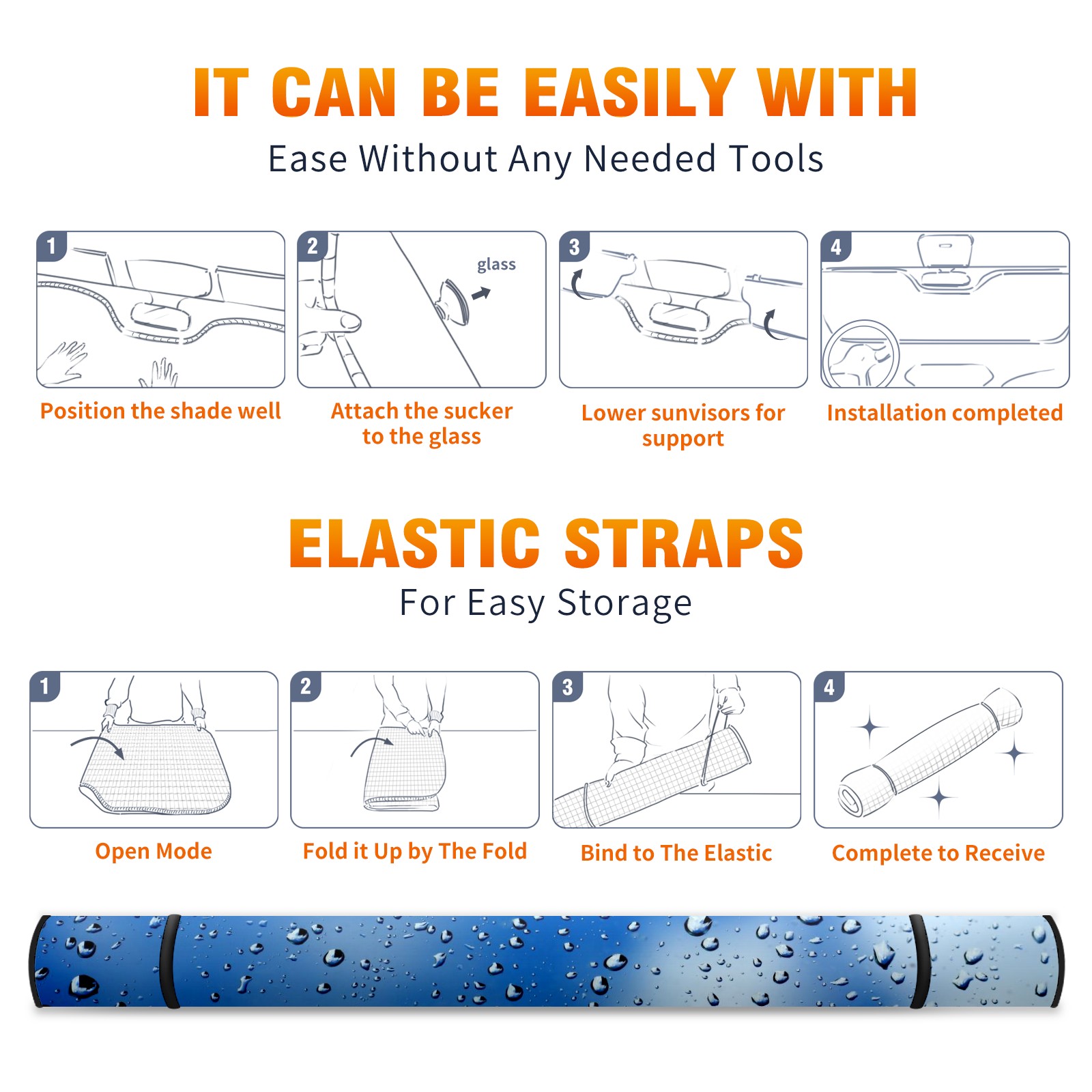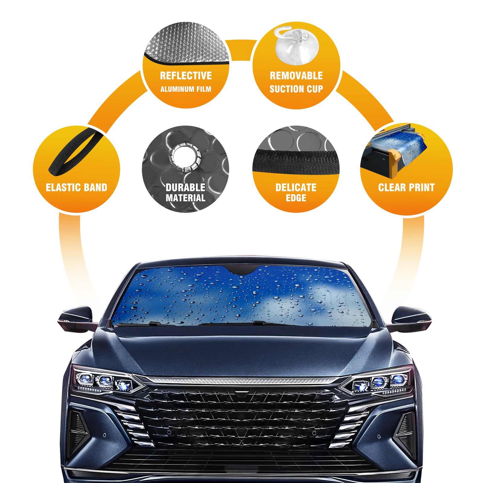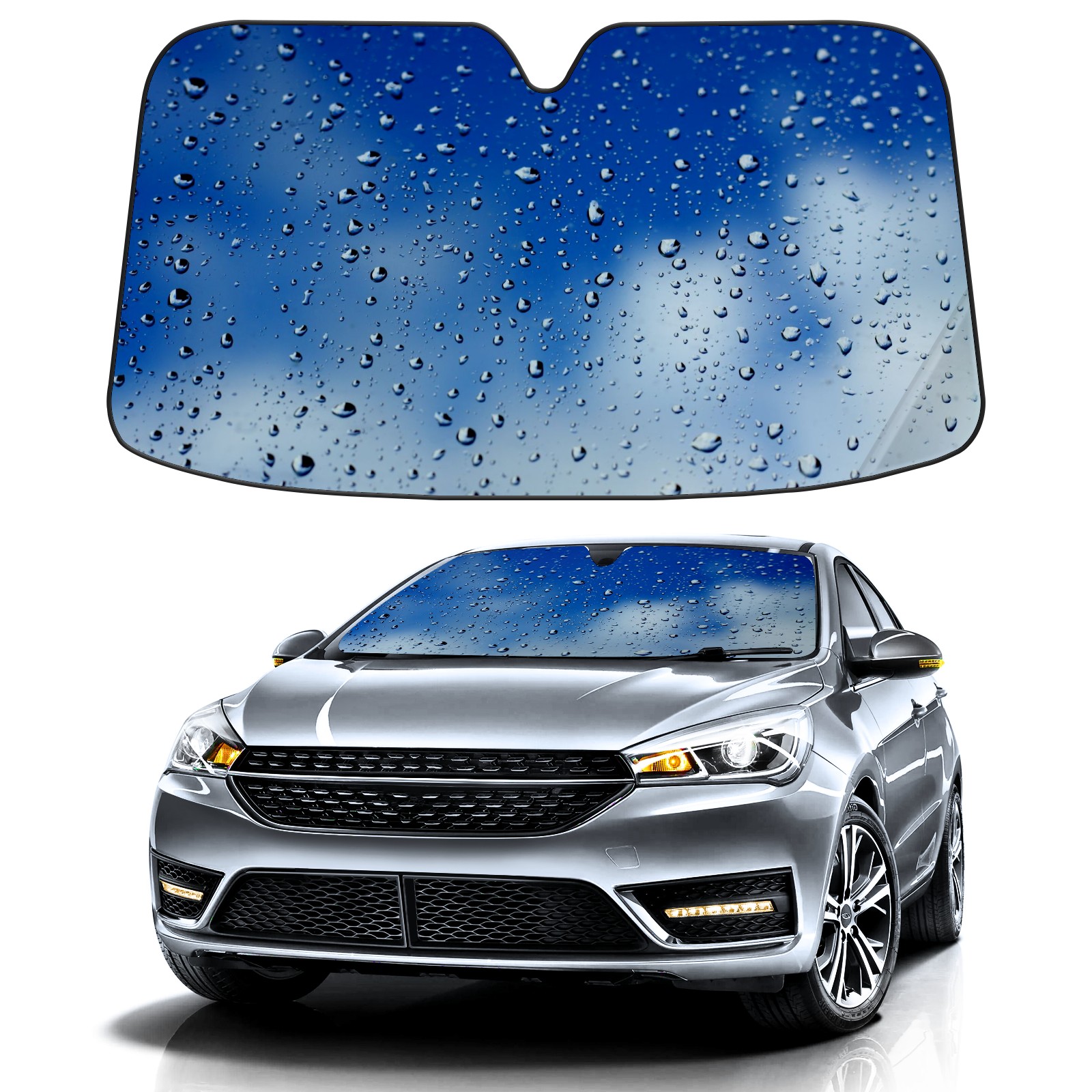 Car Windshield Sun Shade for Front Window Rain Drops Glass Blue Sky Foldable Vehicle Windshield Car Sun Visor Covers Automotive Window Protector Car Camping Privacy Sun Blocker